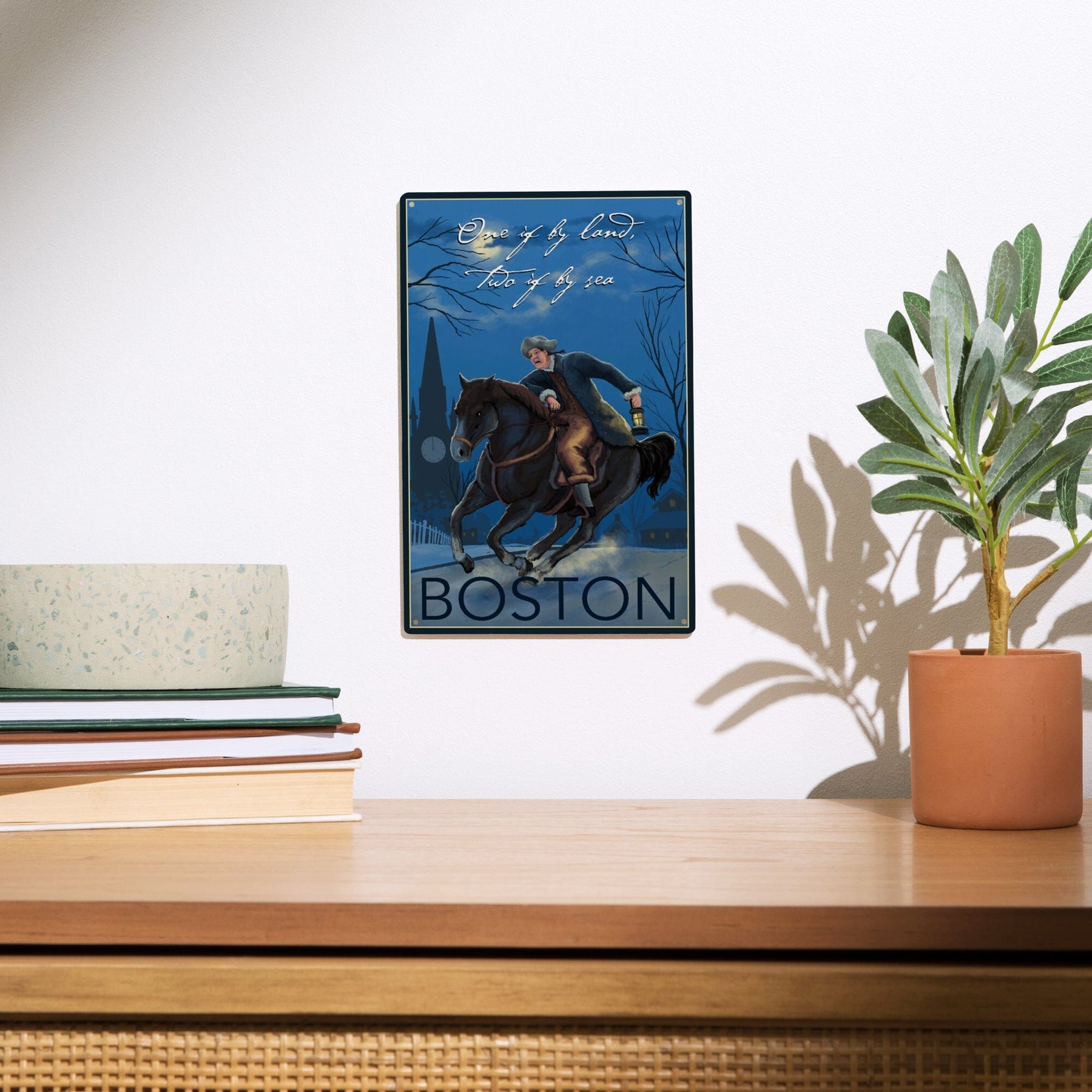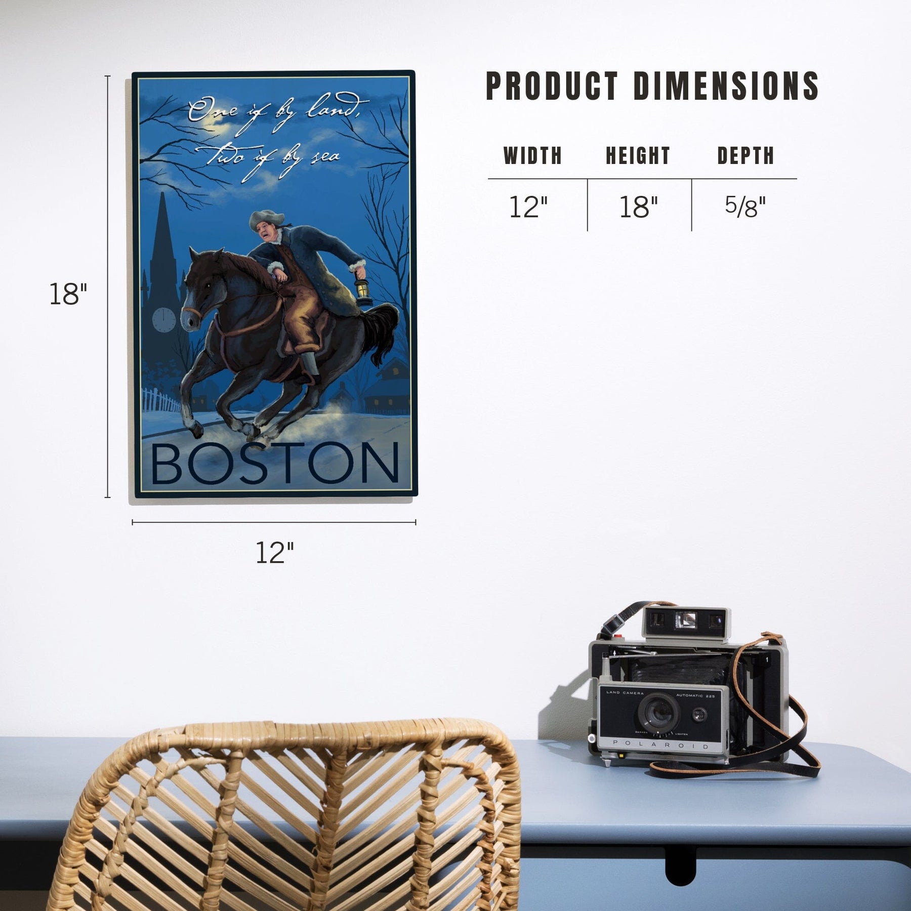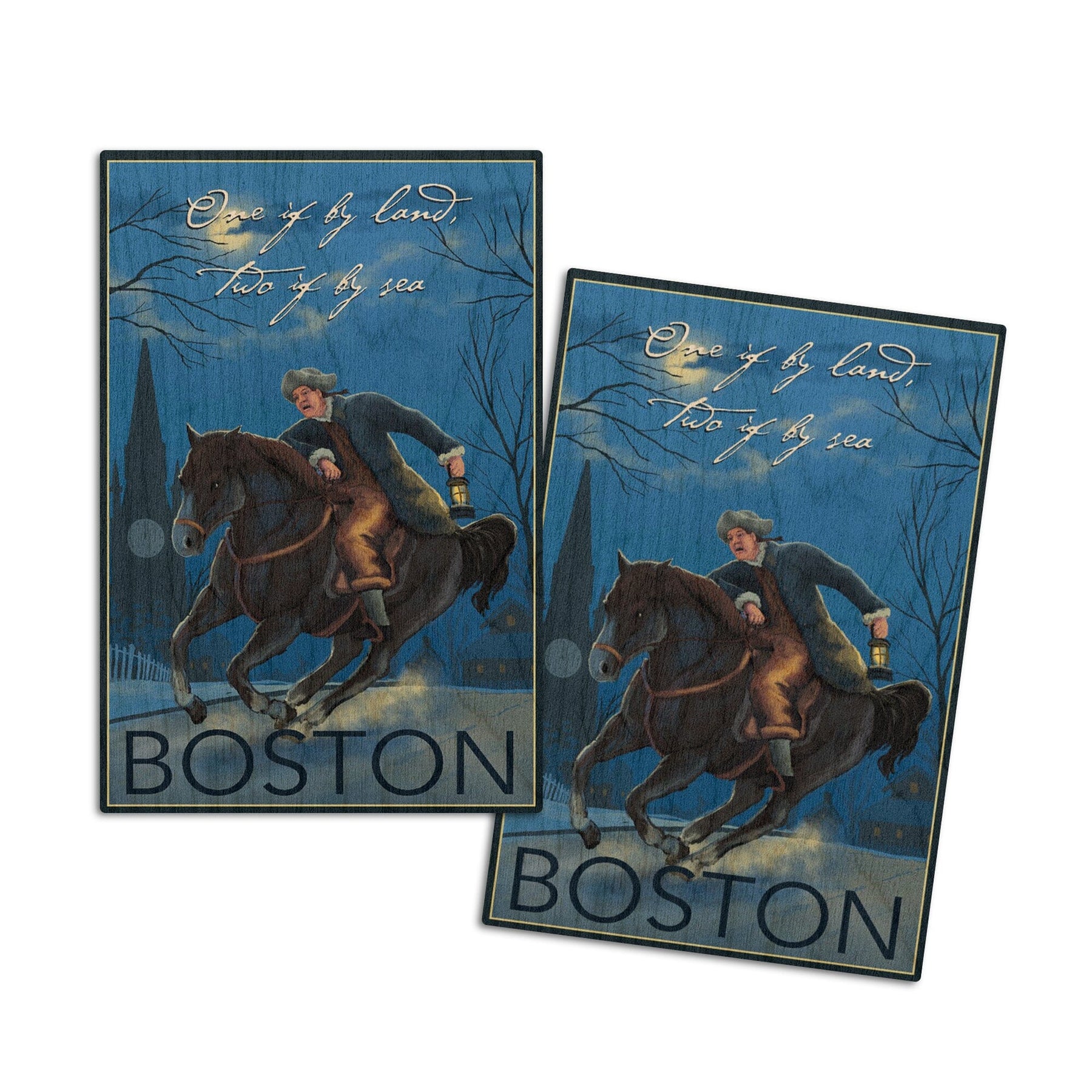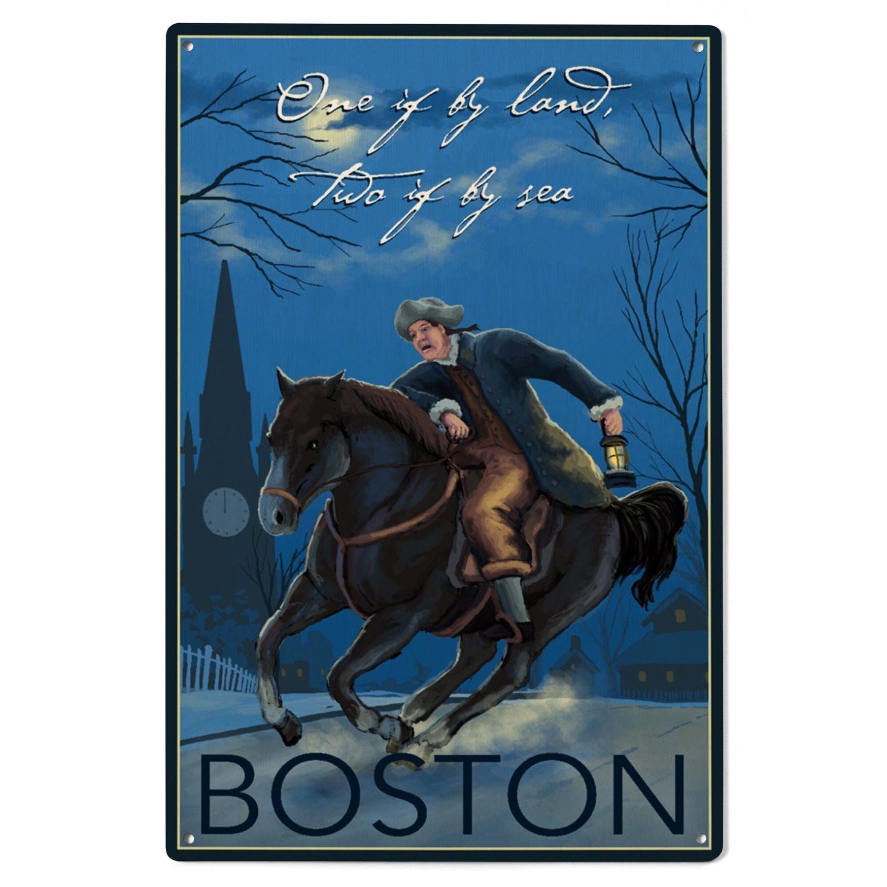 Boston, Massachusetts, Paul Revere, One If By Land, Lantern Press Artwork, Wood Signs and Postcards