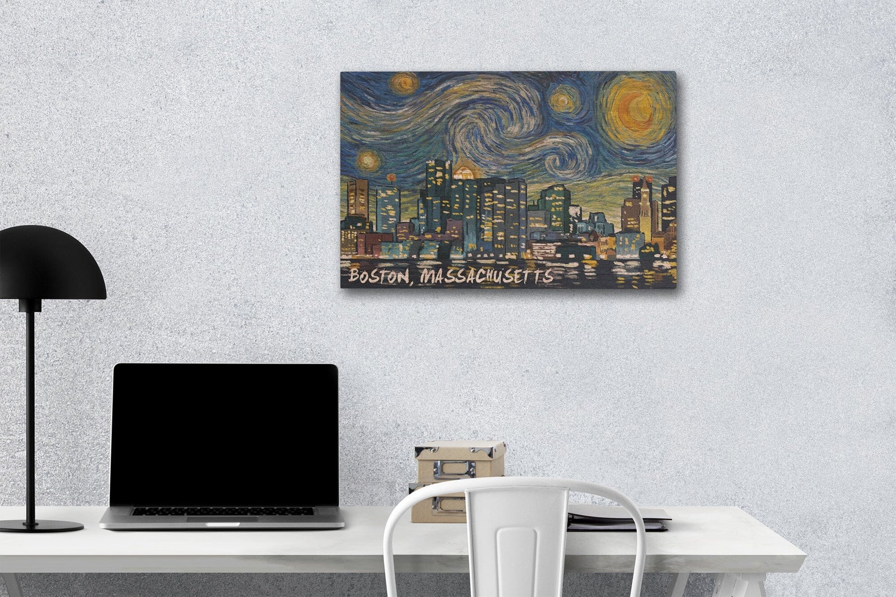 Boston, Massachusetts, Starry Night City Series, Lantern Press Artwork, Wood Signs and Postcards - Lantern Press