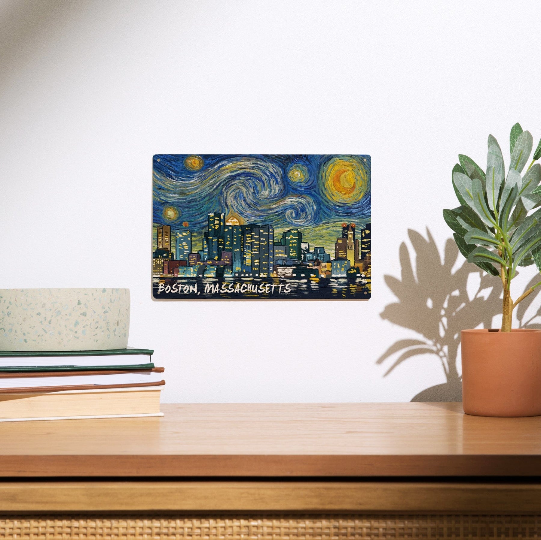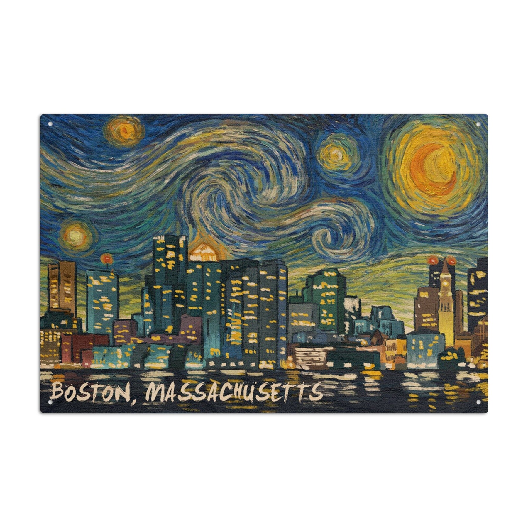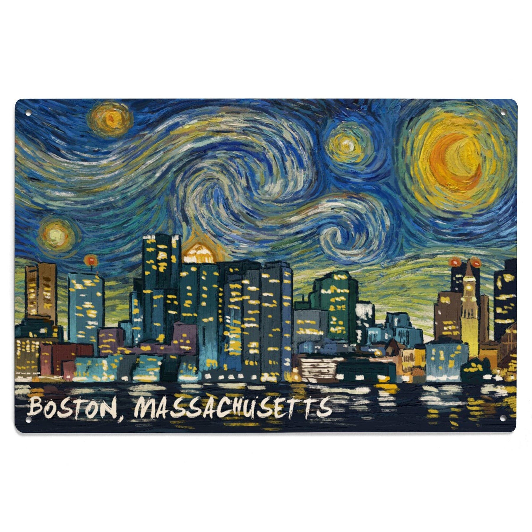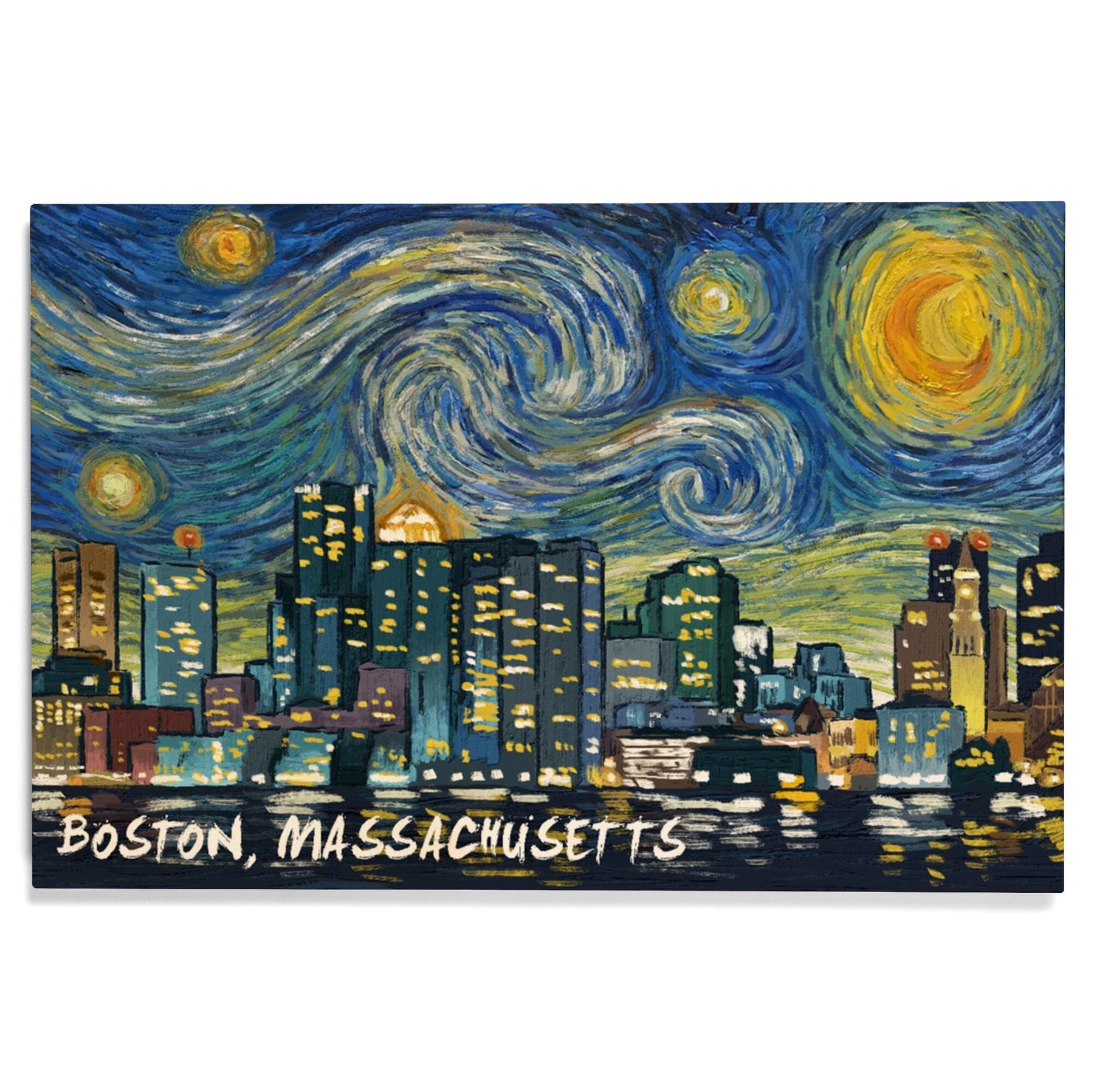 Boston, Massachusetts, Starry Night City Series, Lantern Press Artwork, Wood Signs and Postcards