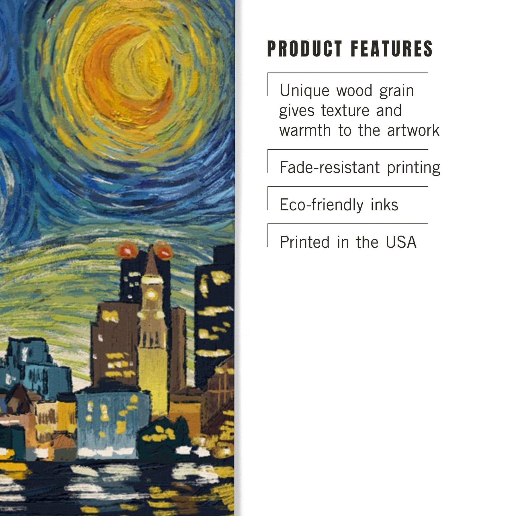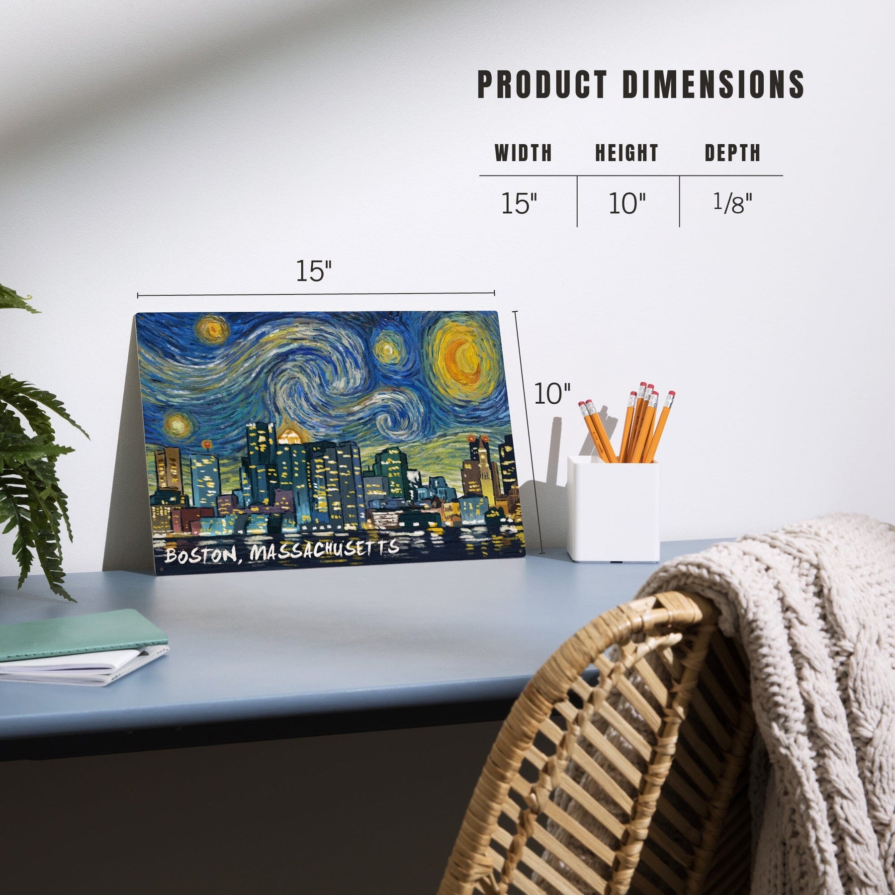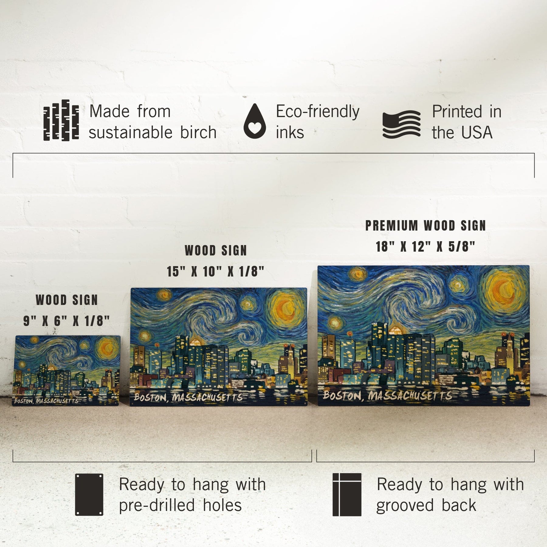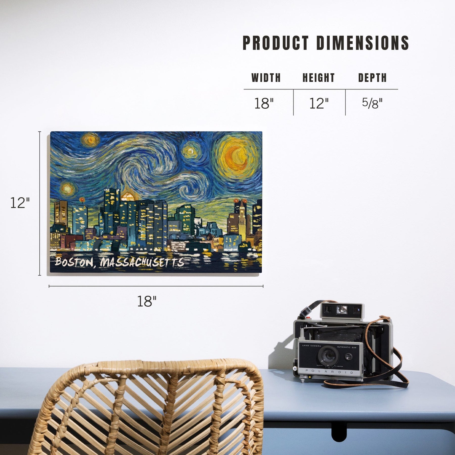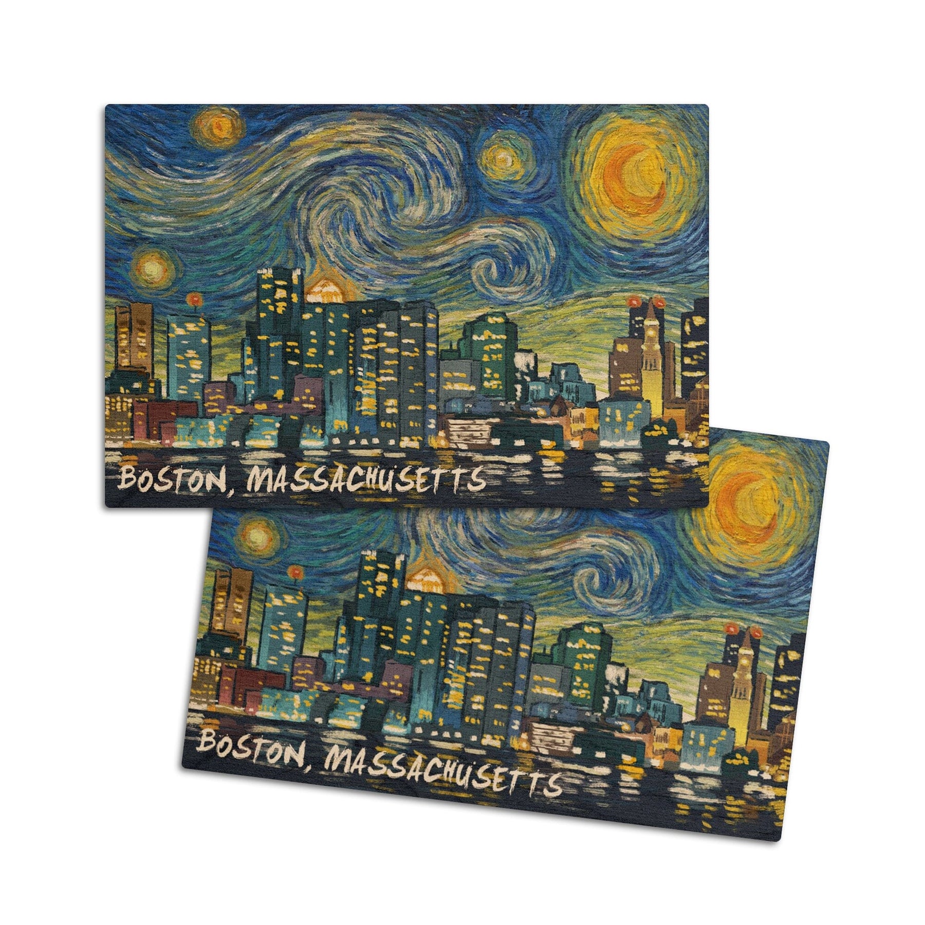 Boston, Massachusetts, Starry Night City Series, Lantern Press Artwork, Wood Signs and Postcards