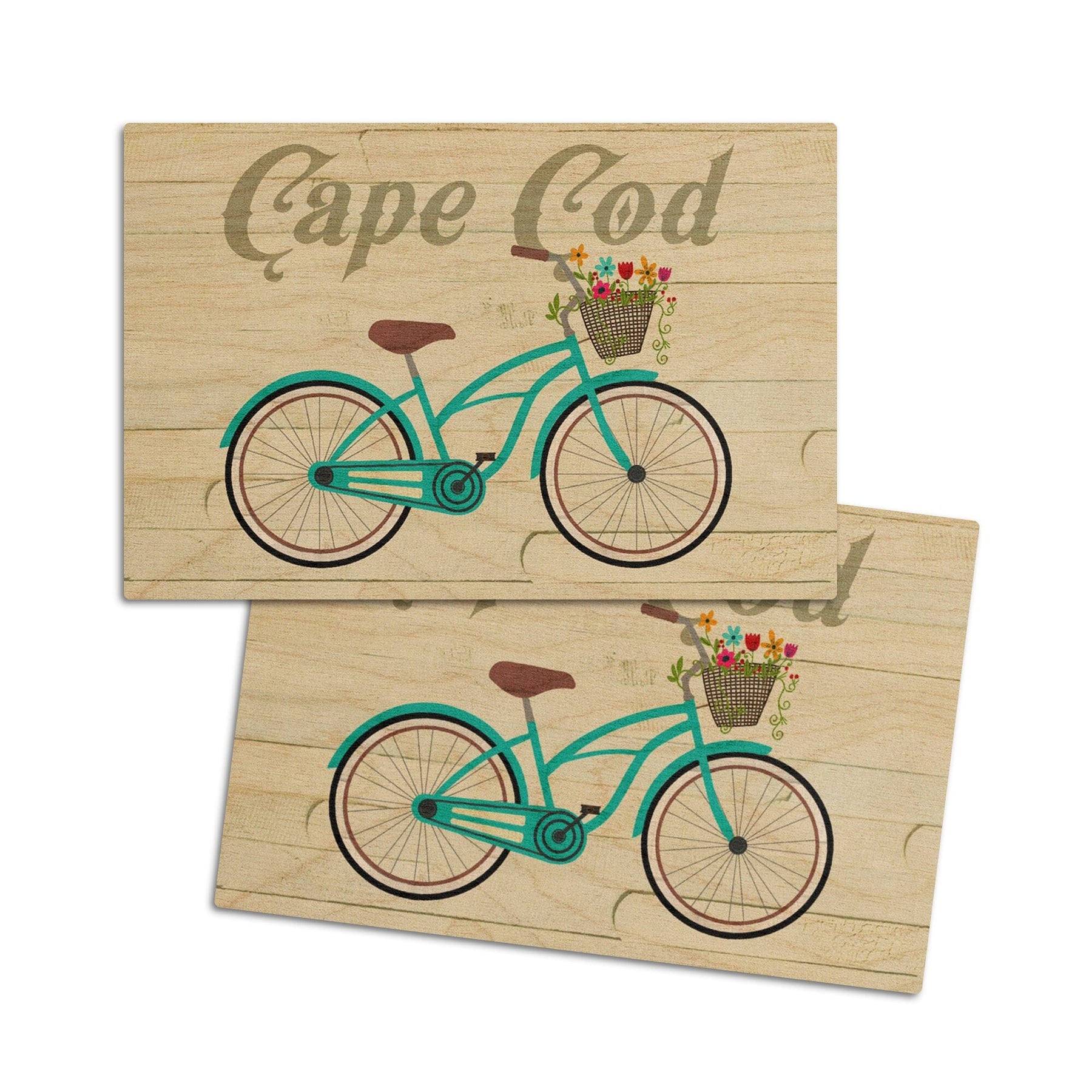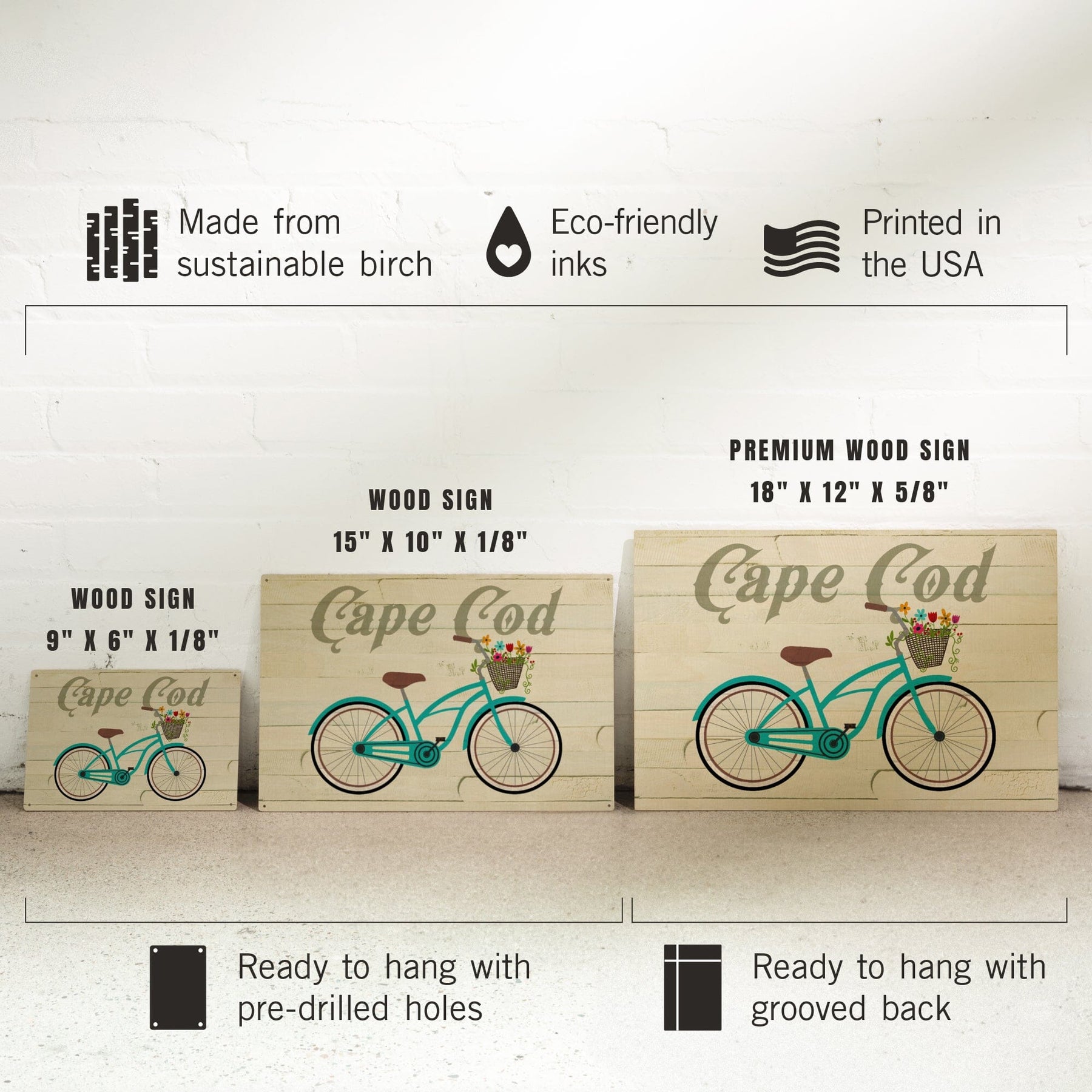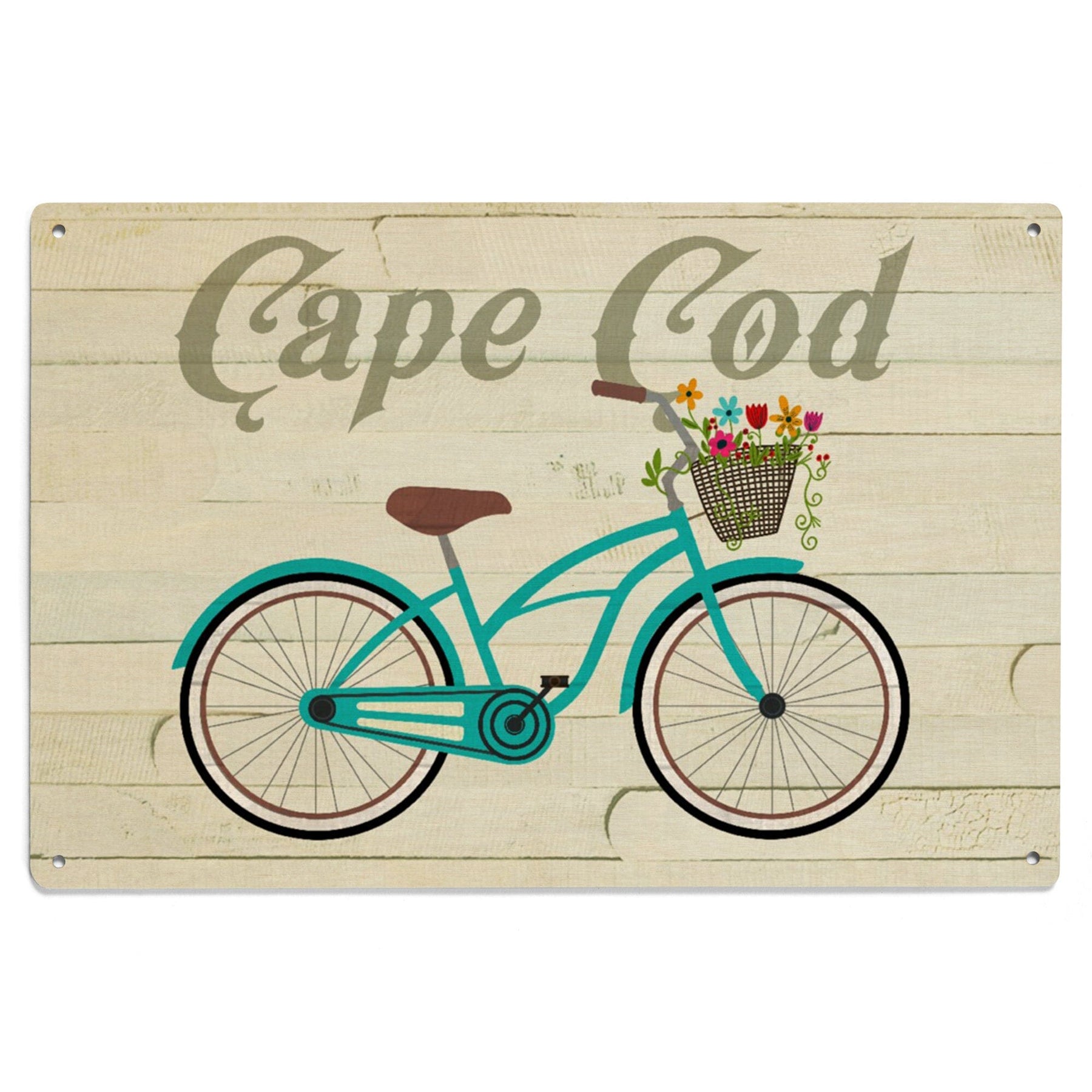 Cape Cod, Massachusetts, Beach Cruiser & Basket, Lantern Press Artwork, Wood Signs and Postcards