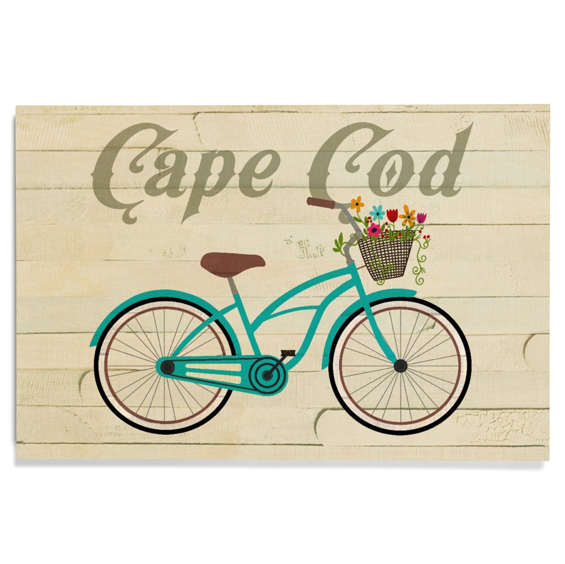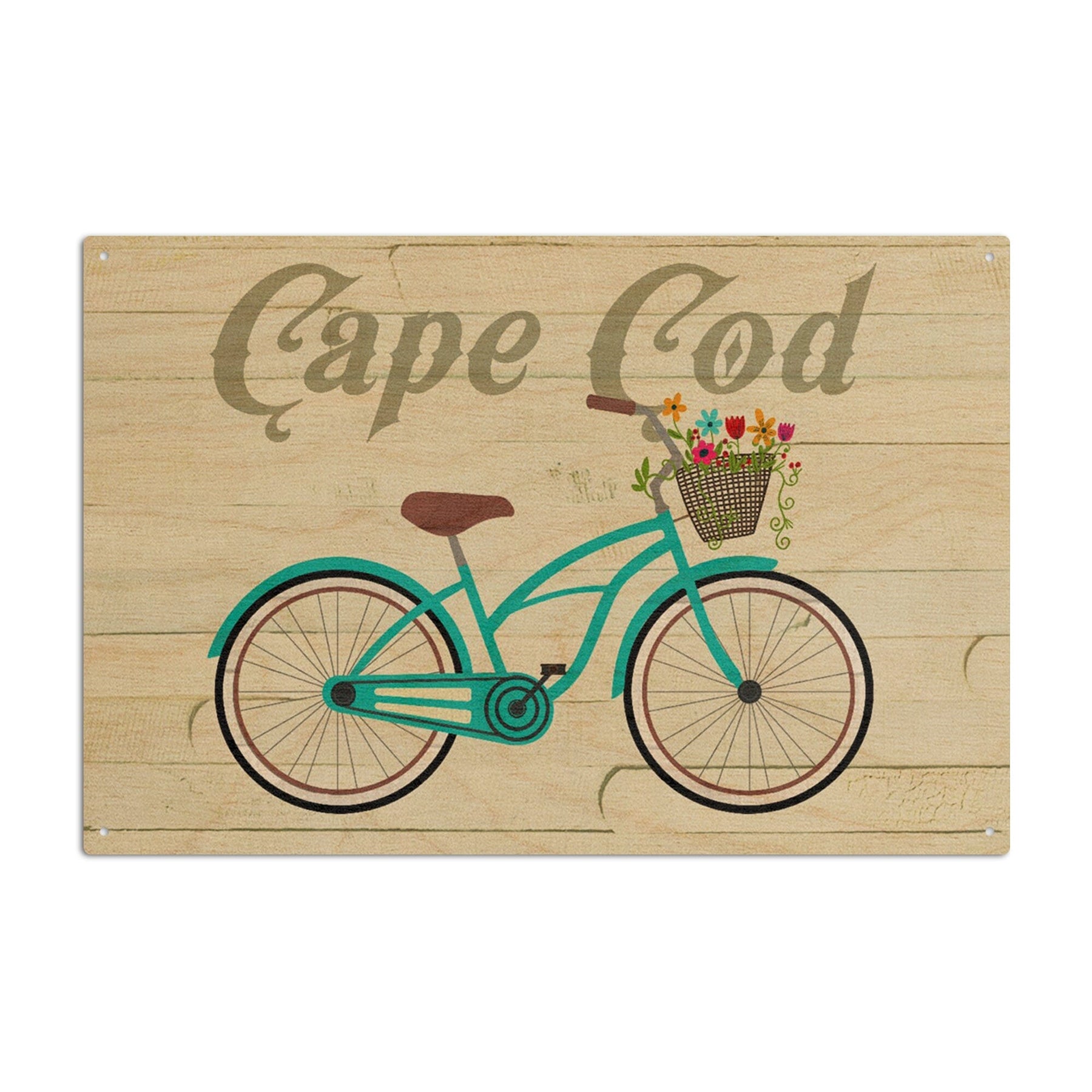 Cape Cod, Massachusetts, Beach Cruiser & Basket, Lantern Press Artwork, Wood Signs and Postcards - Lantern Press