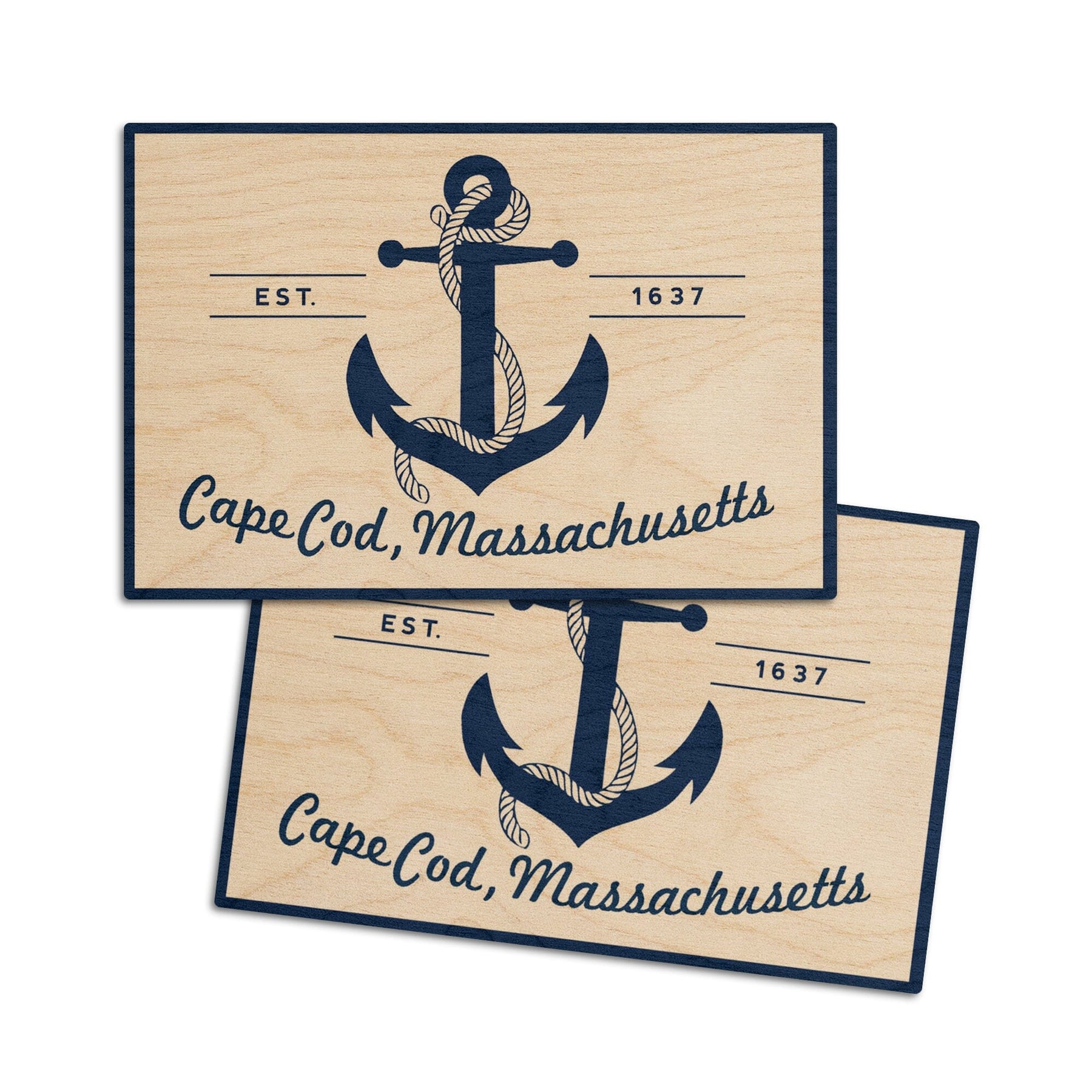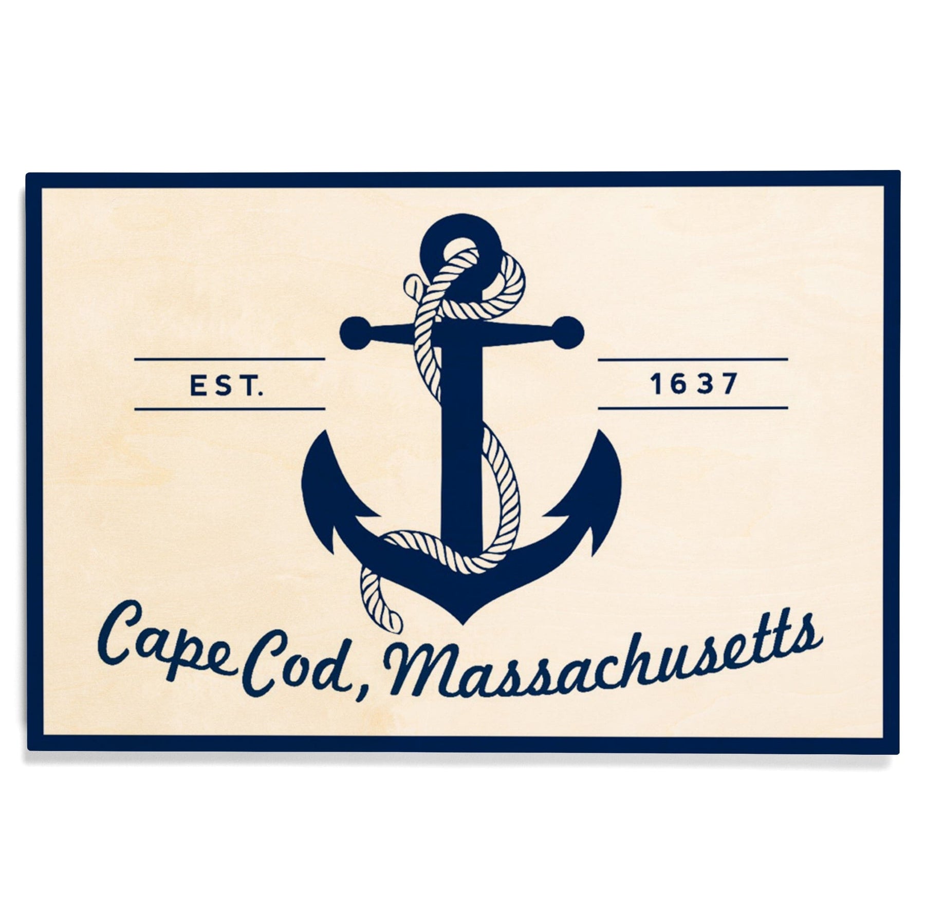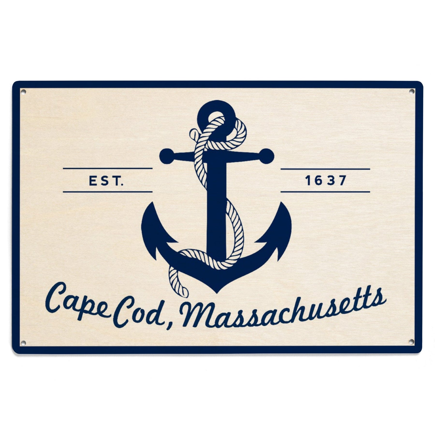 Cape Cod, Massachusetts, Blue & White Anchor, Lantern Press Artwork, Wood Signs and Postcards - Lantern Press