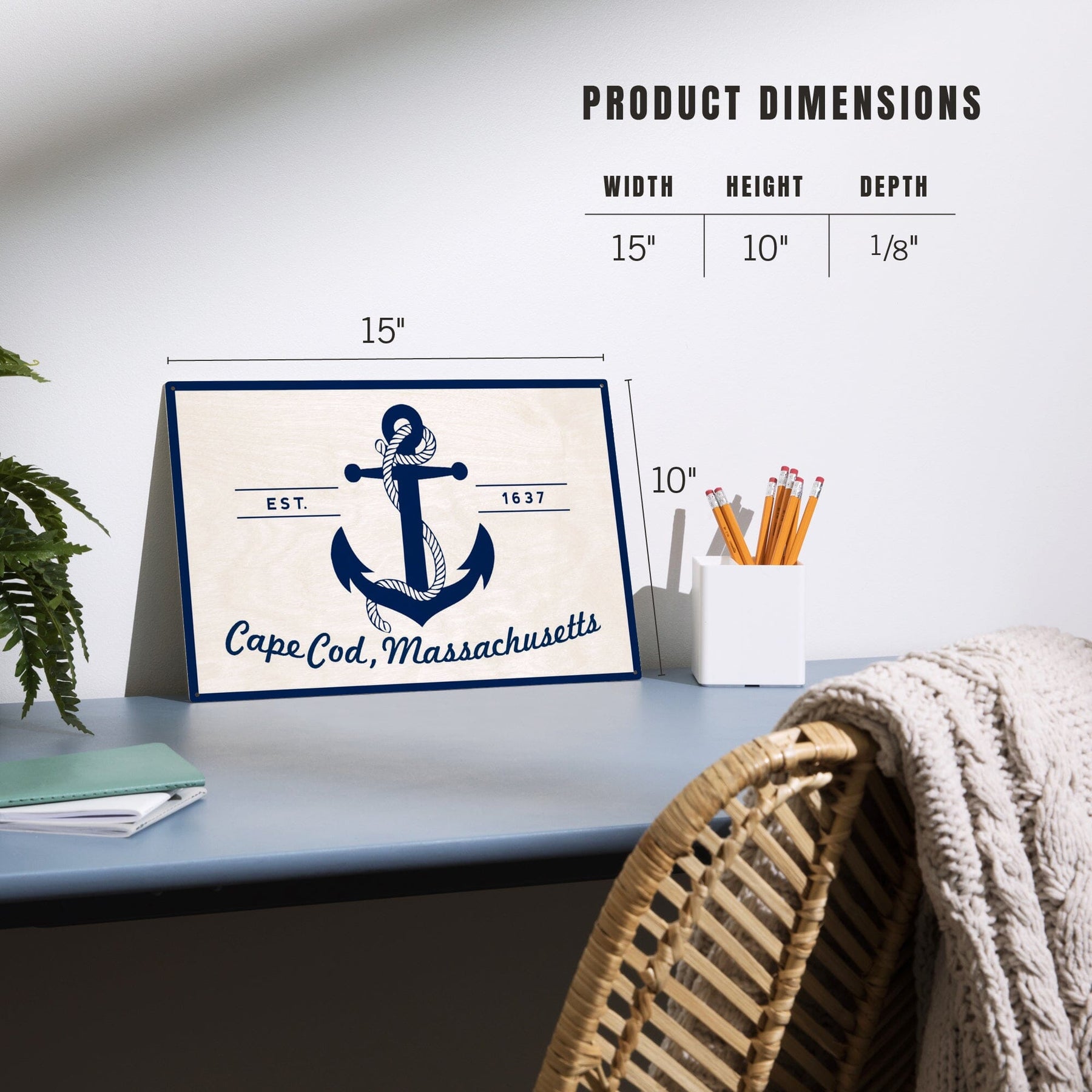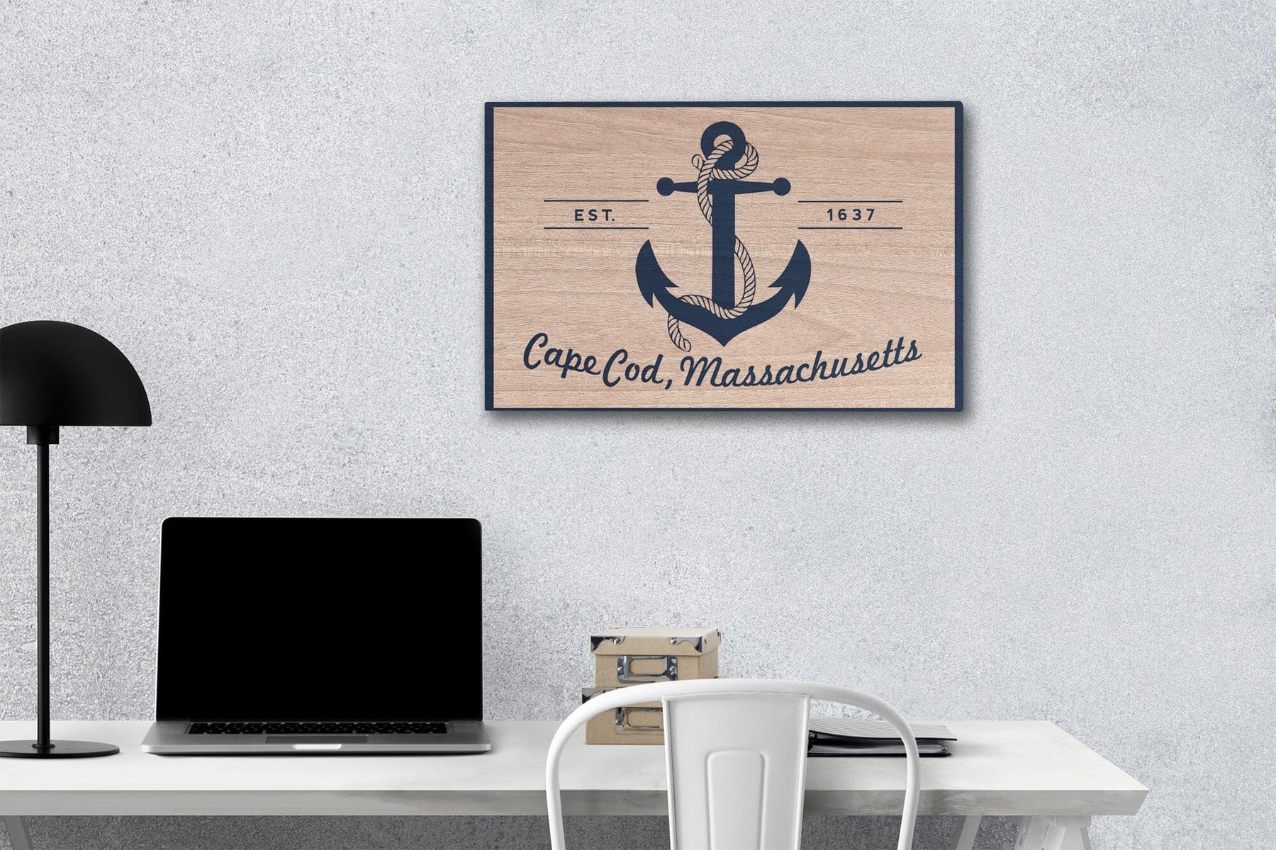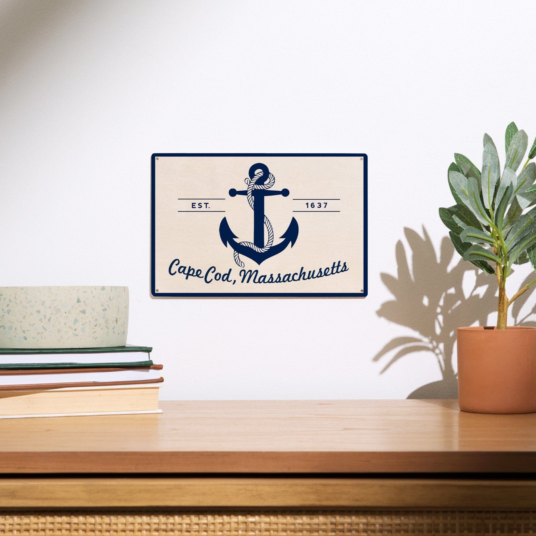 Cape Cod, Massachusetts, Blue & White Anchor, Lantern Press Artwork, Wood Signs and Postcards - Lantern Press