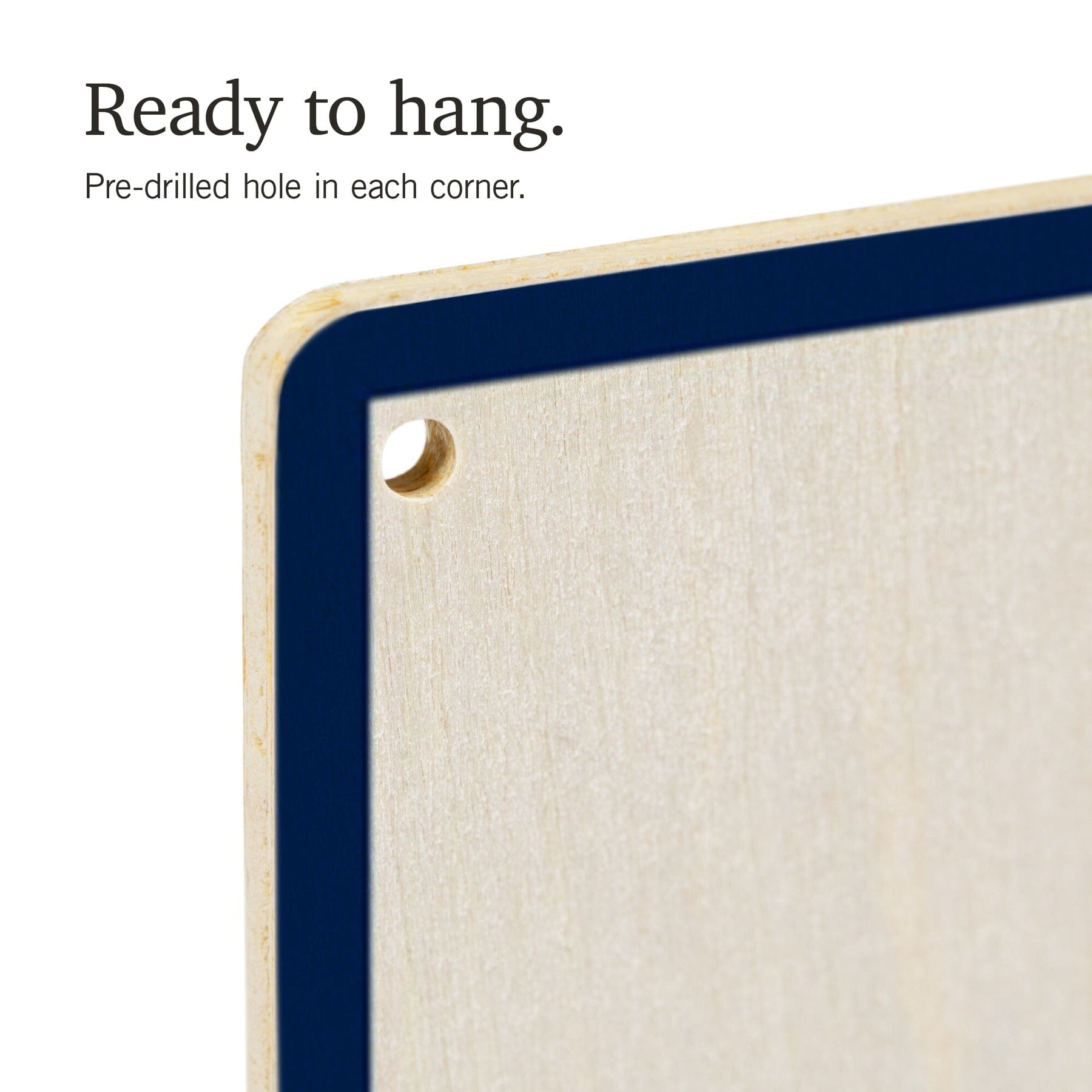 • Hole in each corner, ready to hang