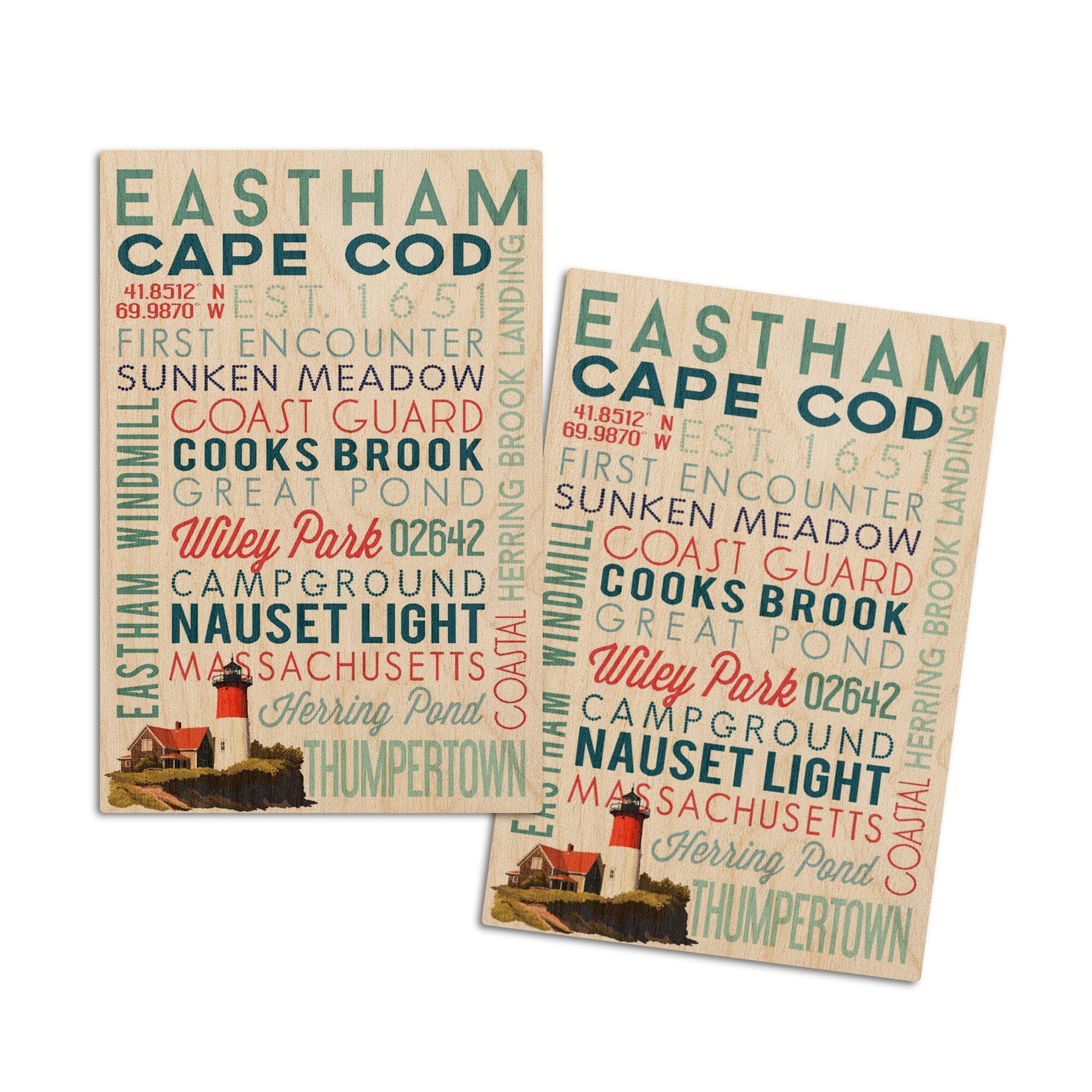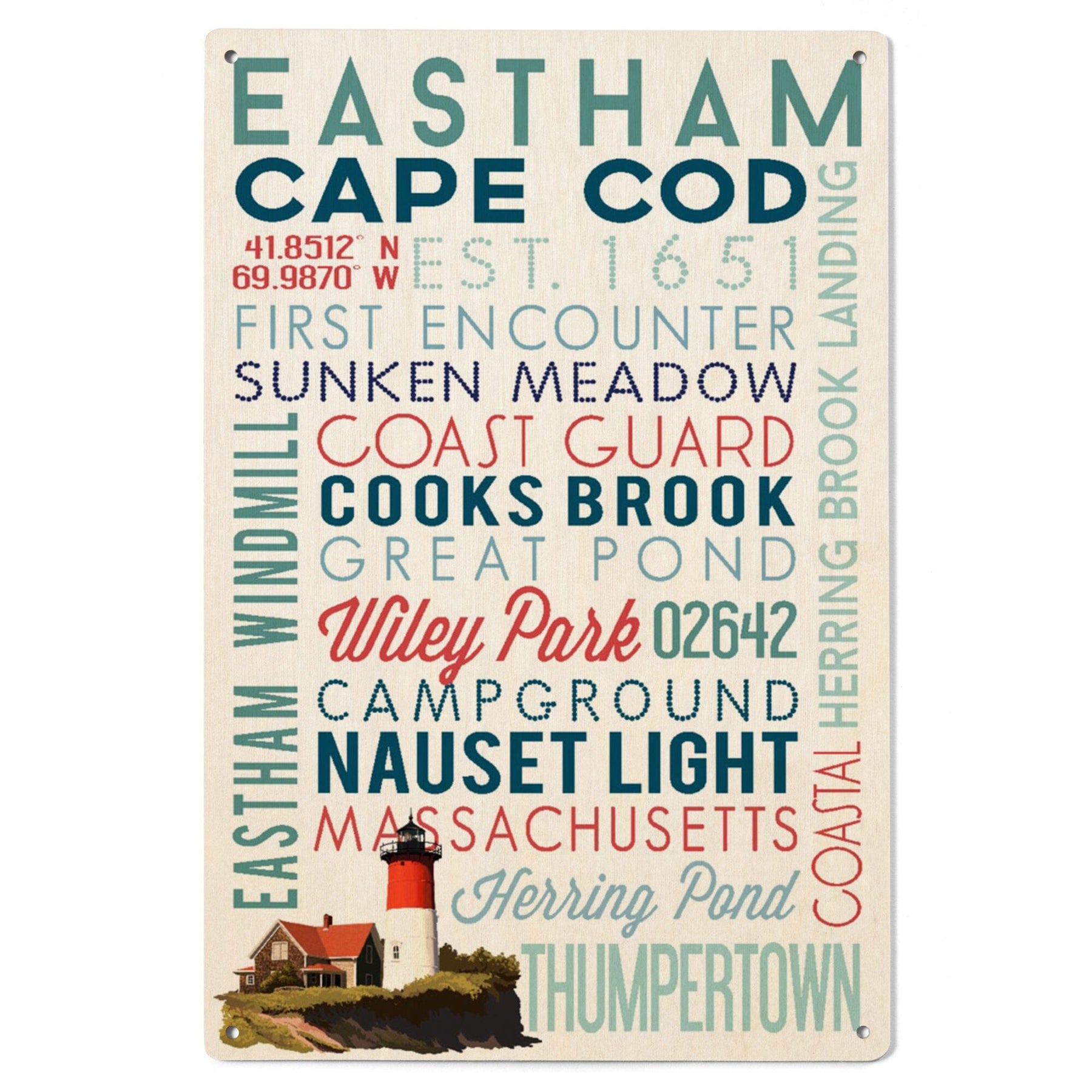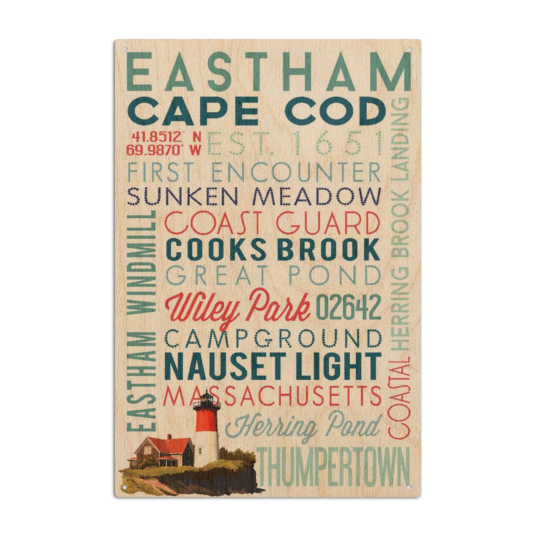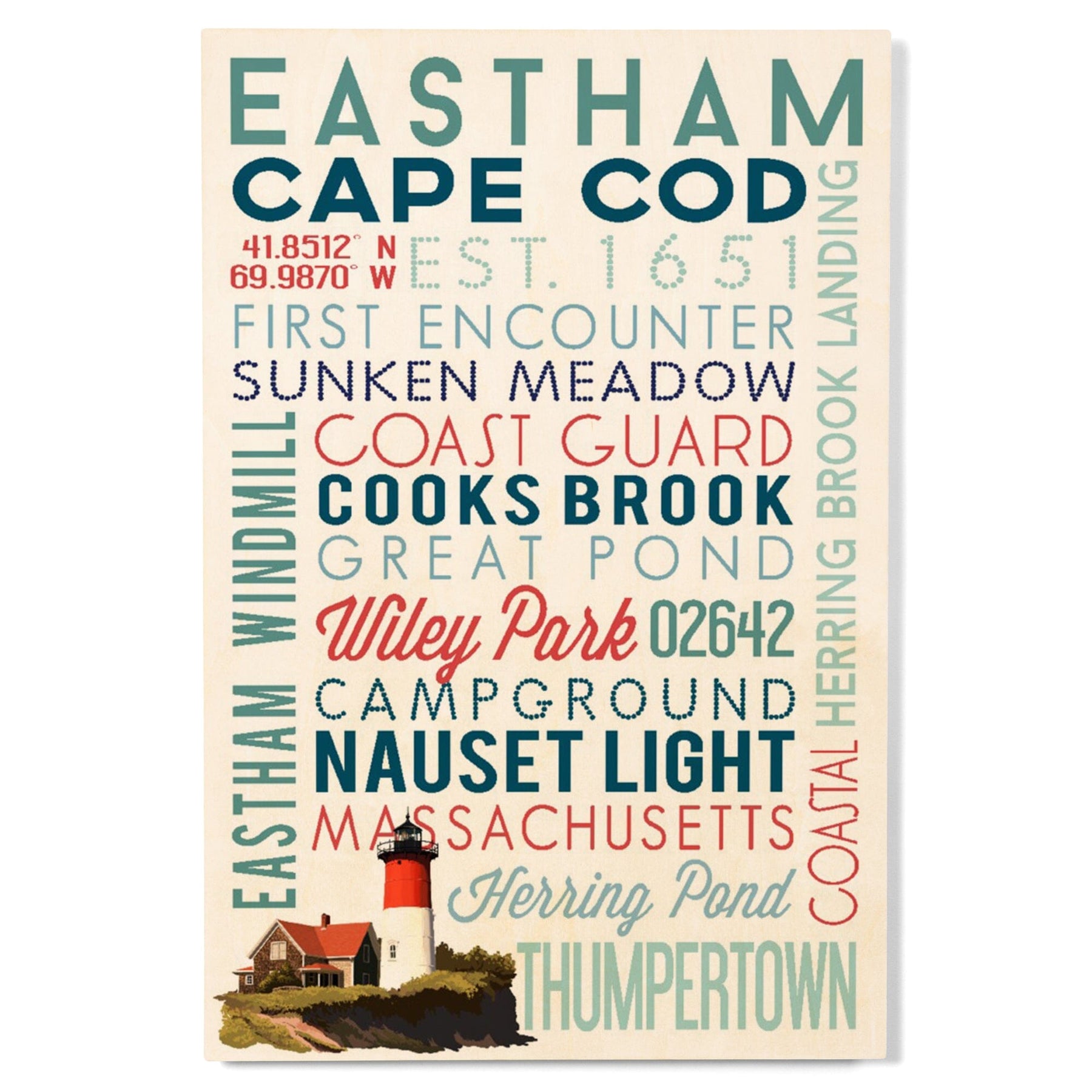 Eastham, Massachusetts, Cape Cod, Typography, Lantern Press Artwork, Wood Signs and Postcards
