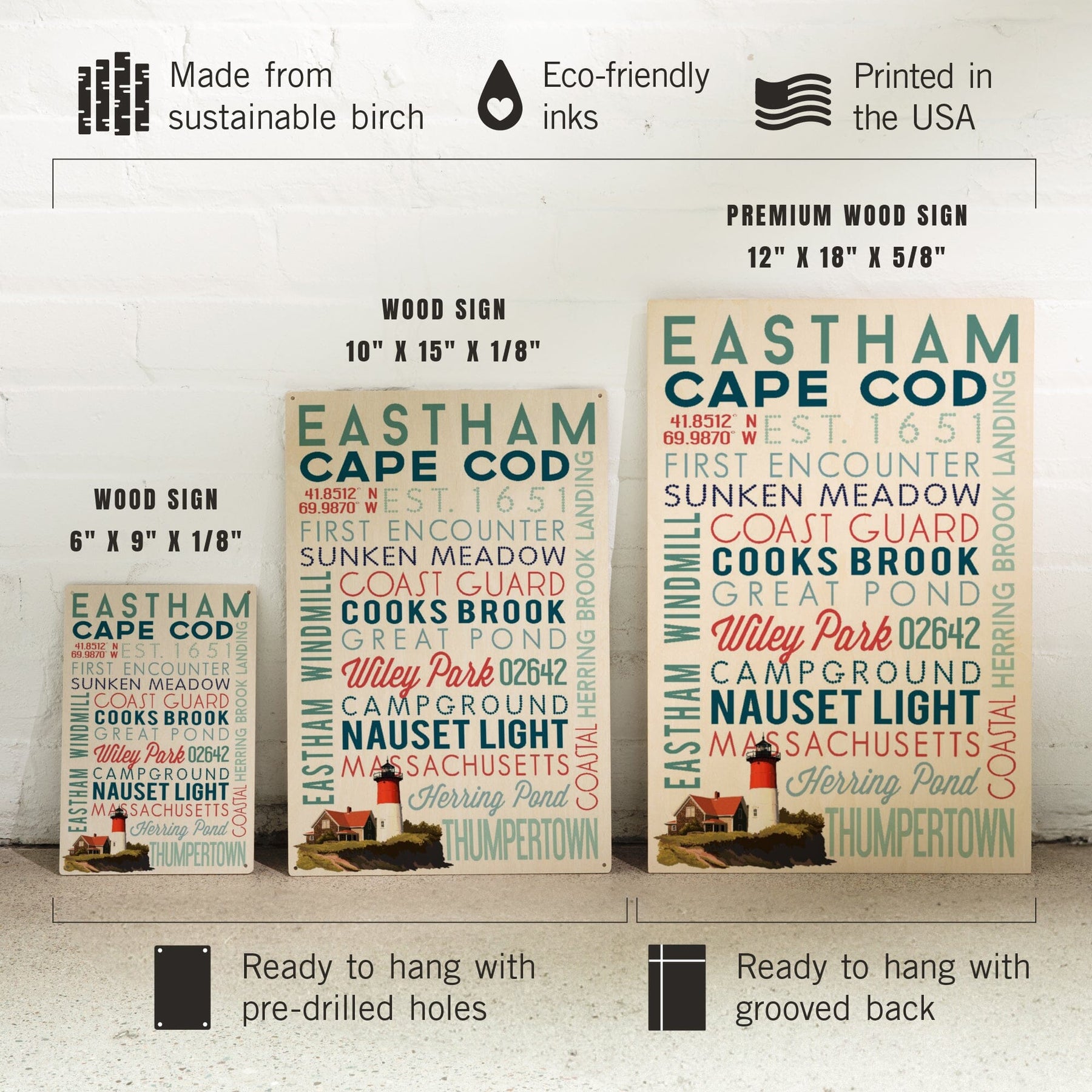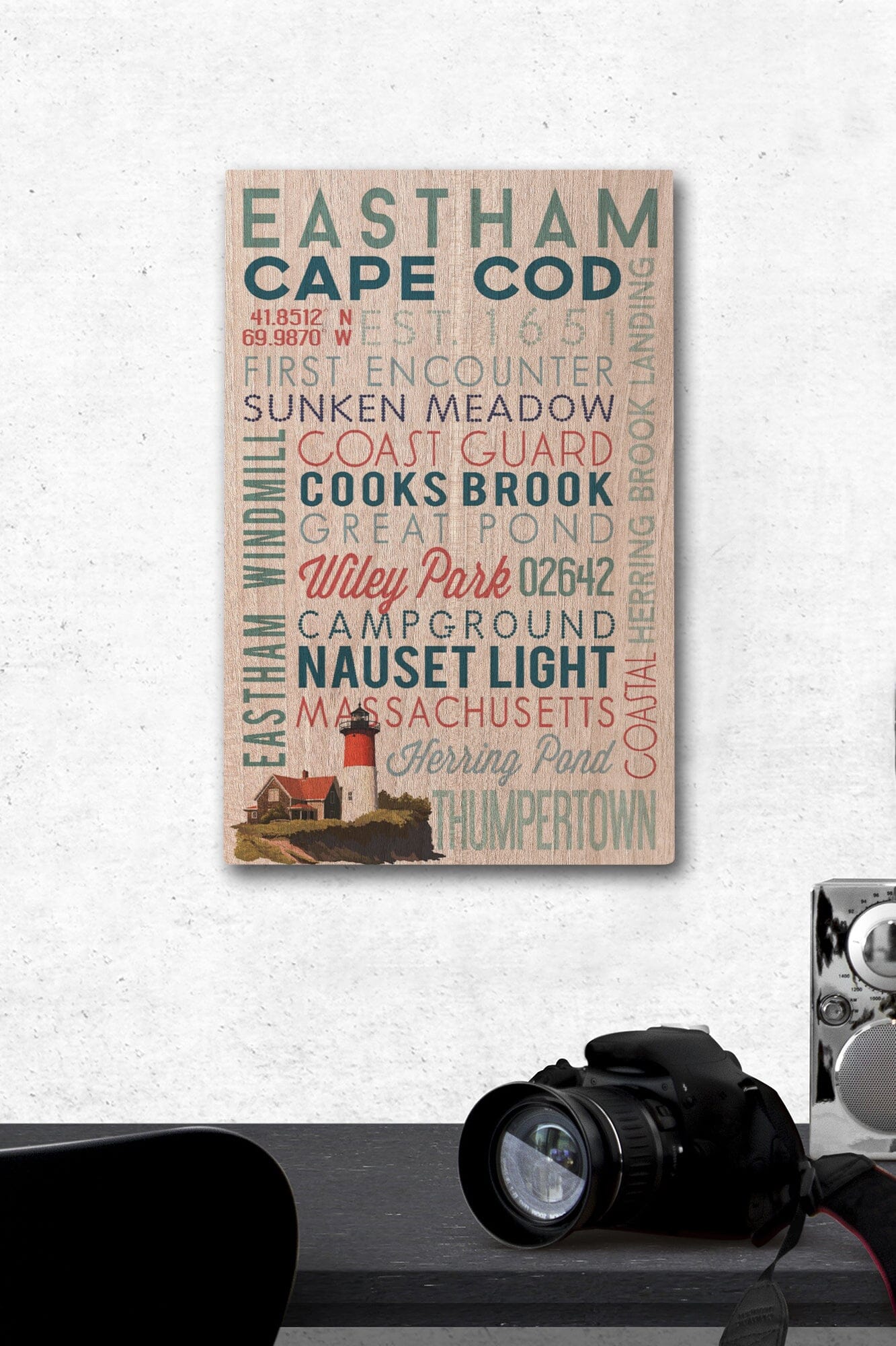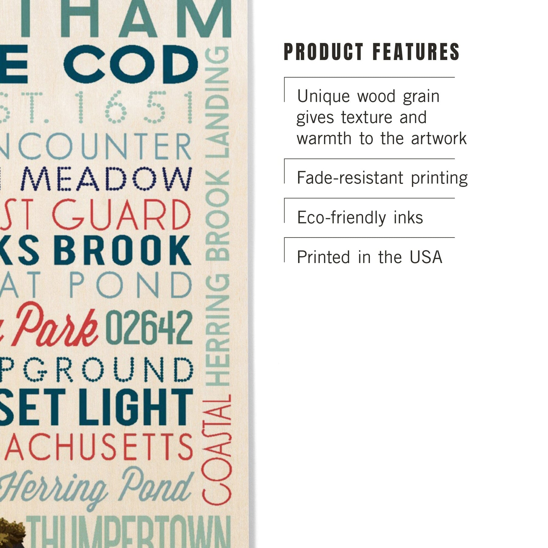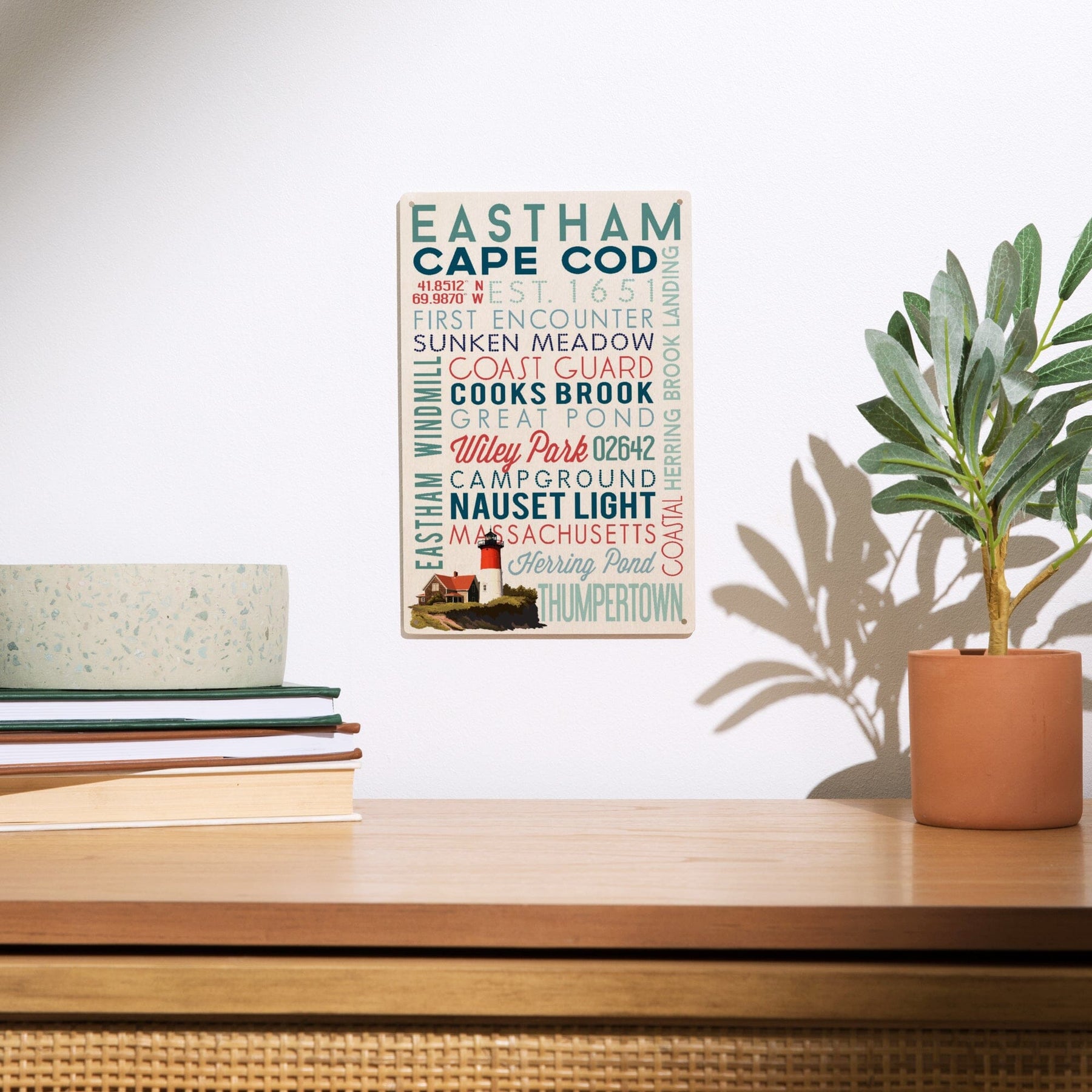 Eastham, Massachusetts, Cape Cod, Typography, Lantern Press Artwork, Wood Signs and Postcards