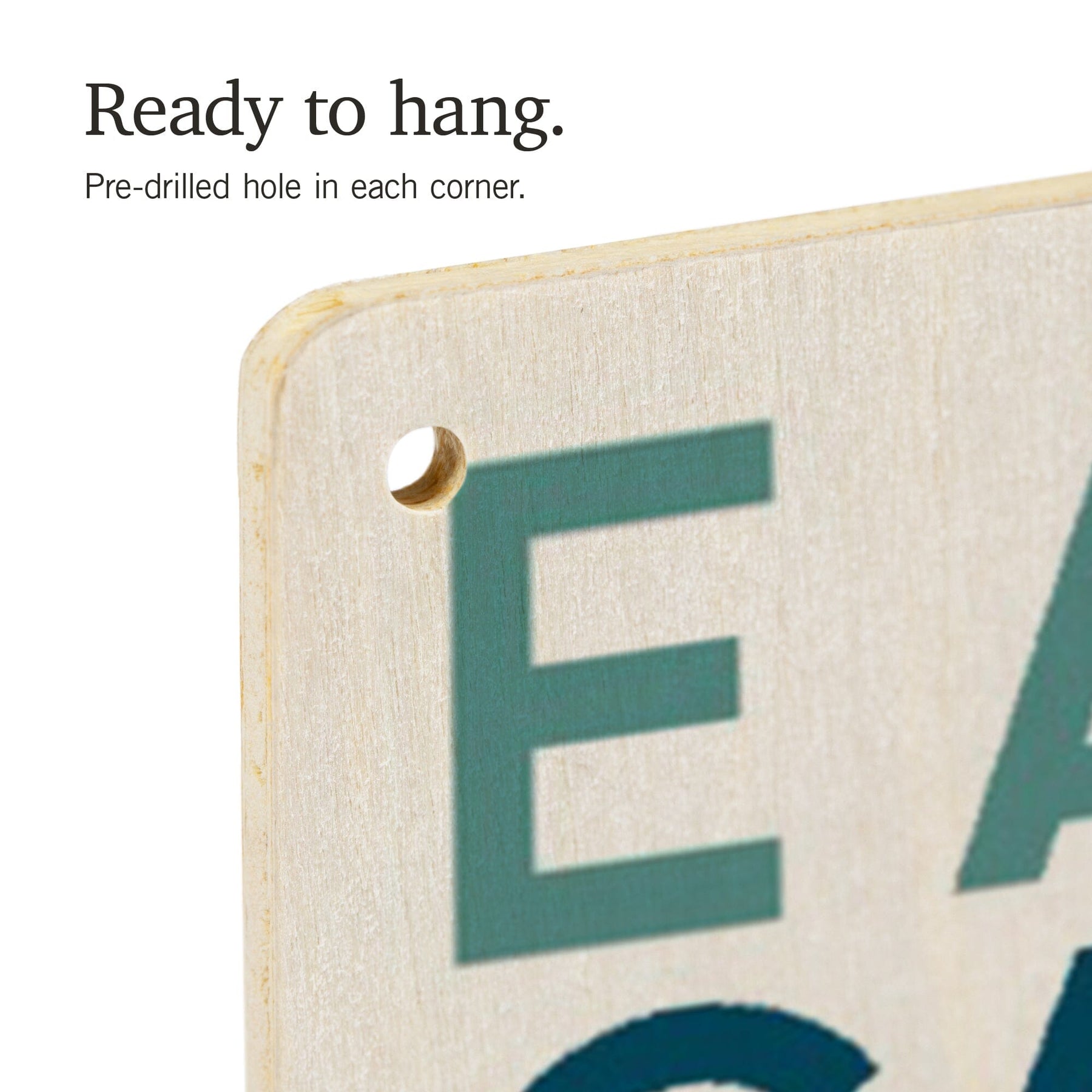 • Hole in each corner, ready to hang