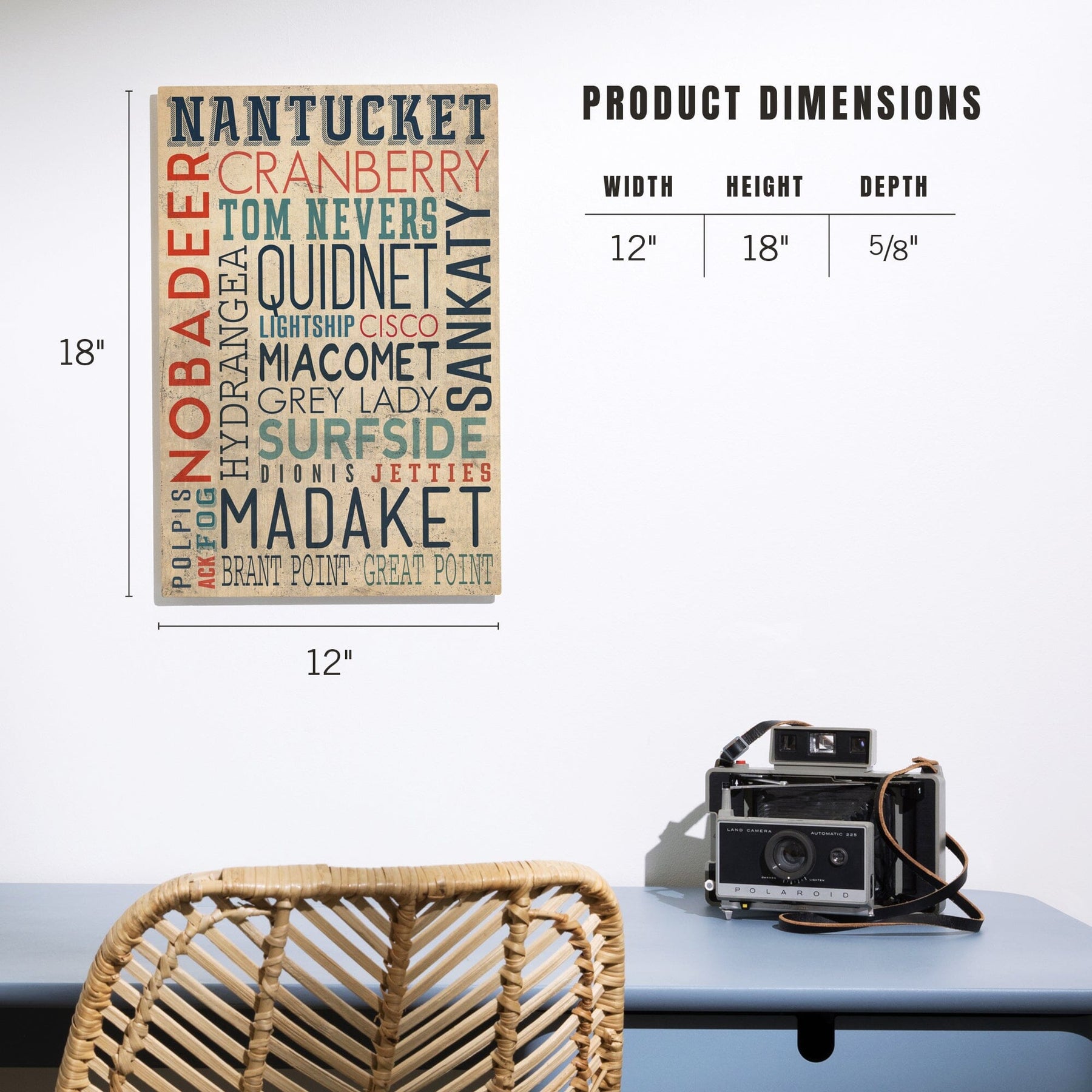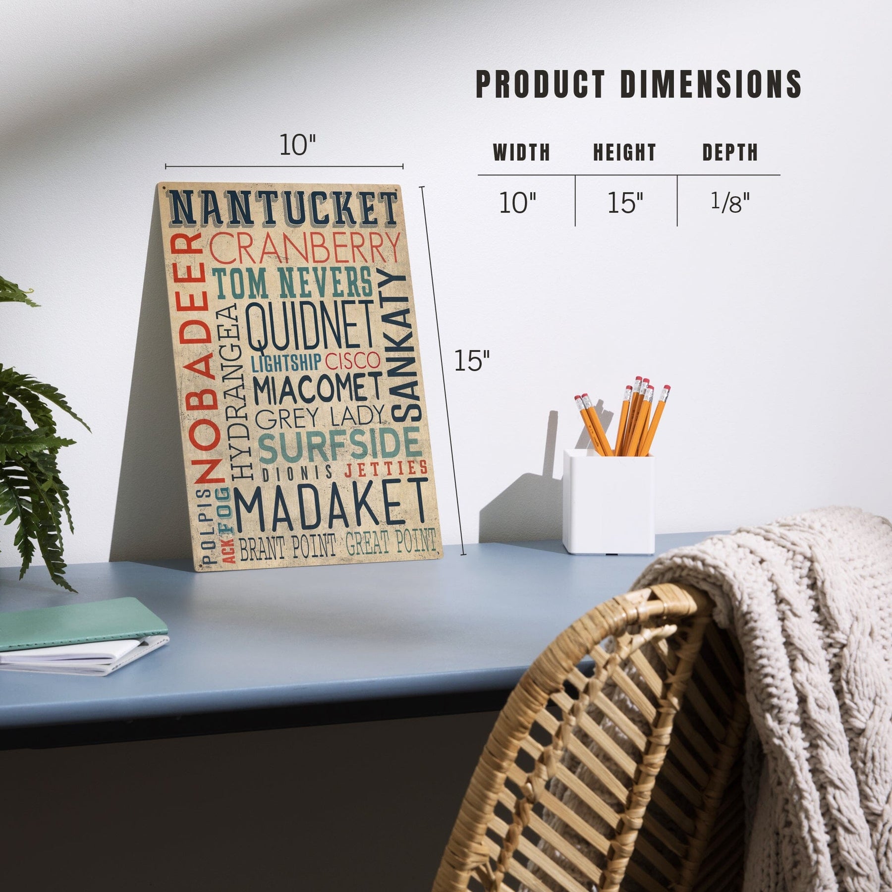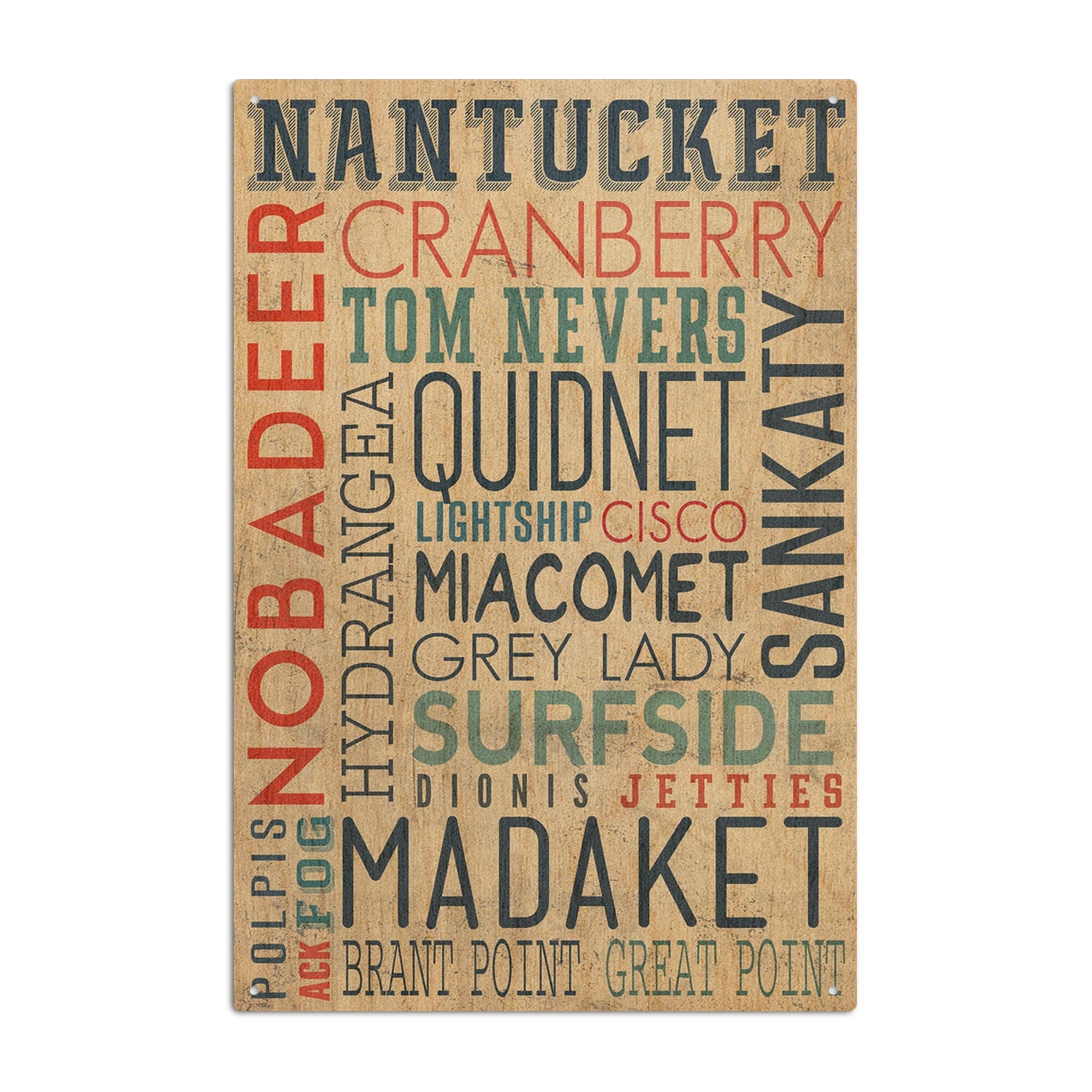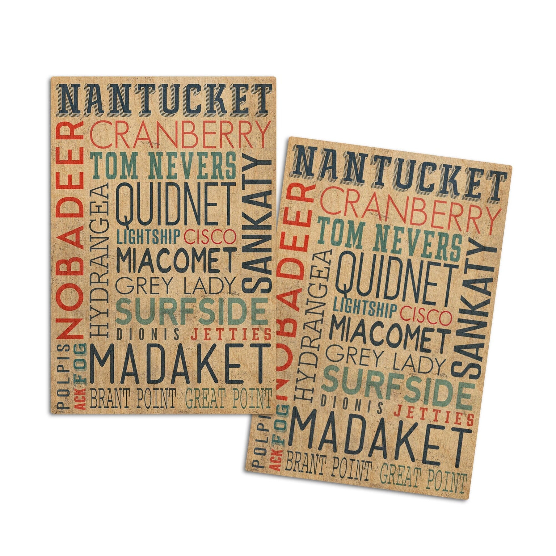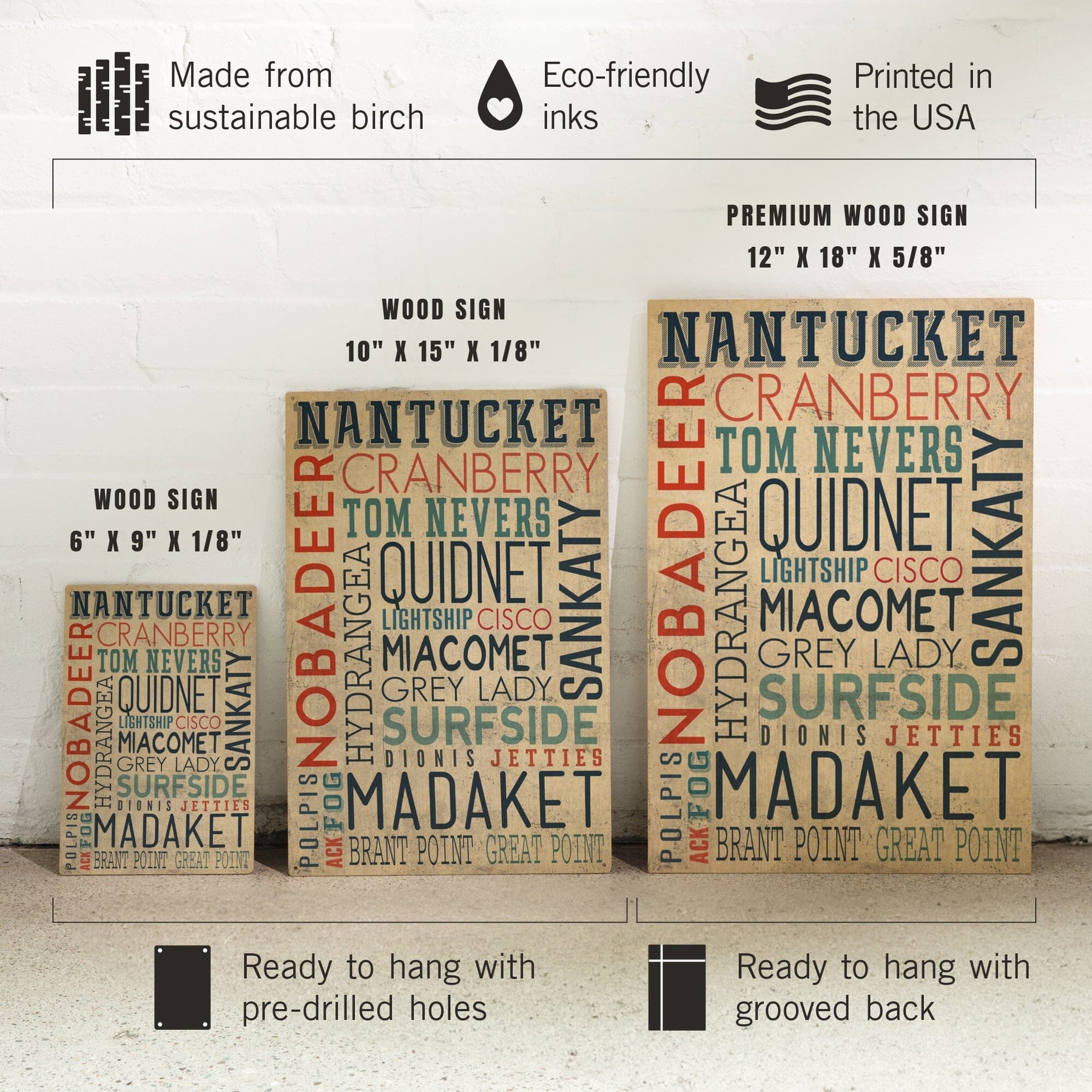 Nantucket, Massachusetts, Typography, Lantern Press Artwork, Wood Signs and Postcards