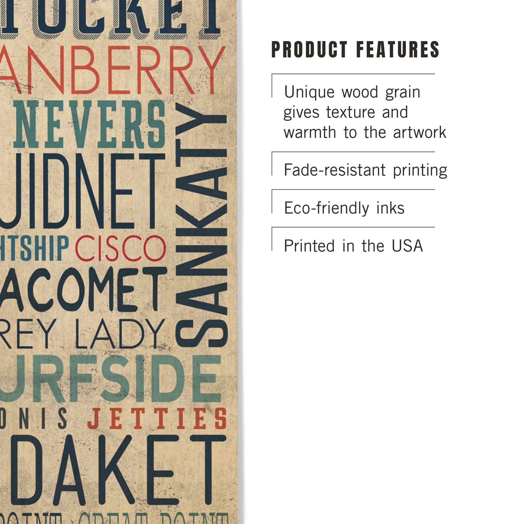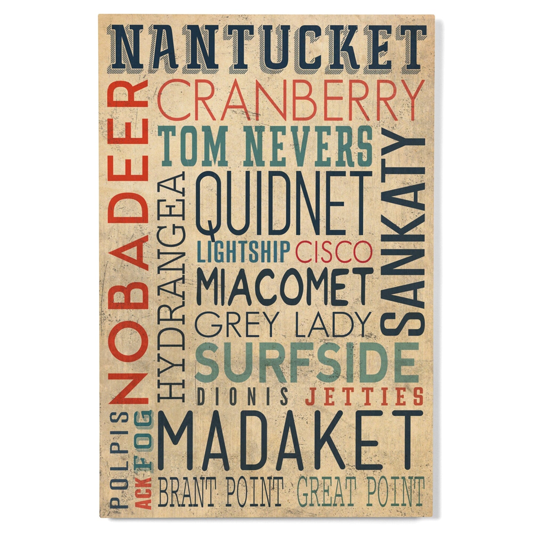 Nantucket, Massachusetts, Typography, Lantern Press Artwork, Wood Signs and Postcards Wood Lantern Press