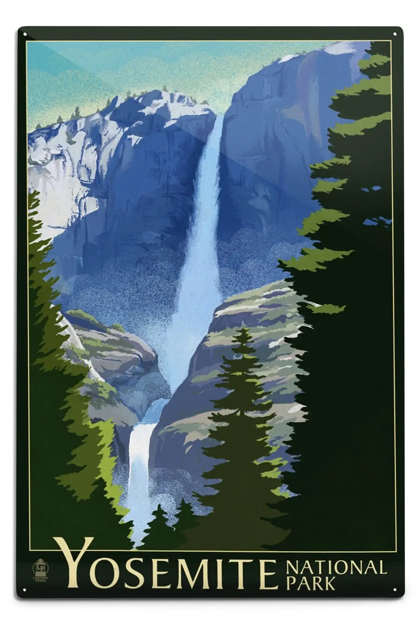 Yosemite National Park, California, Yosemite Falls, Lithography, Metal Signs