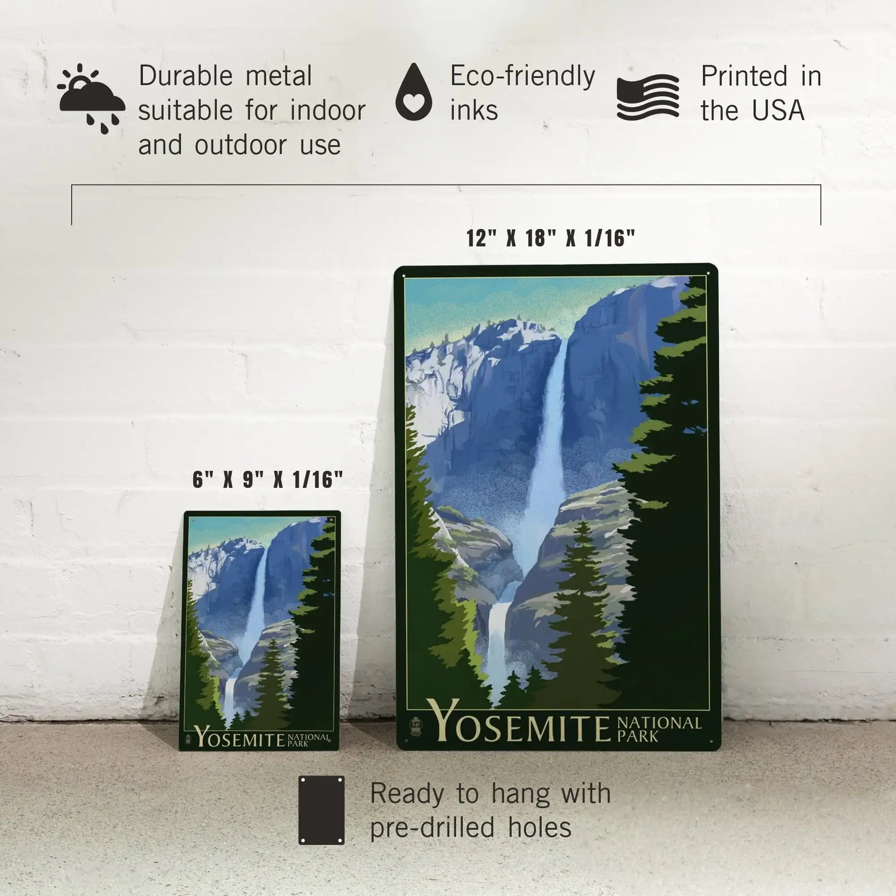 Yosemite National Park, California, Yosemite Falls, Lithography, Metal Signs Metal Lantern Press