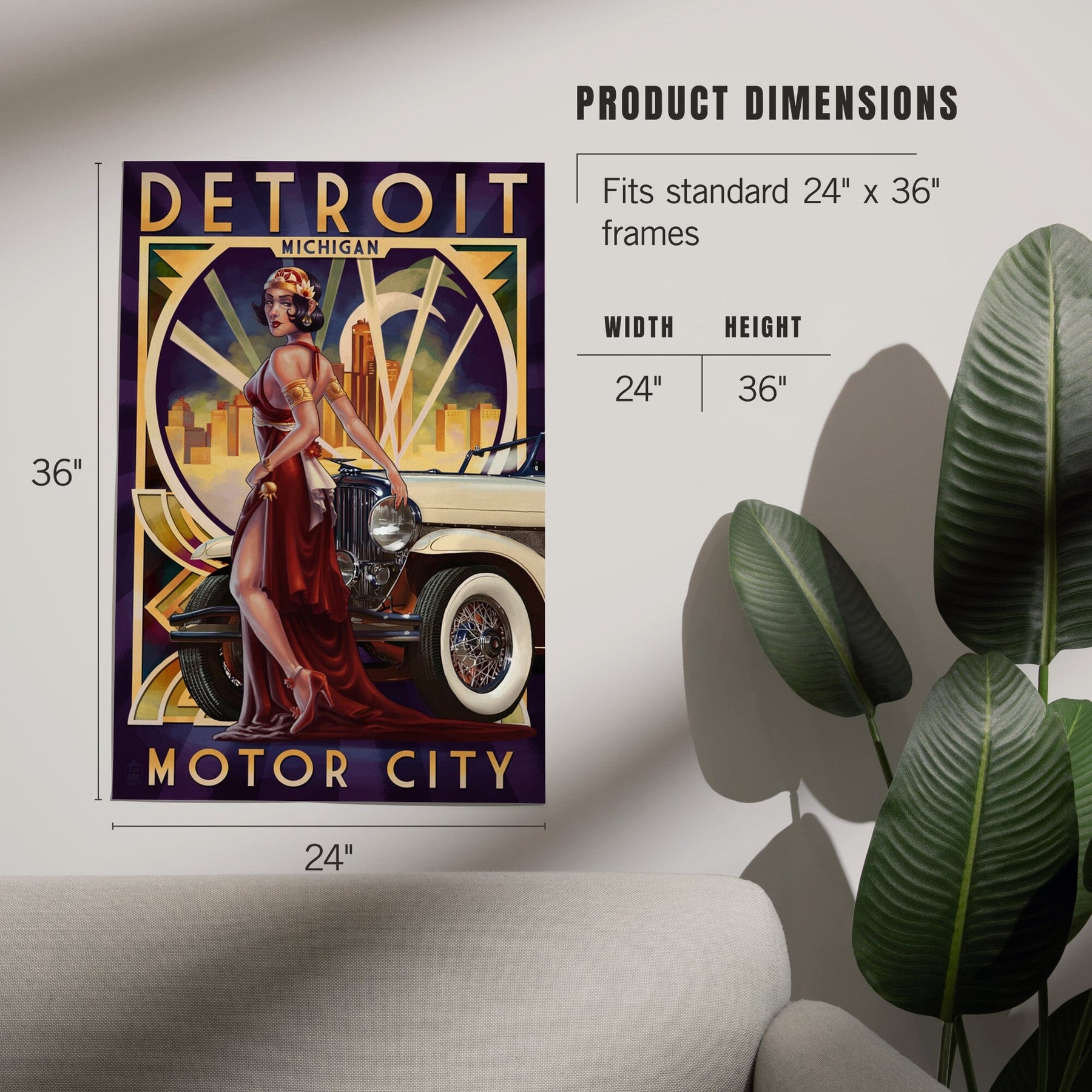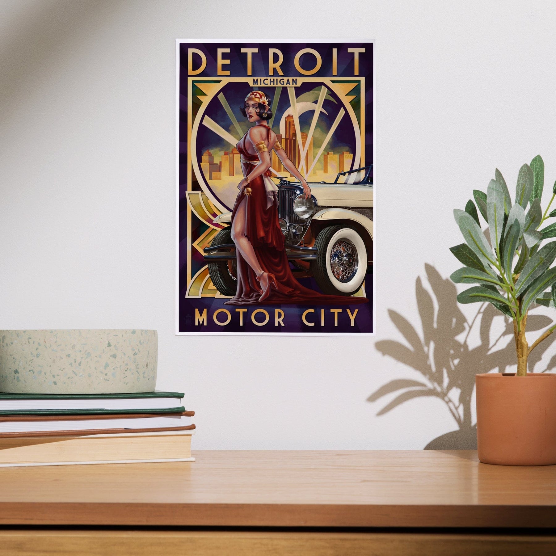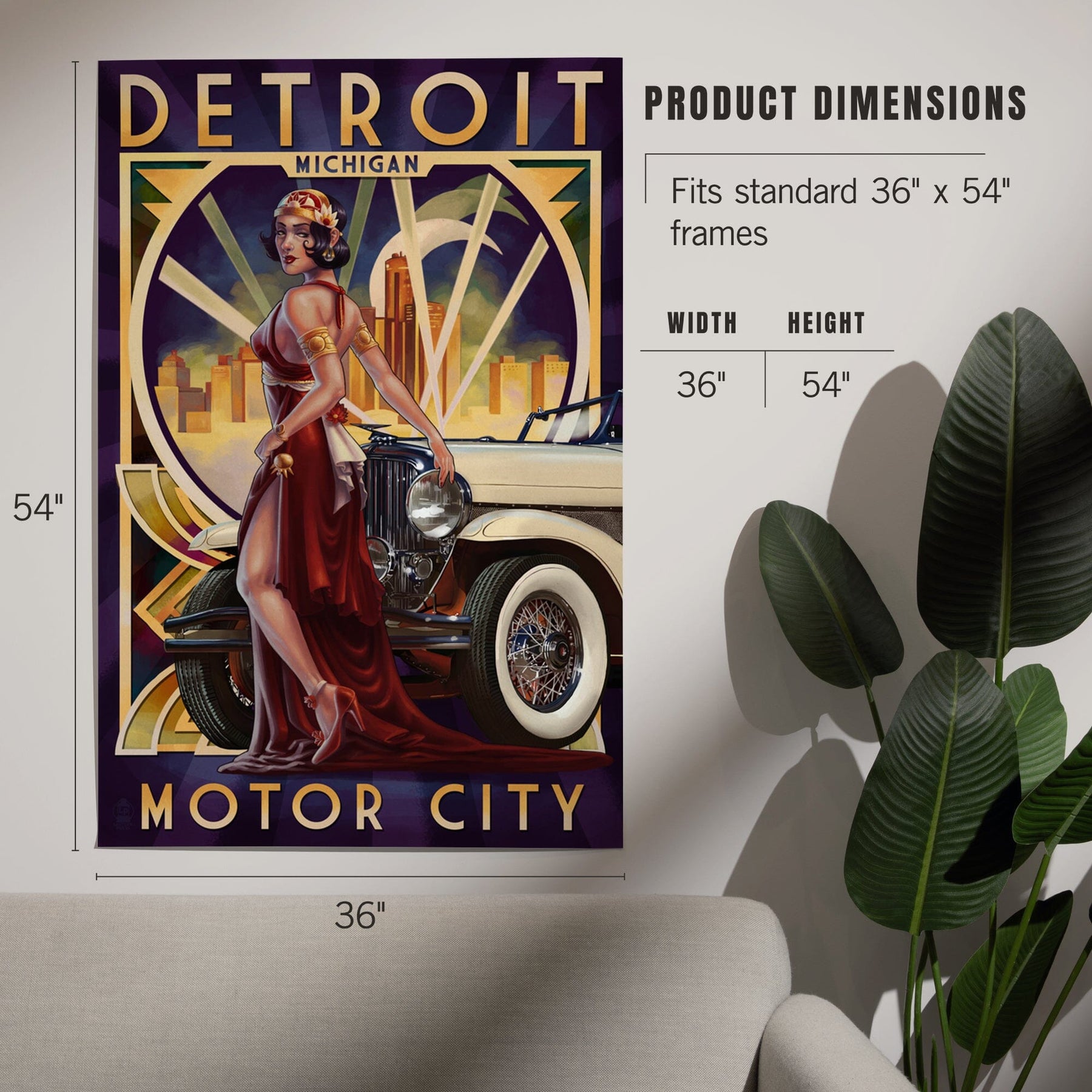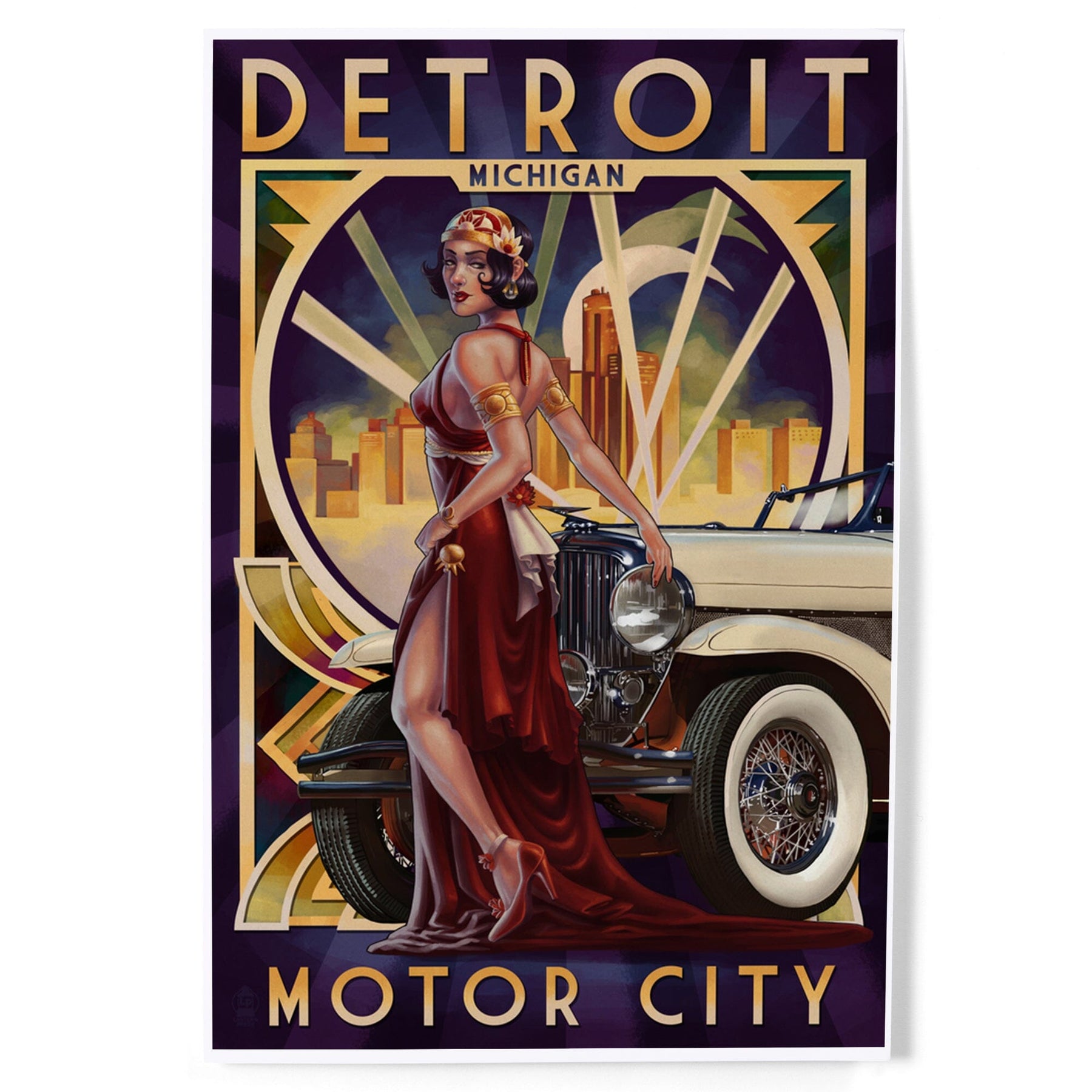 Detroit, Michigan, Deco Woman and Car, Art & Giclee Prints - Lantern Press