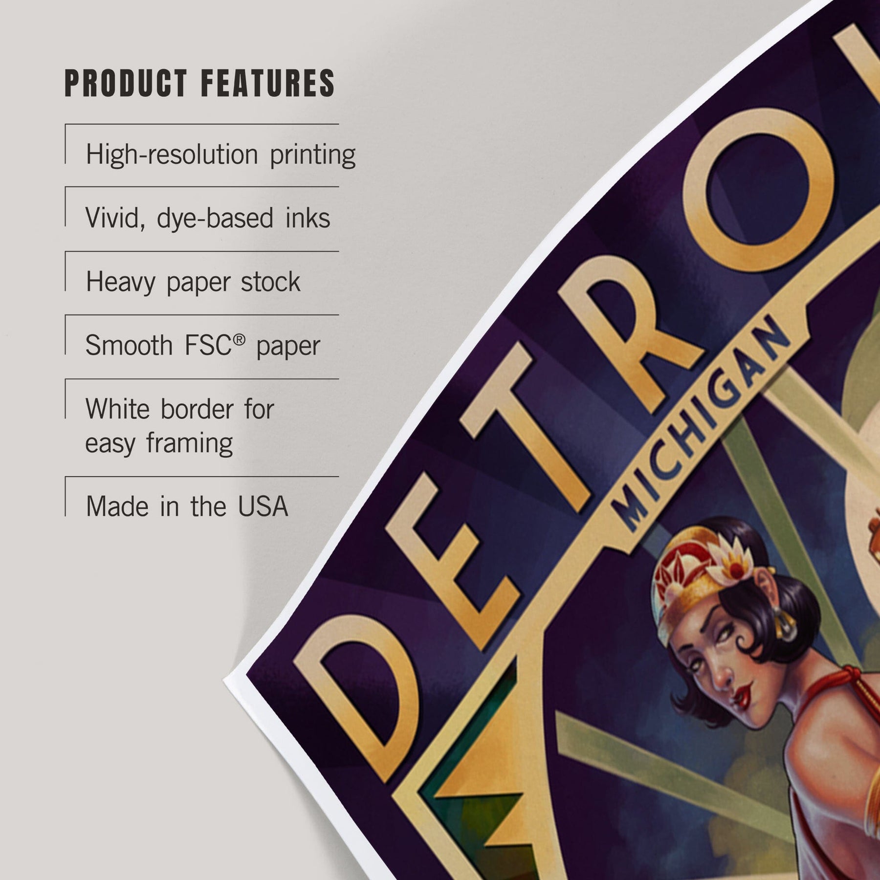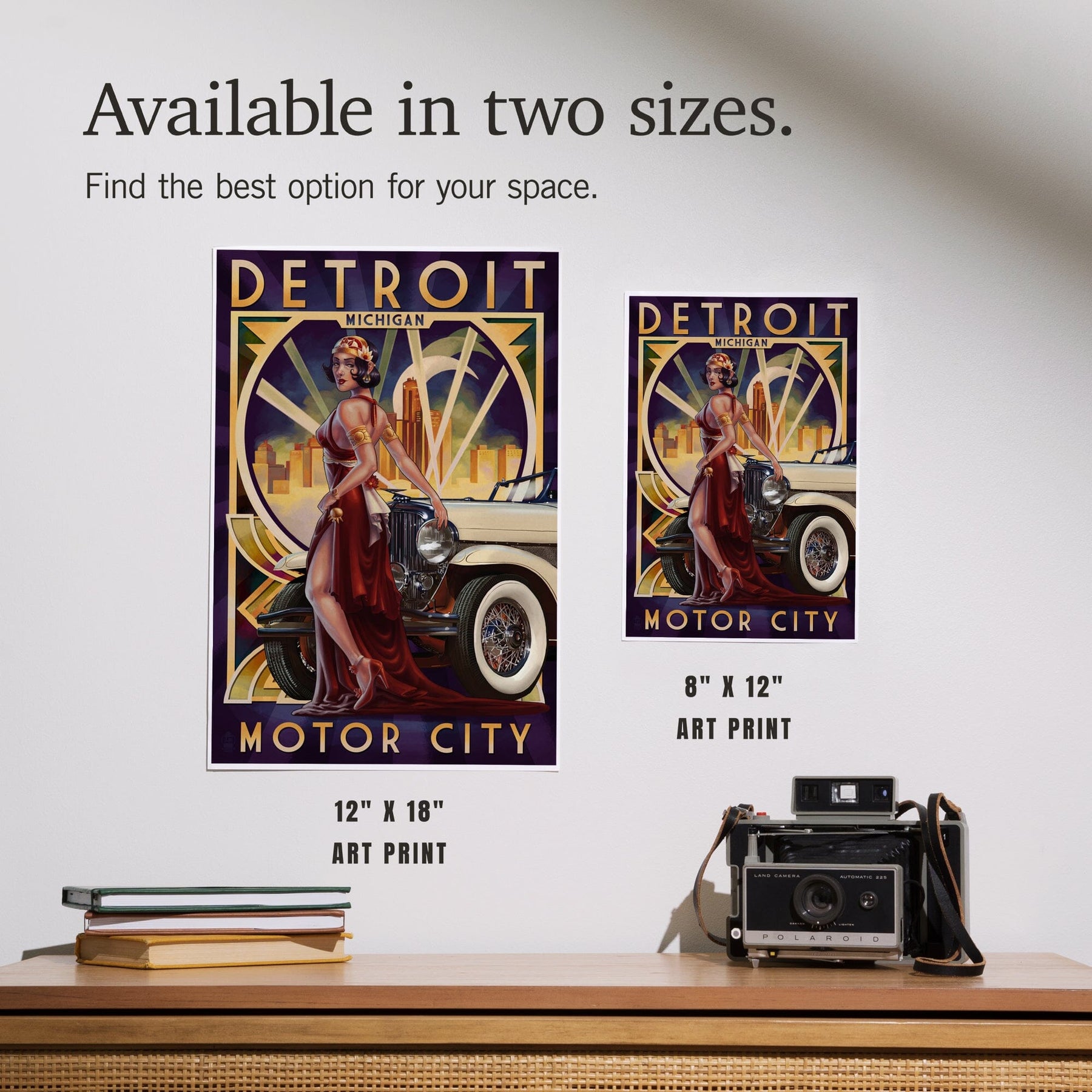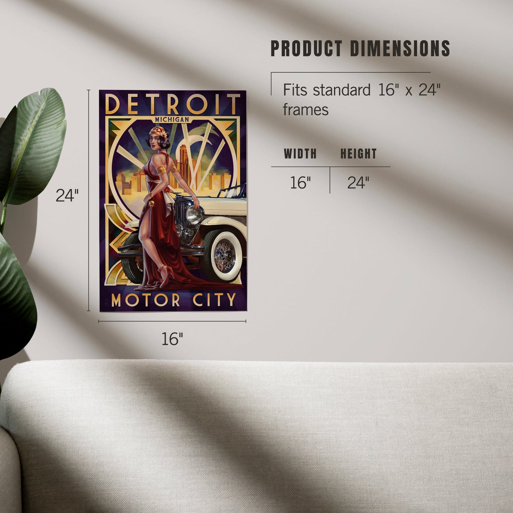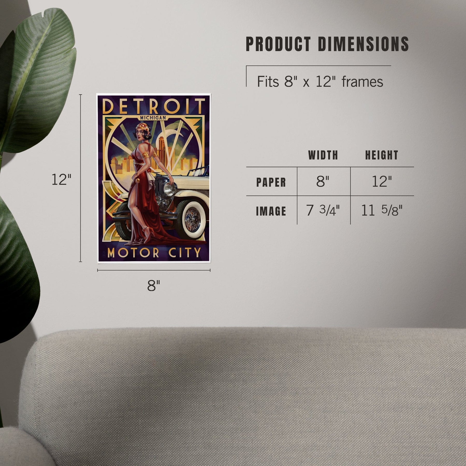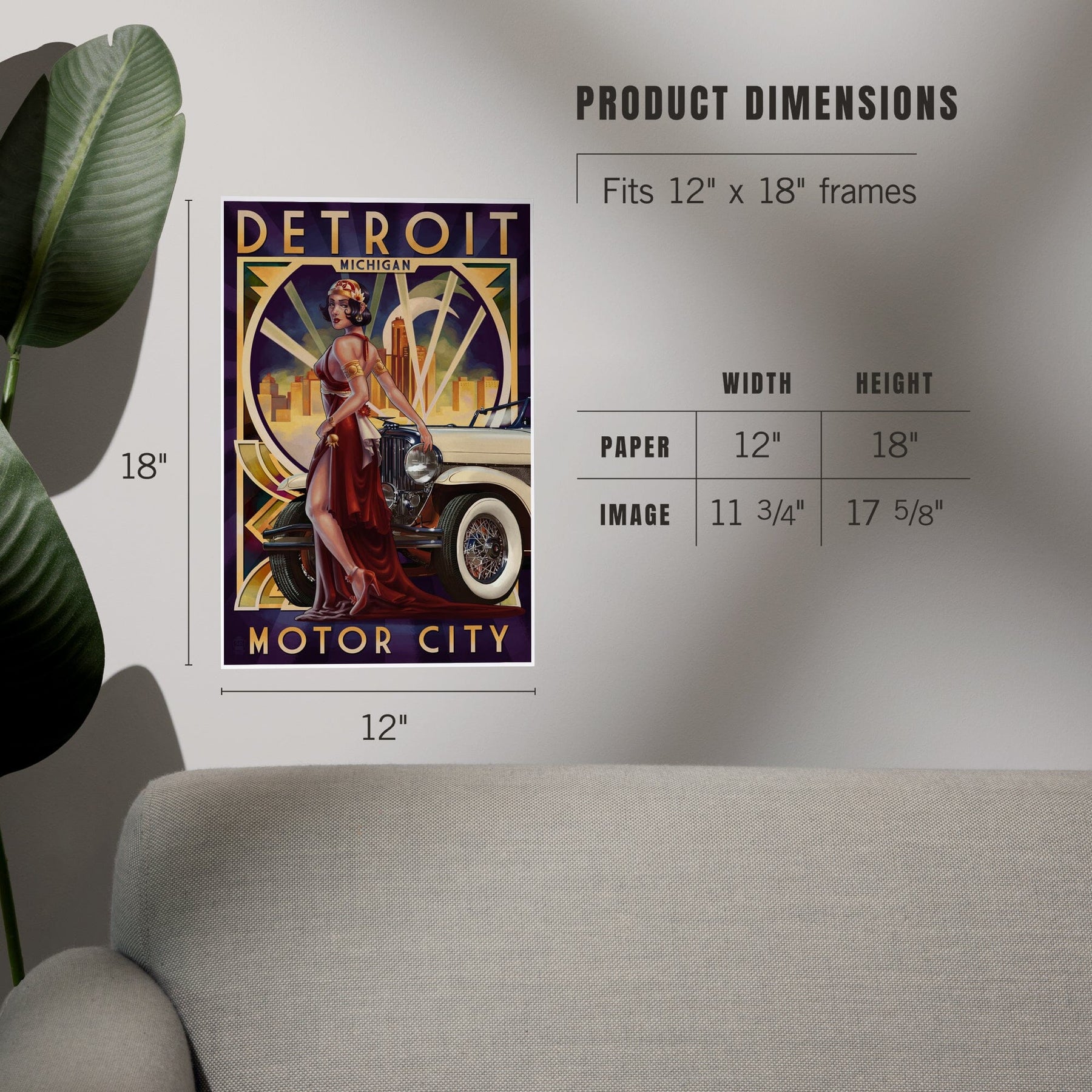 Detroit, Michigan, Deco Woman and Car, Art & Giclee Prints - Lantern Press