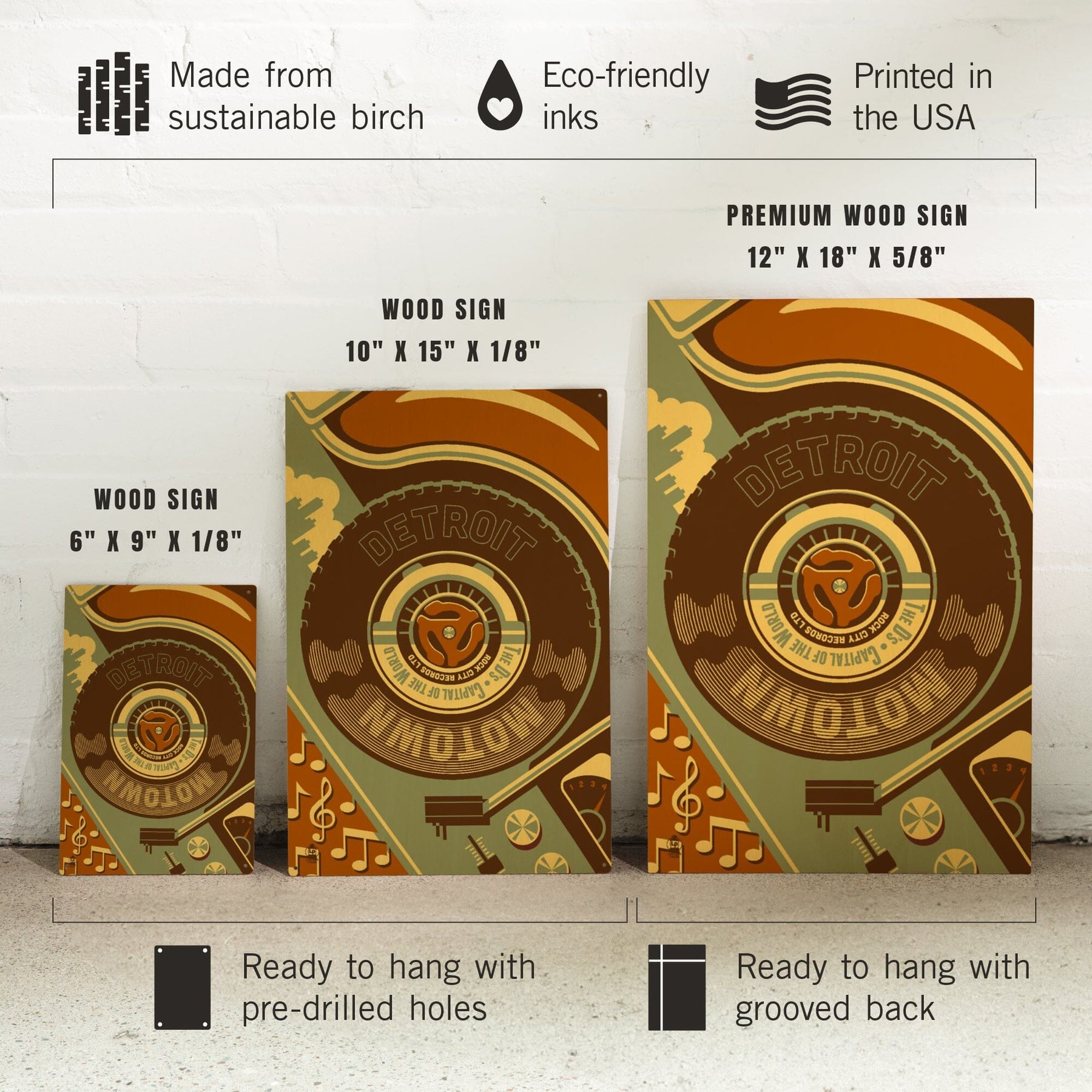 Detroit, Michigan, Motown & Motor City, Lantern Press Artwork, Wood Signs and Postcards