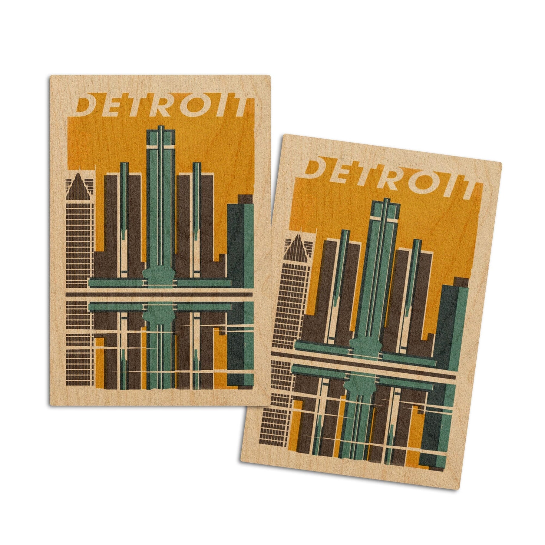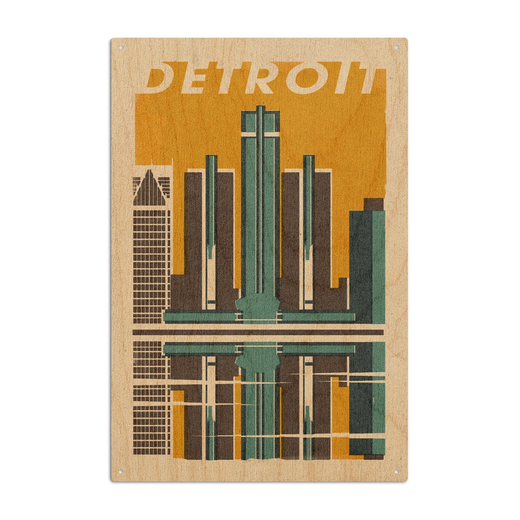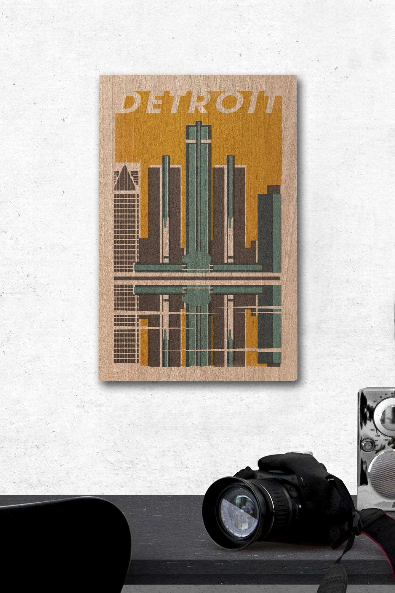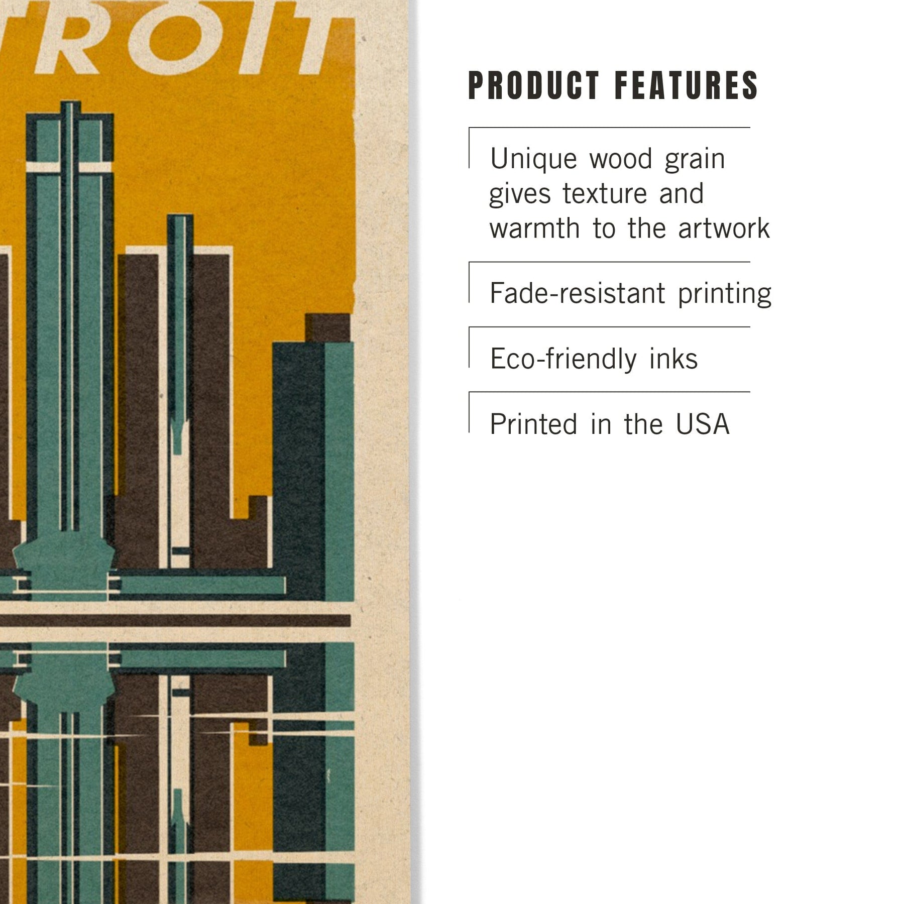 Detroit, Michigan, Woodblock, Lantern Press Artwork, Wood Signs and Postcards