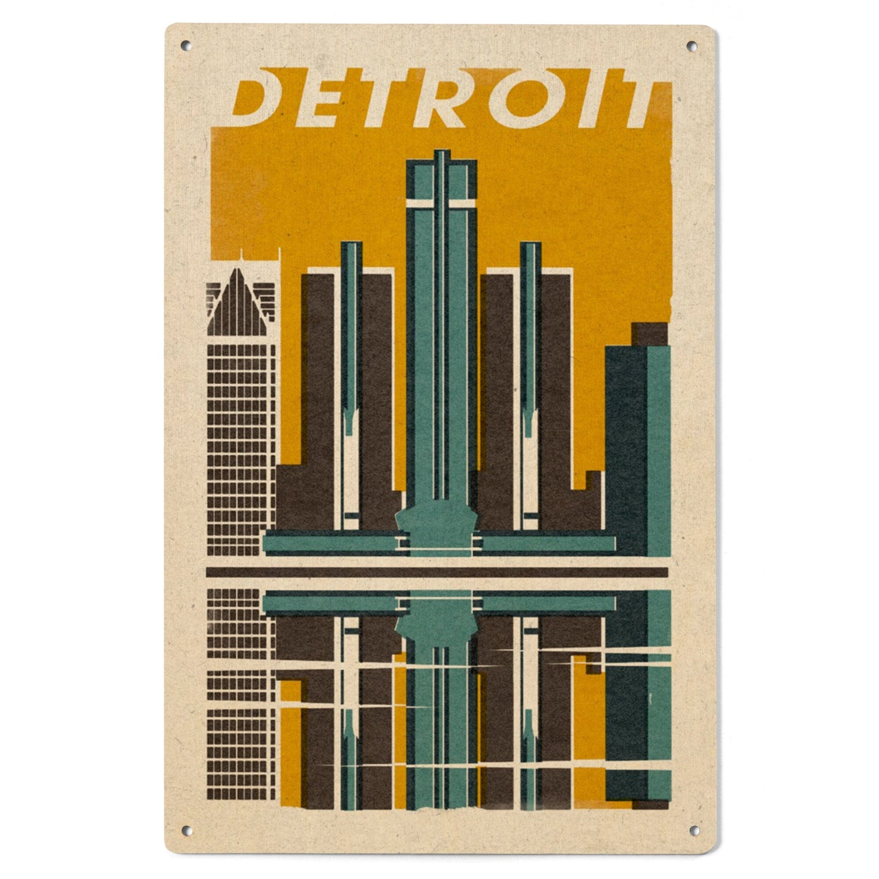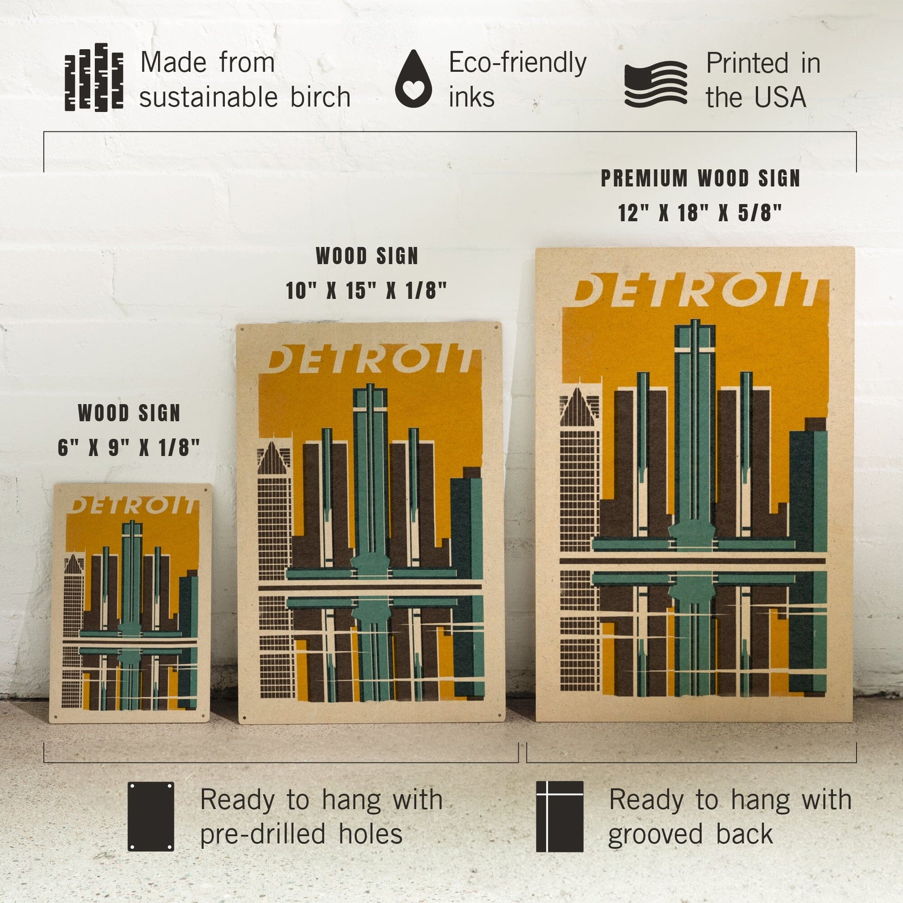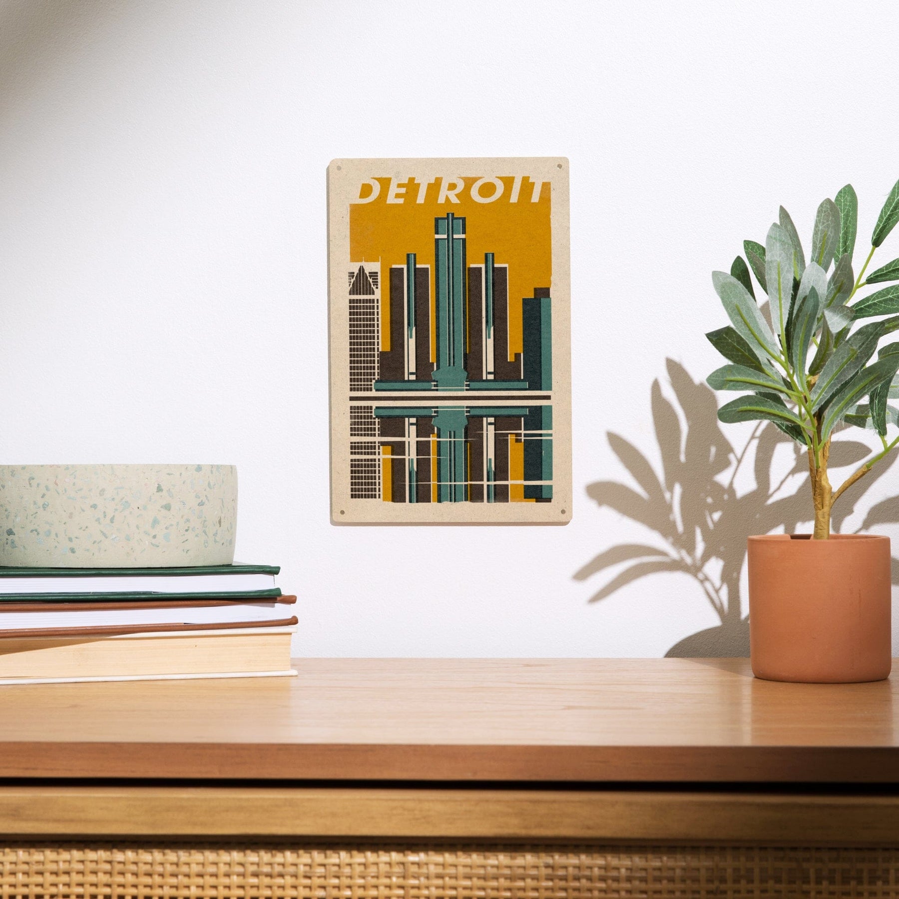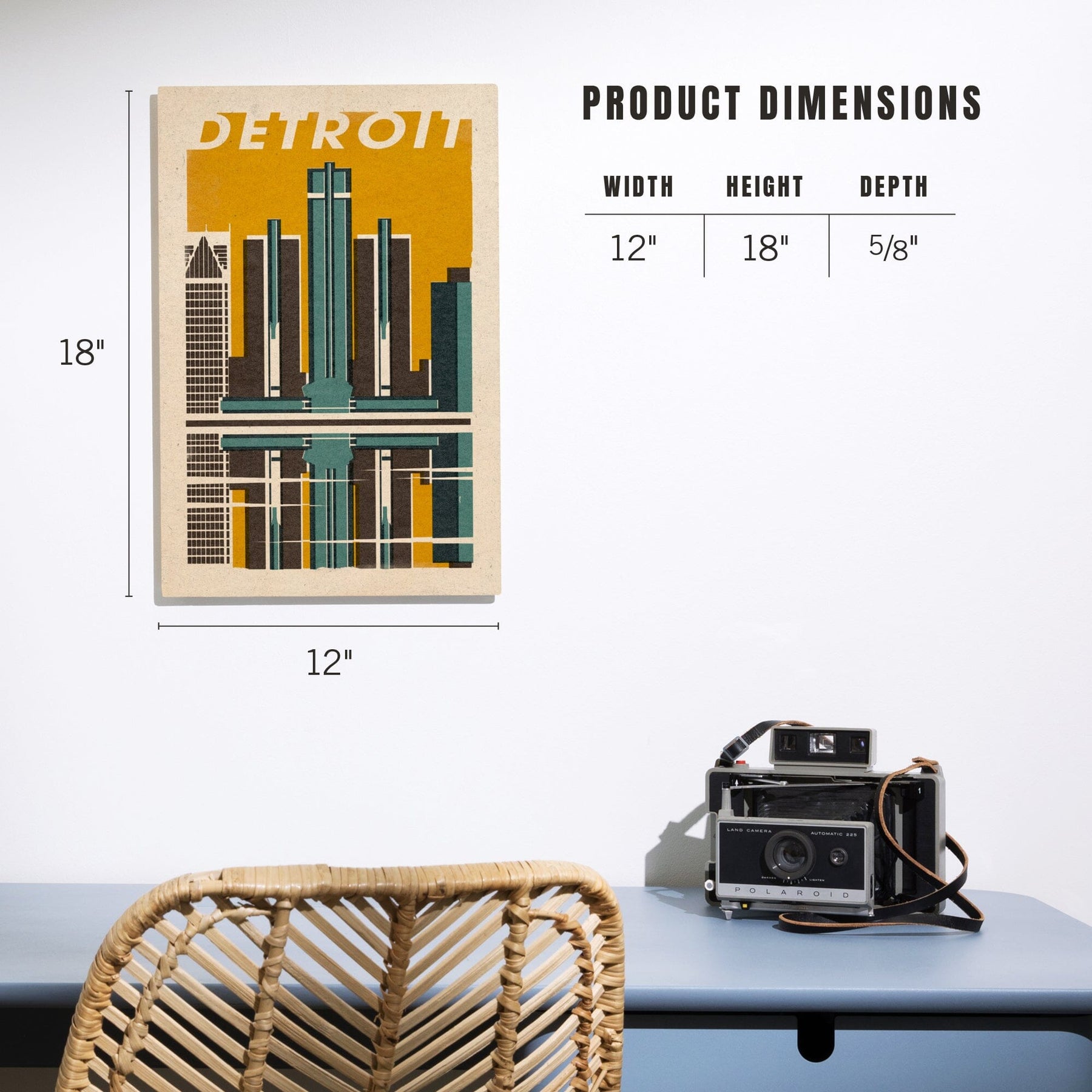 Detroit, Michigan, Woodblock, Lantern Press Artwork, Wood Signs and Postcards