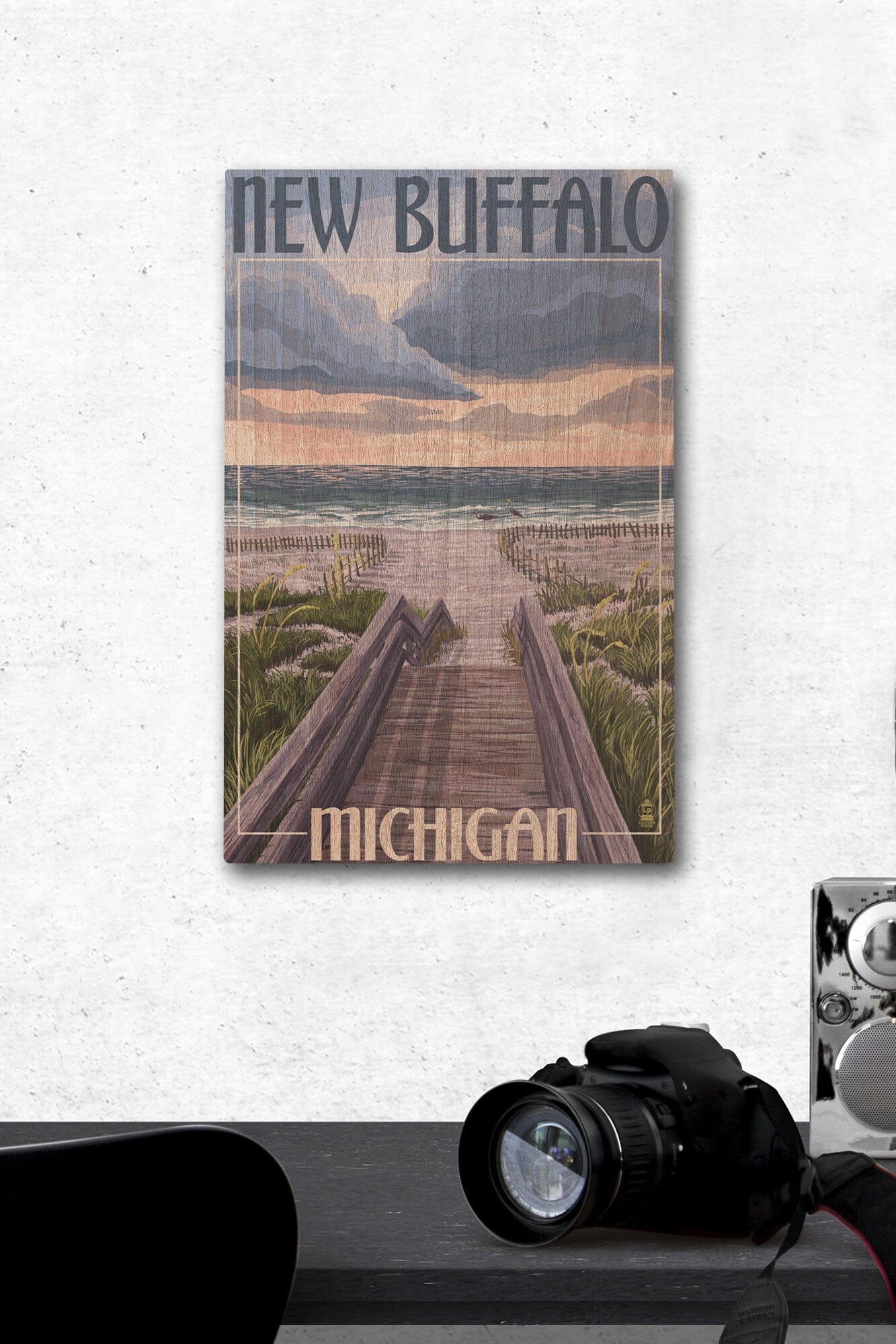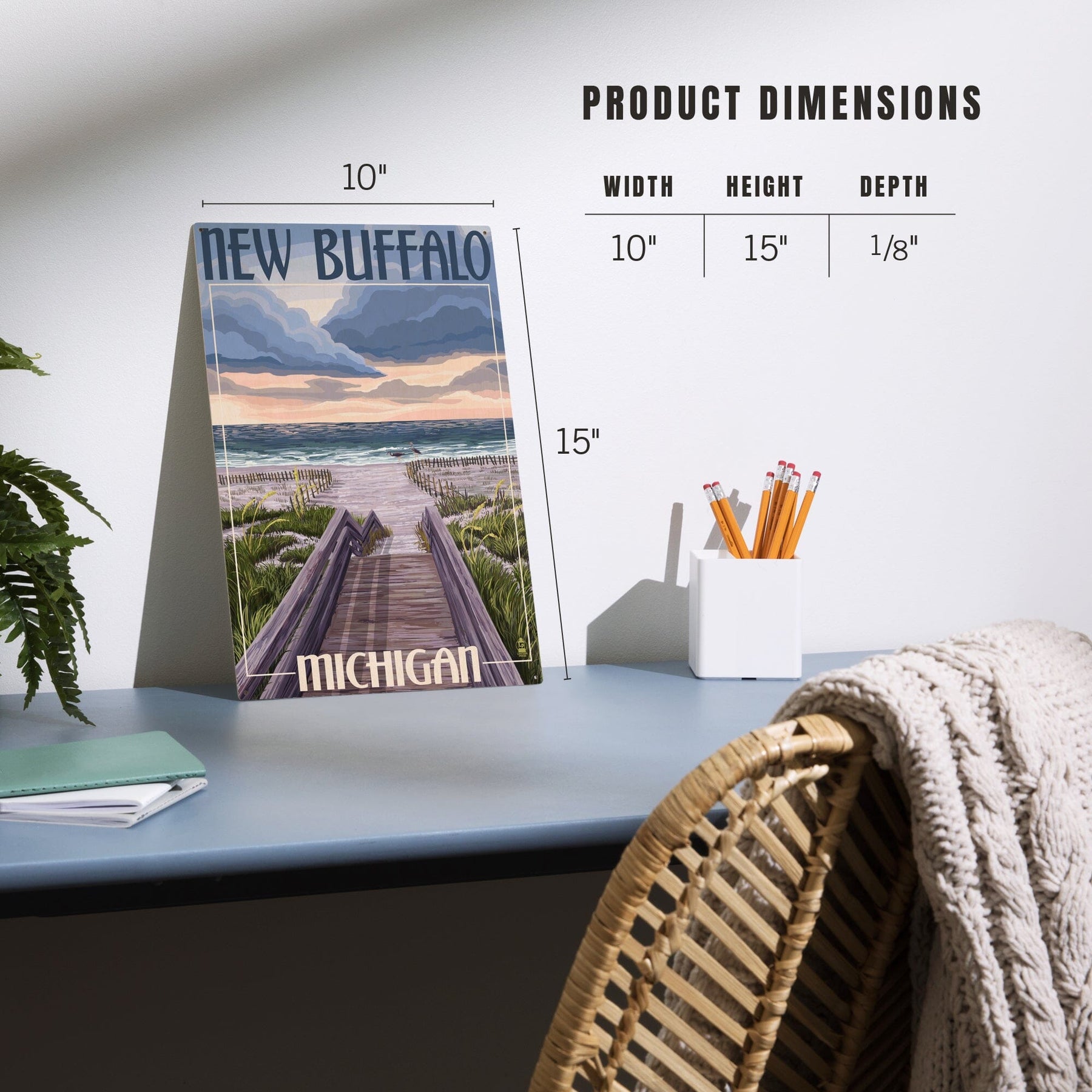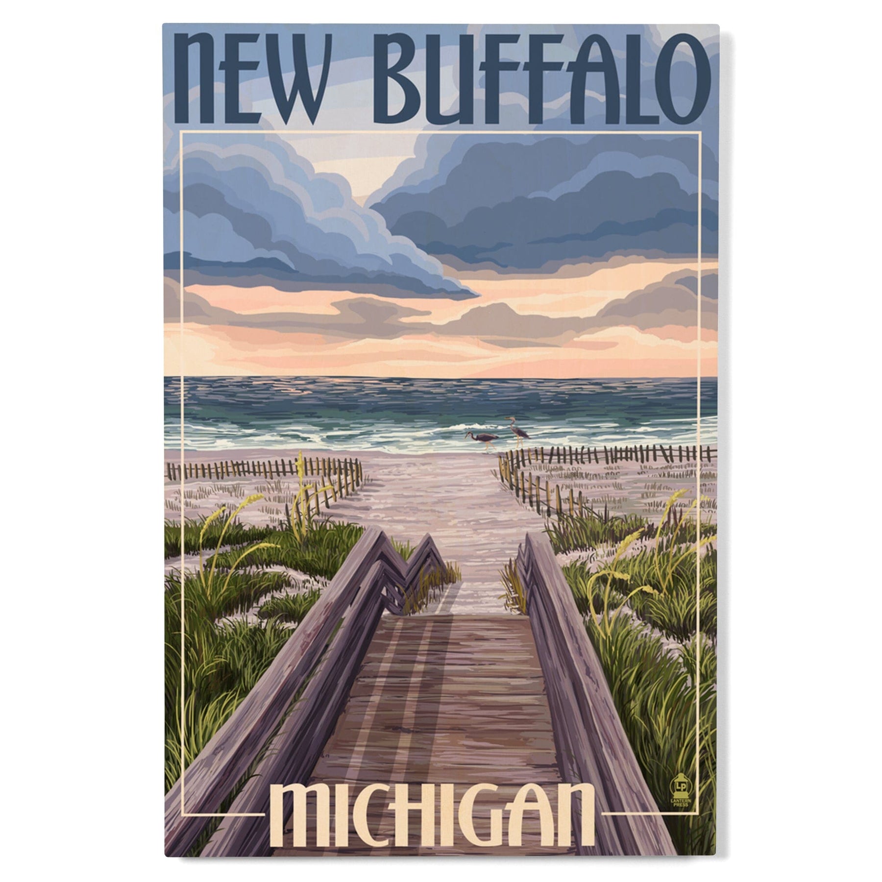 New Buffalo, Michigan, Beach Scene, Lantern Press Artwork, Wood Signs and Postcards