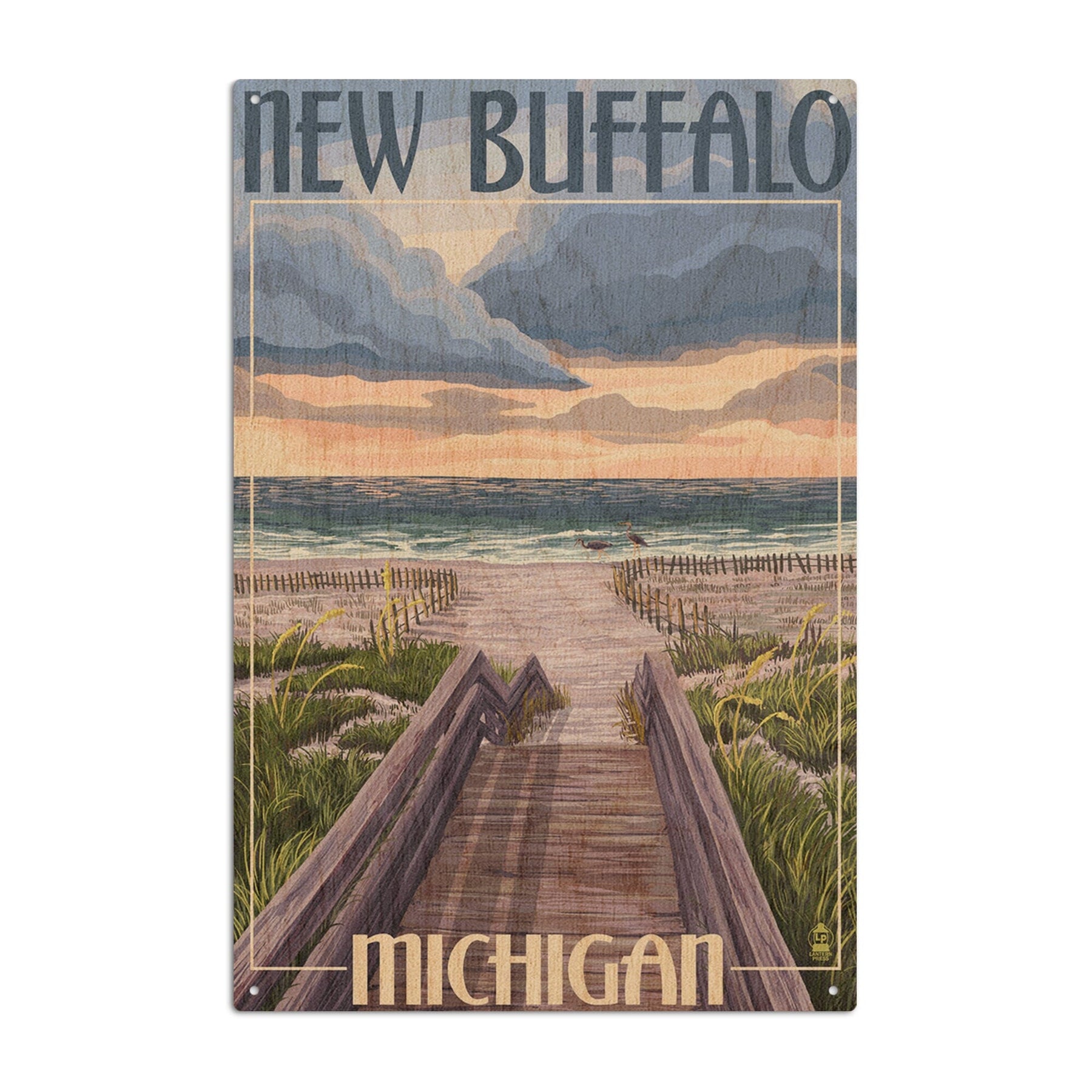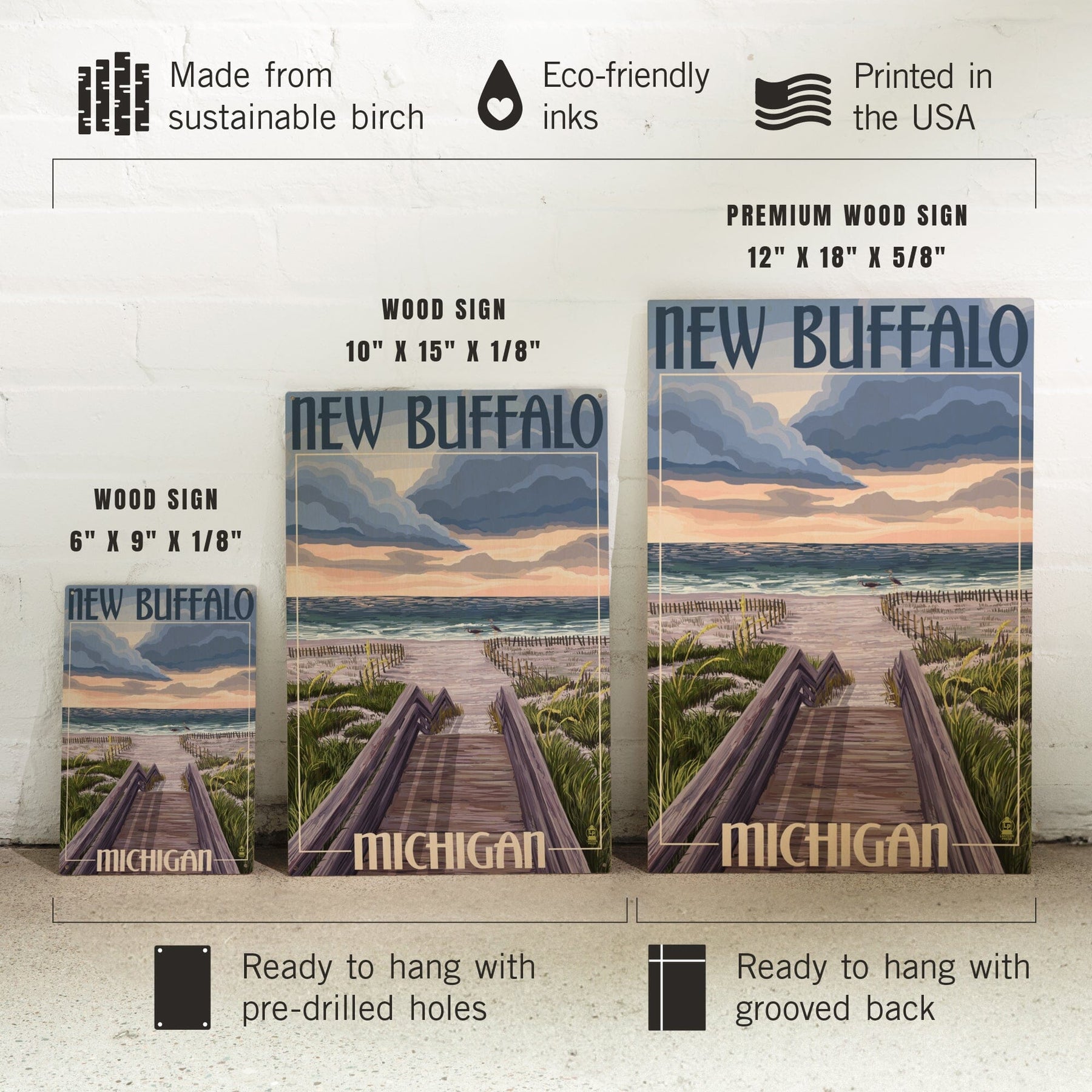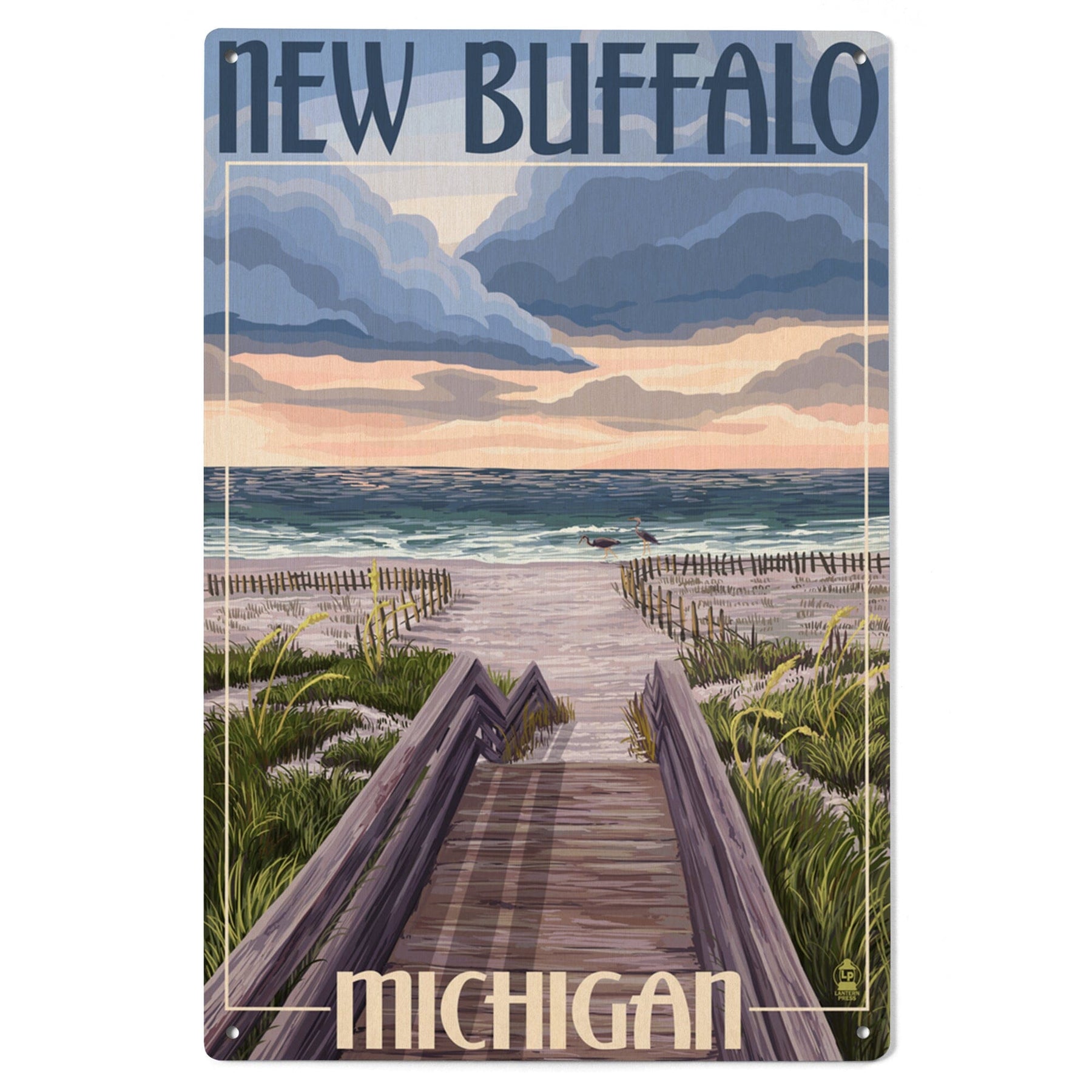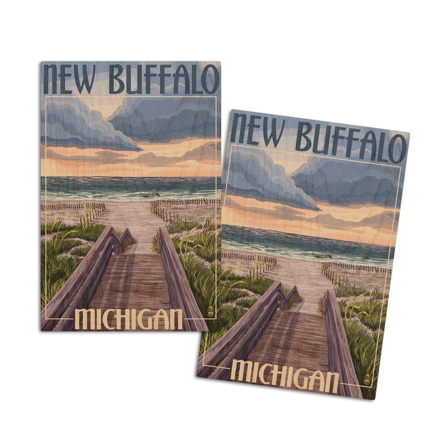 New Buffalo, Michigan, Beach Scene, Lantern Press Artwork, Wood Signs and Postcards