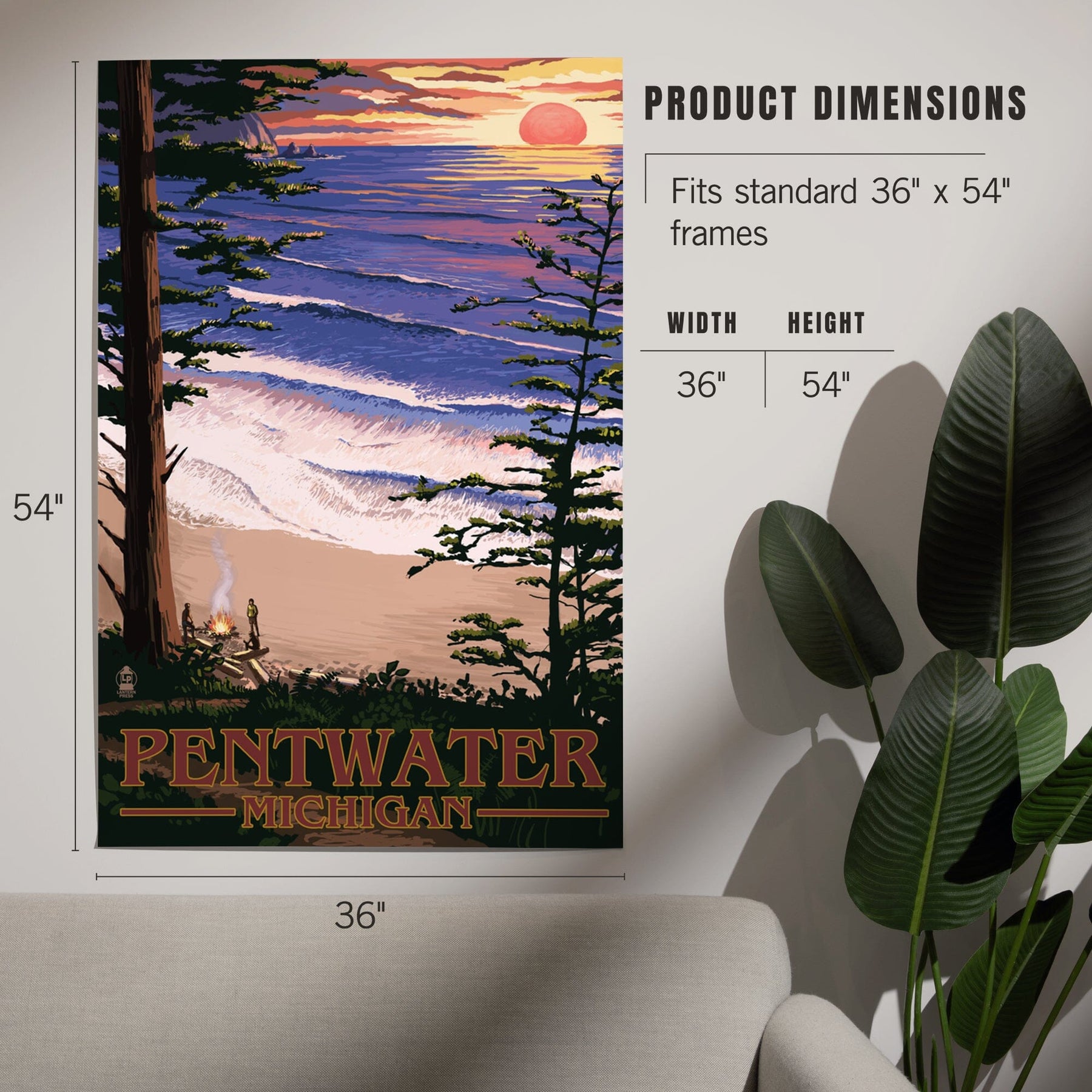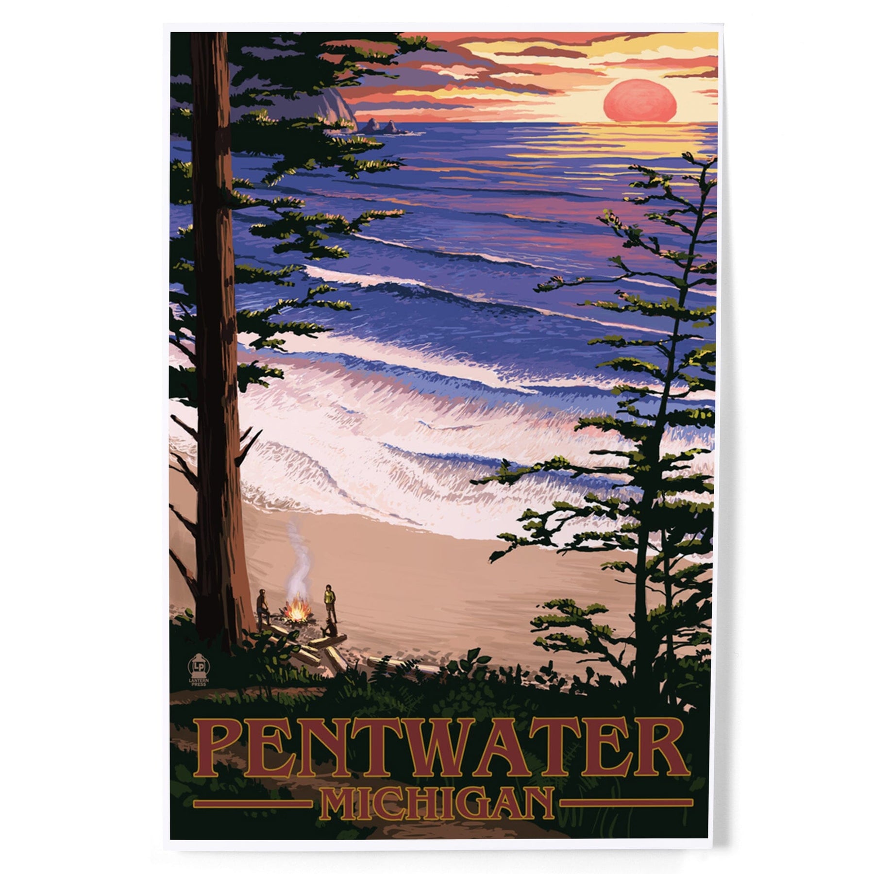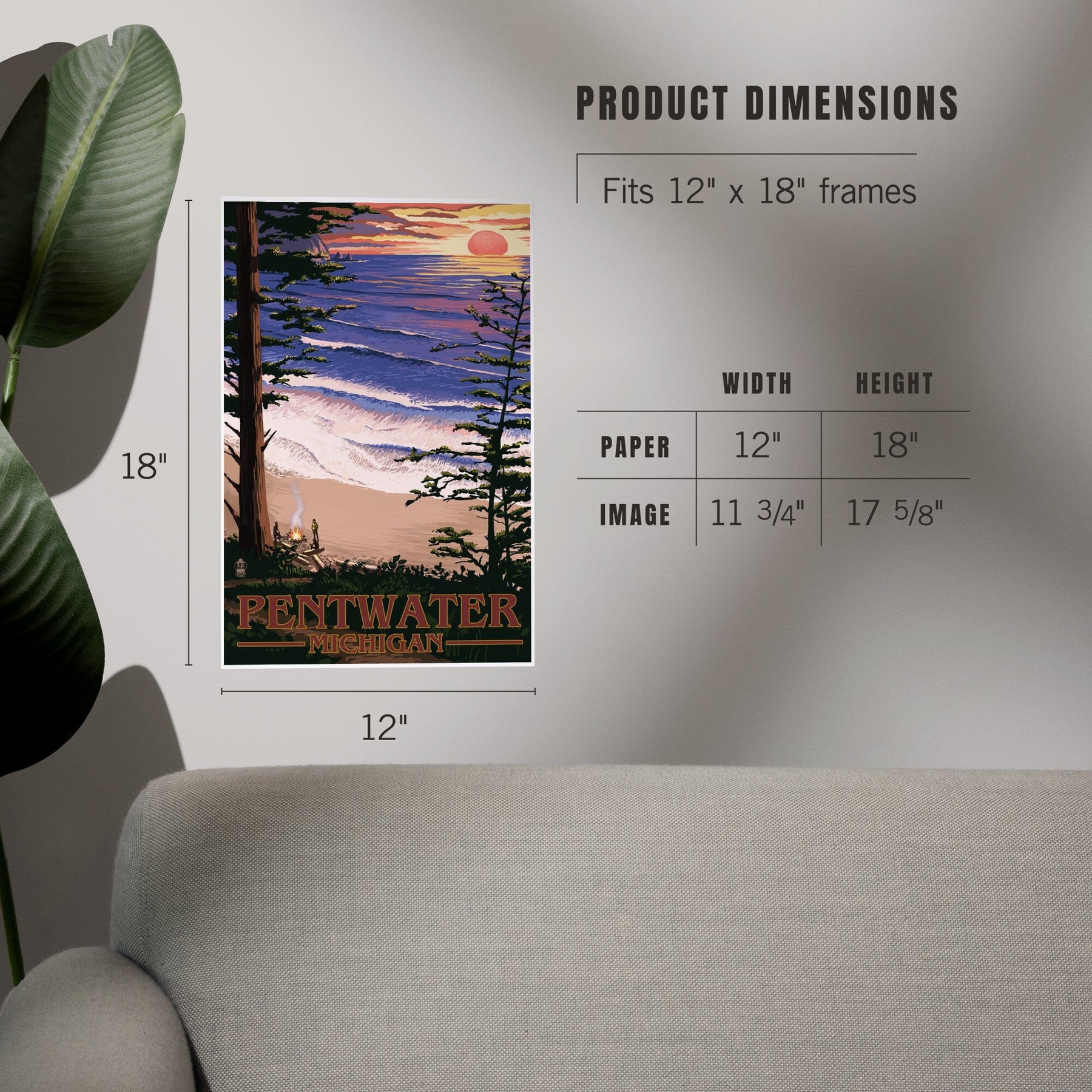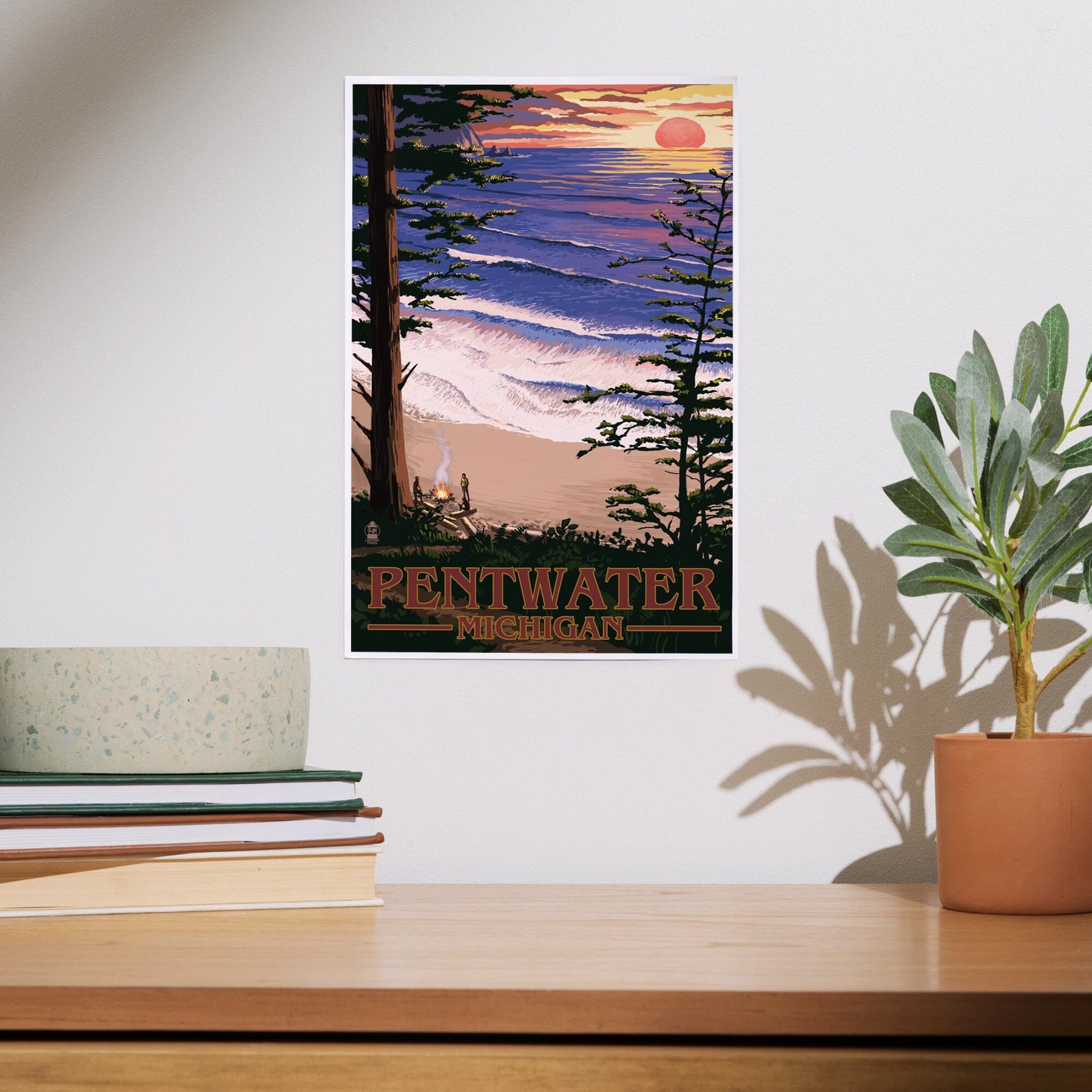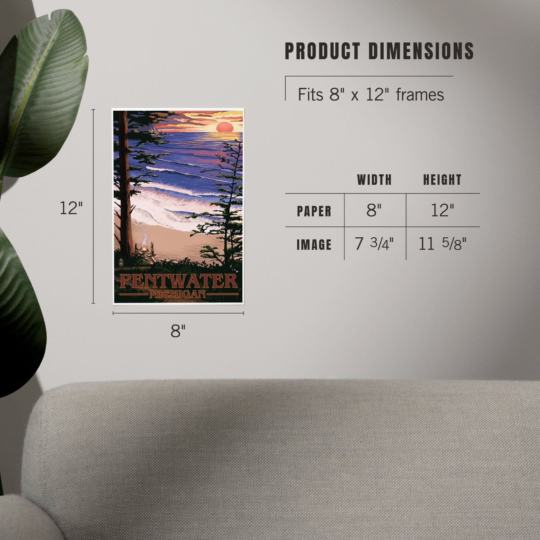 Pentwater, Michigan, Sunset on Beach, Art & Giclee Prints Art Lantern Press