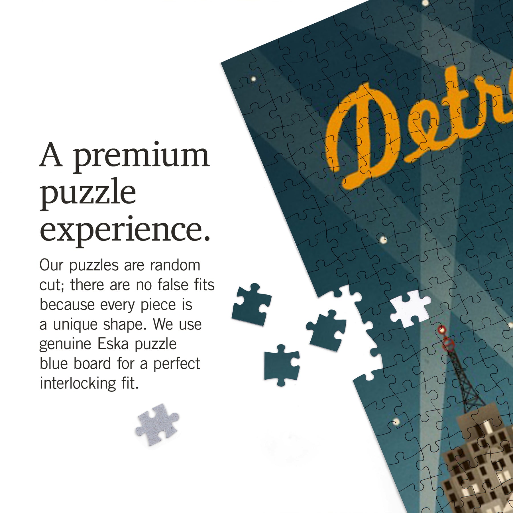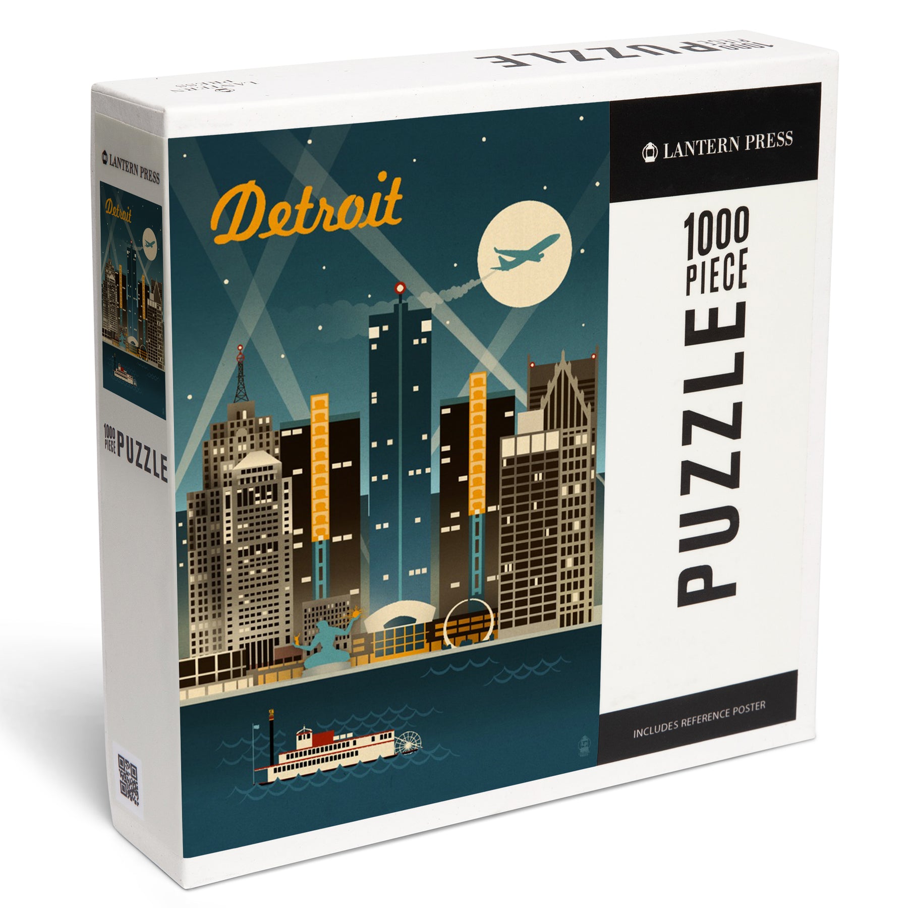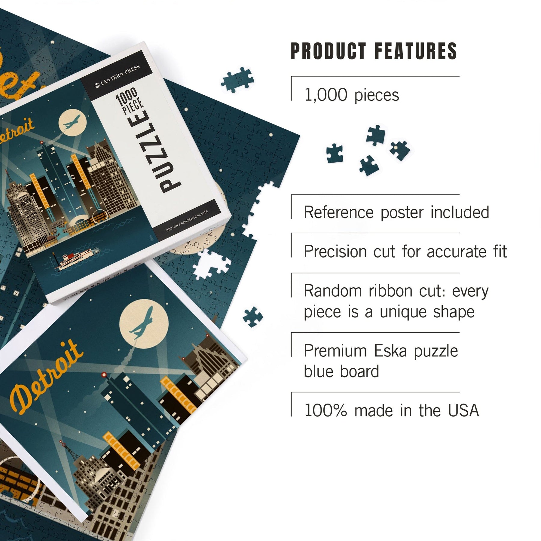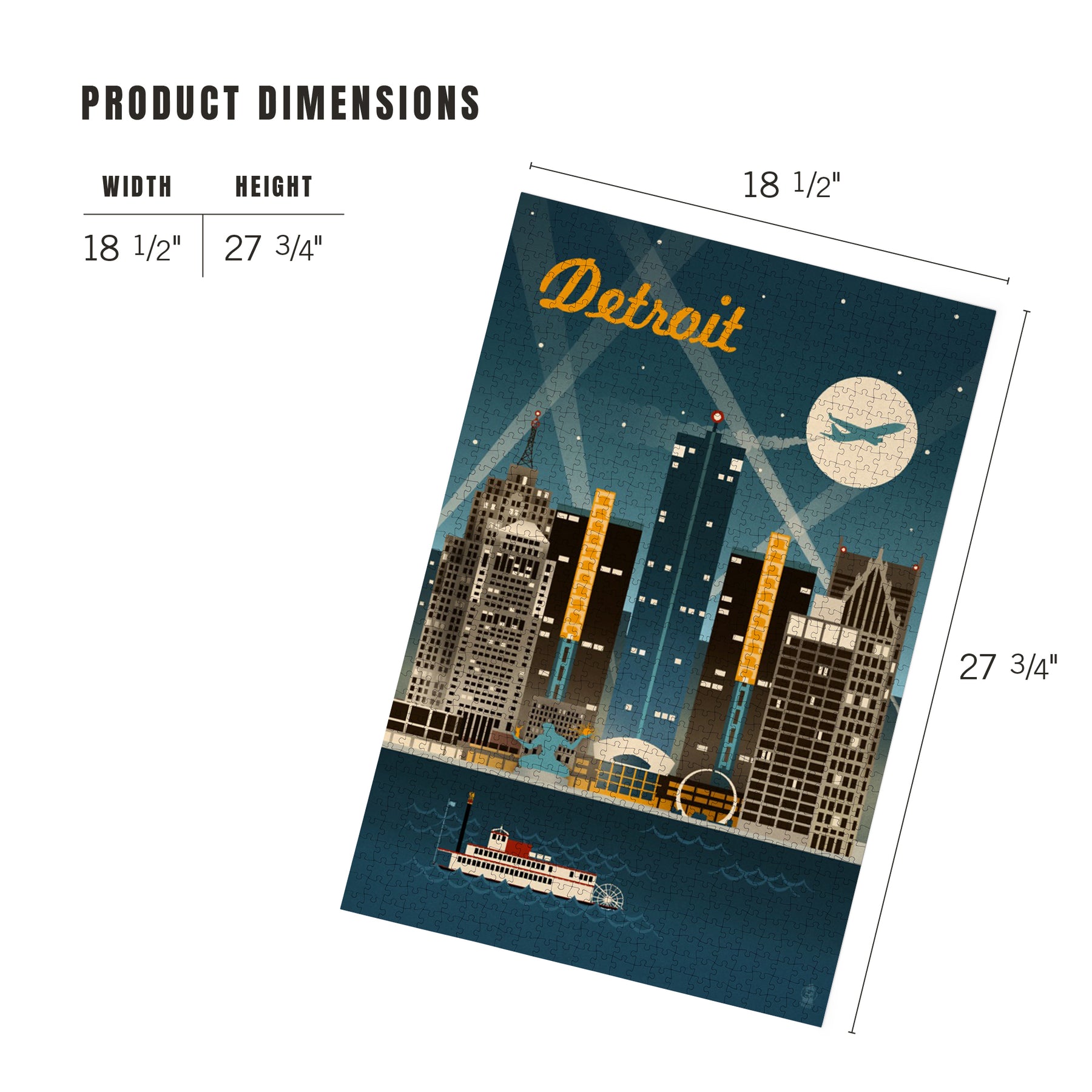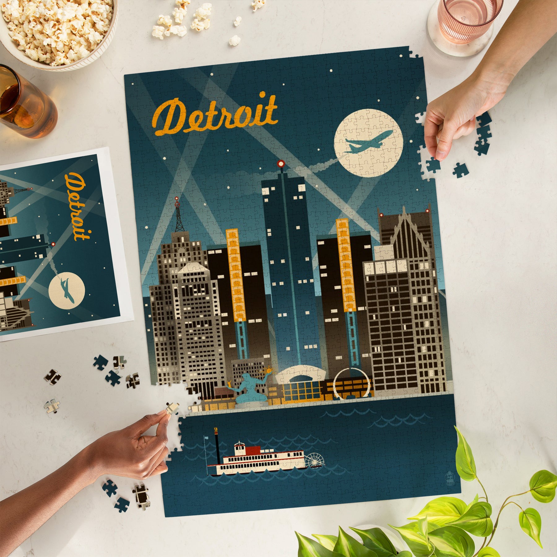 Detroit, Michigan, Retro Skyline, Jigsaw Puzzle Puzzle Lantern Press