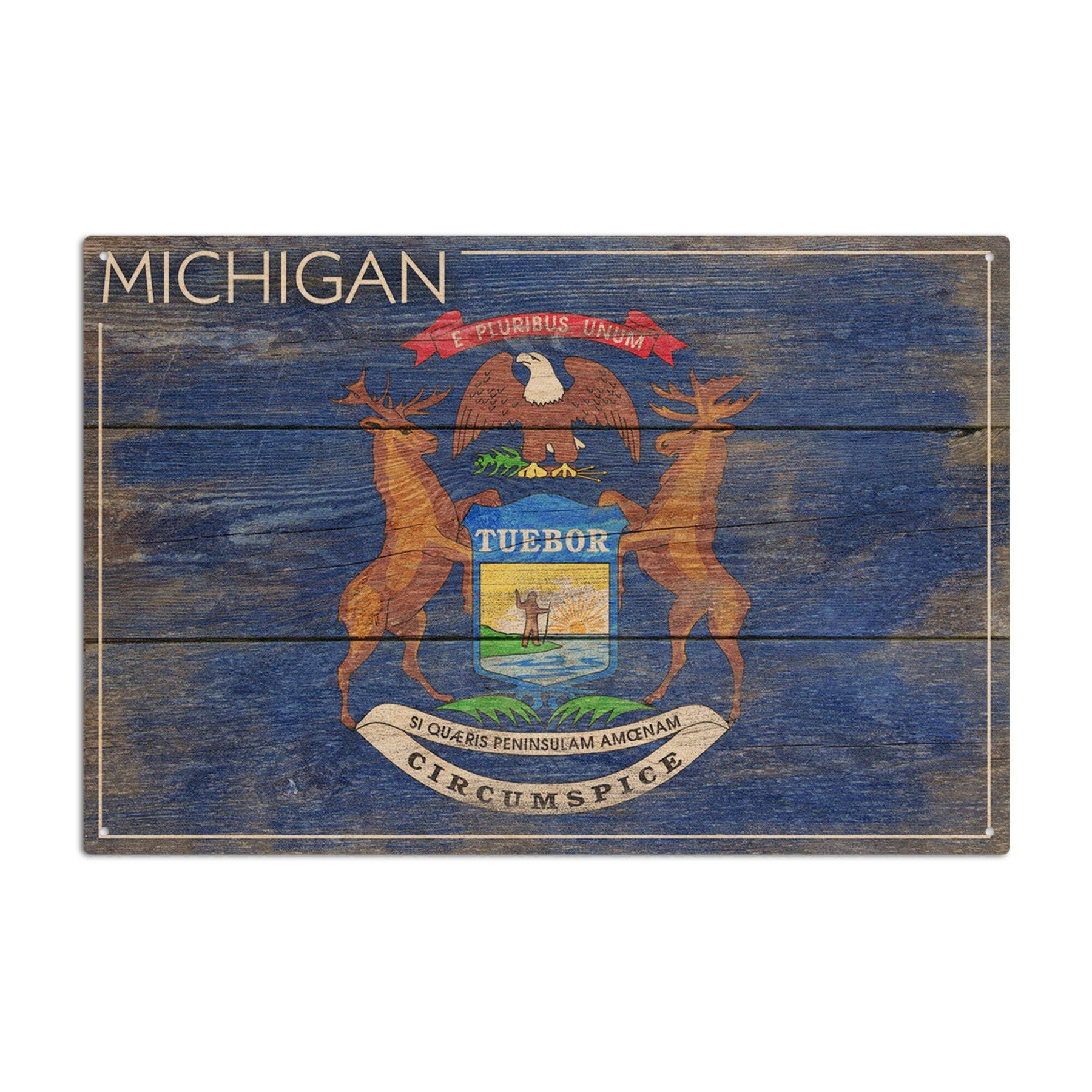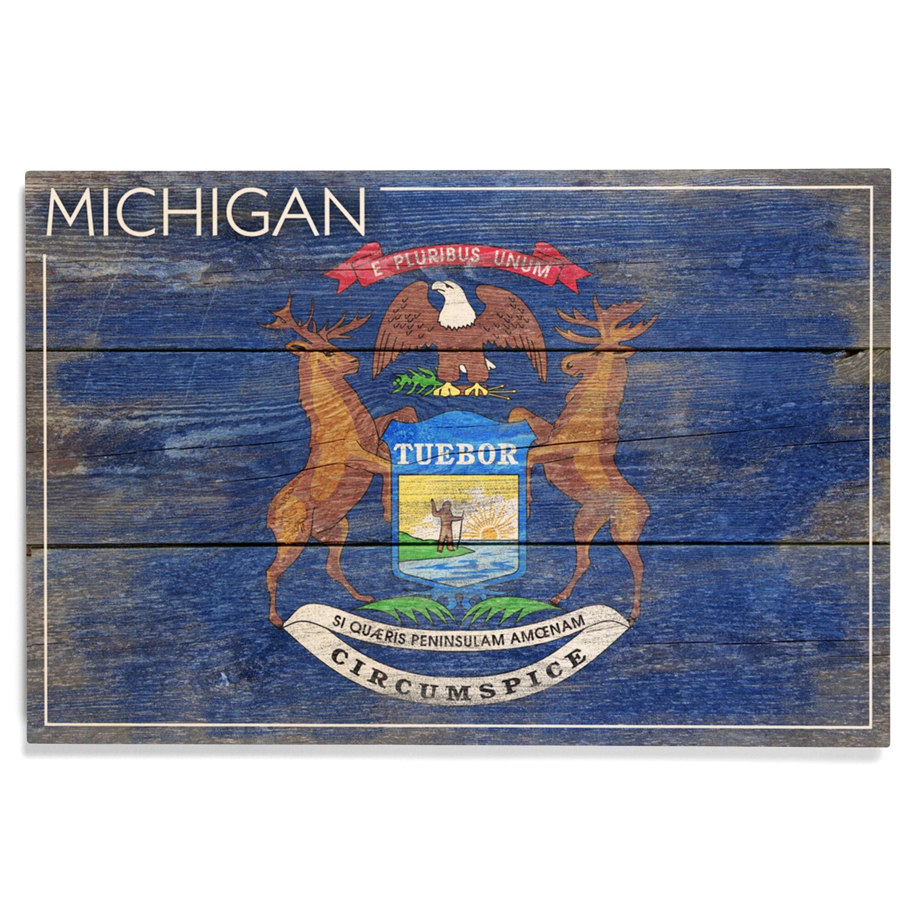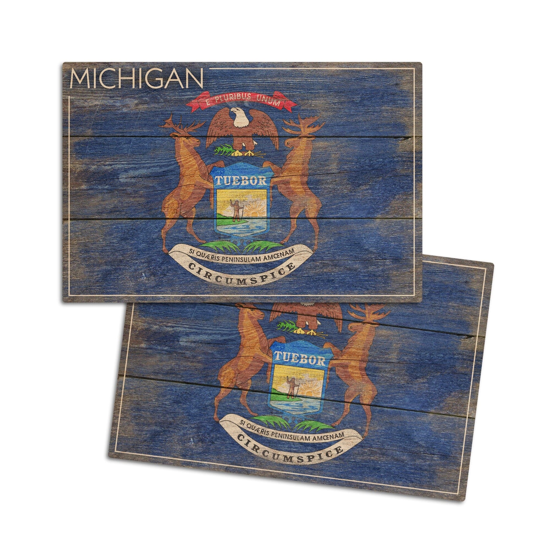 Rustic Michigan State Flag, Lantern Press Artwork, Wood Signs and Postcards