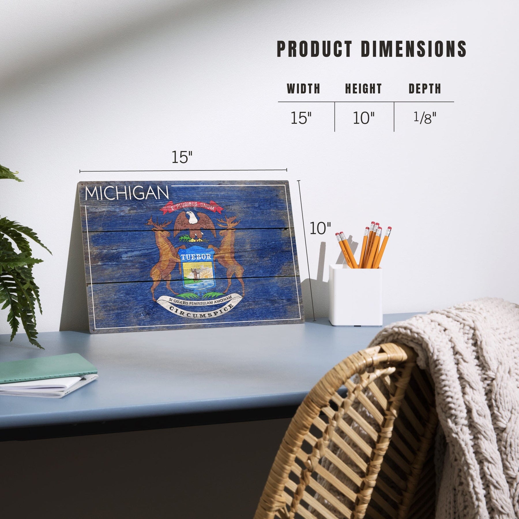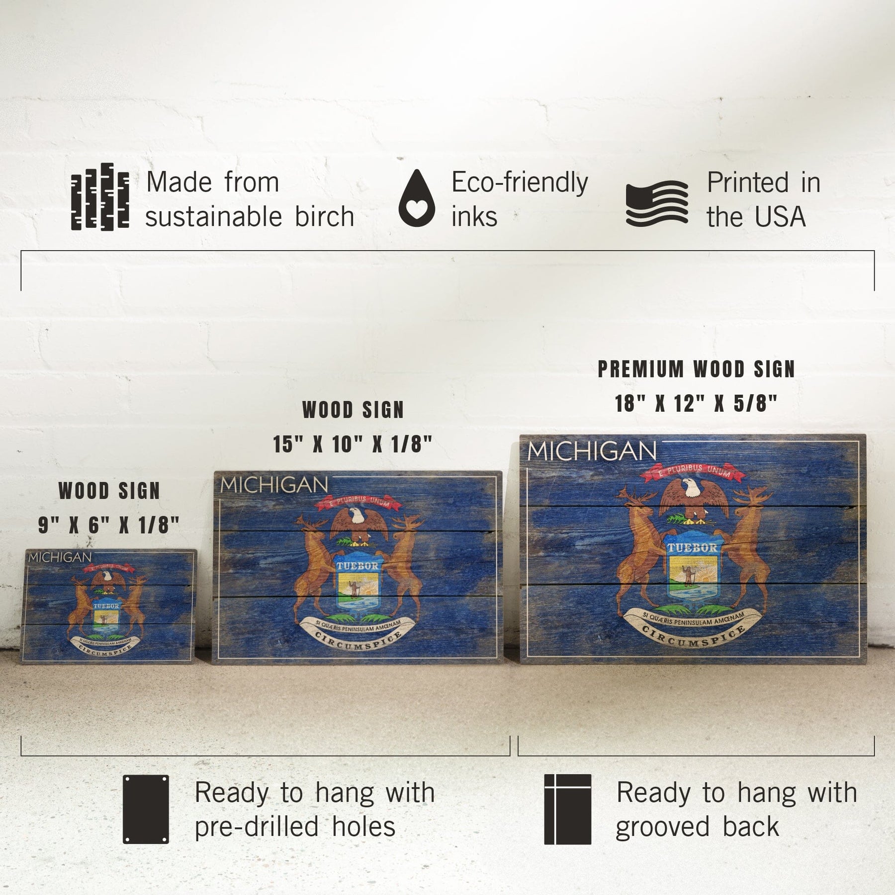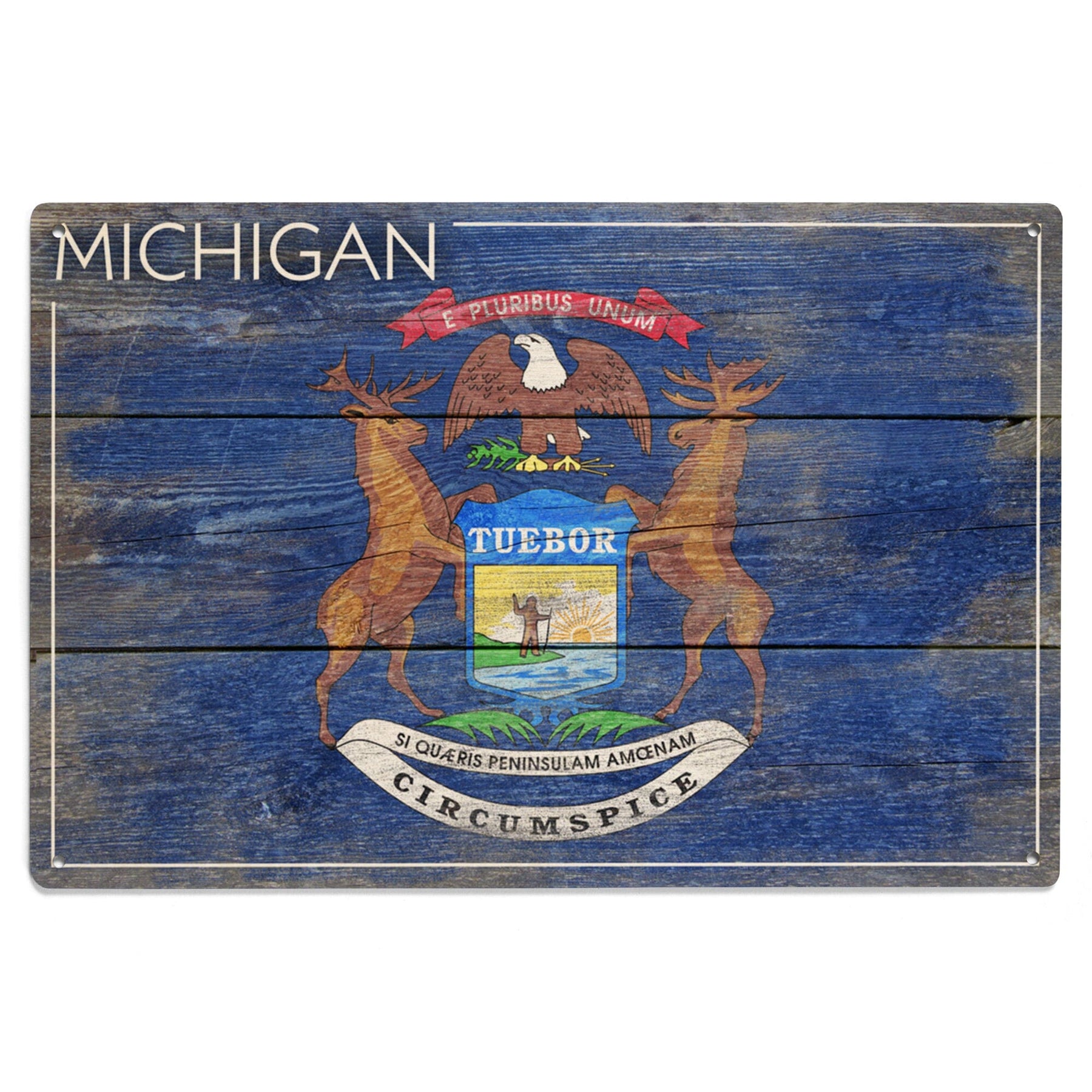 Rustic Michigan State Flag, Lantern Press Artwork, Wood Signs and Postcards