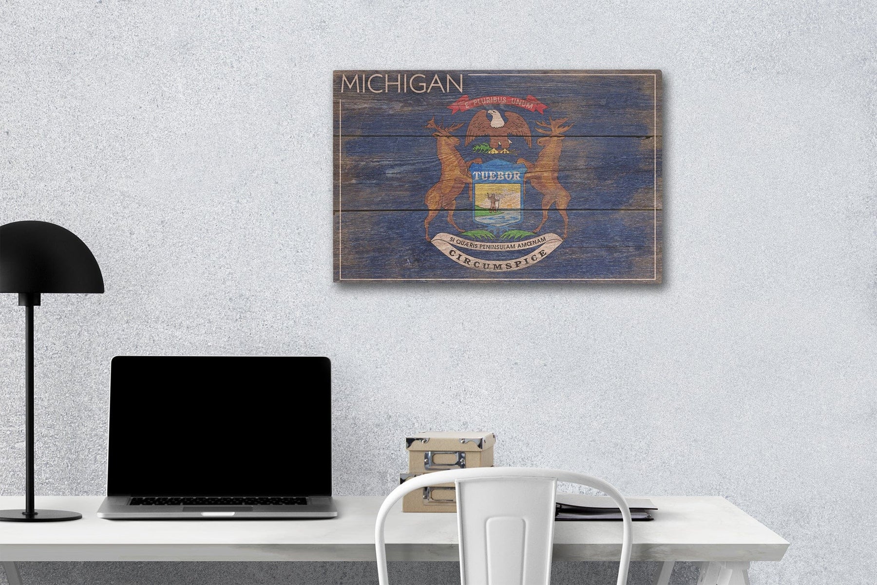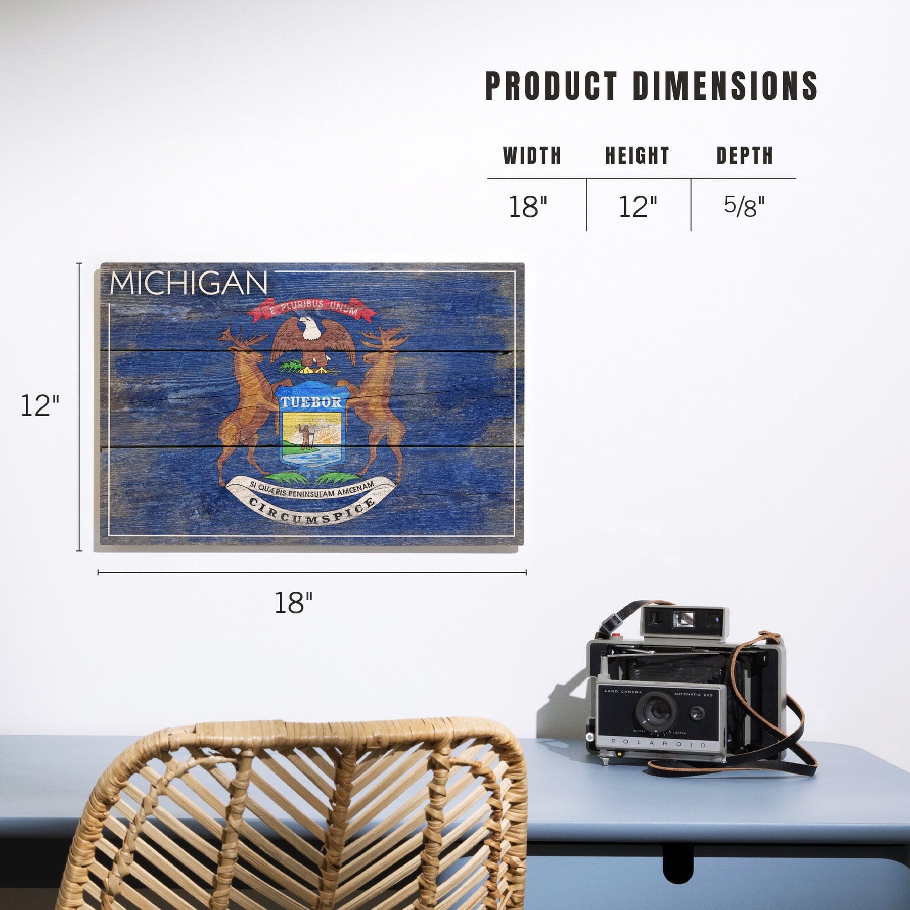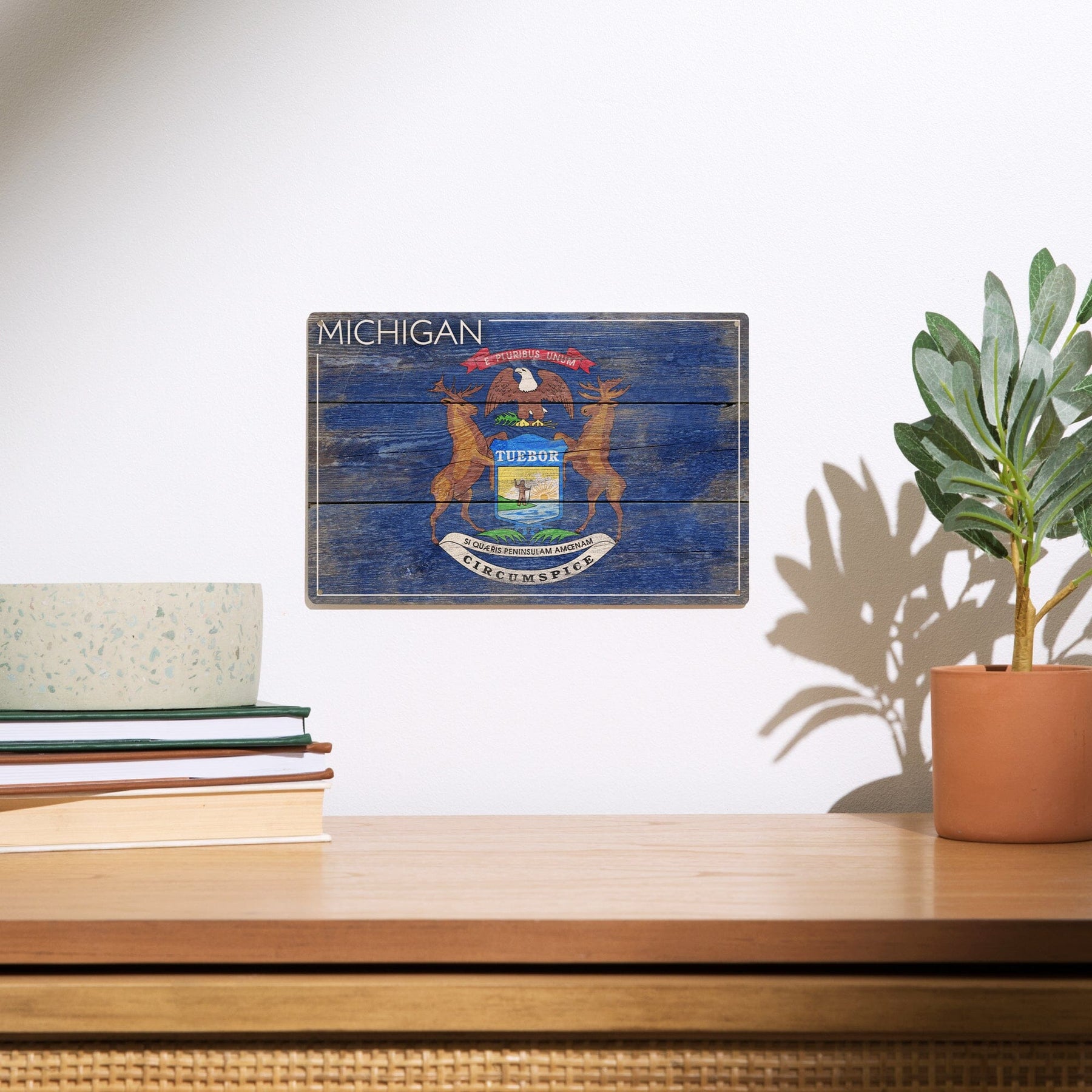 Rustic Michigan State Flag, Lantern Press Artwork, Wood Signs and Postcards Wood Lantern Press