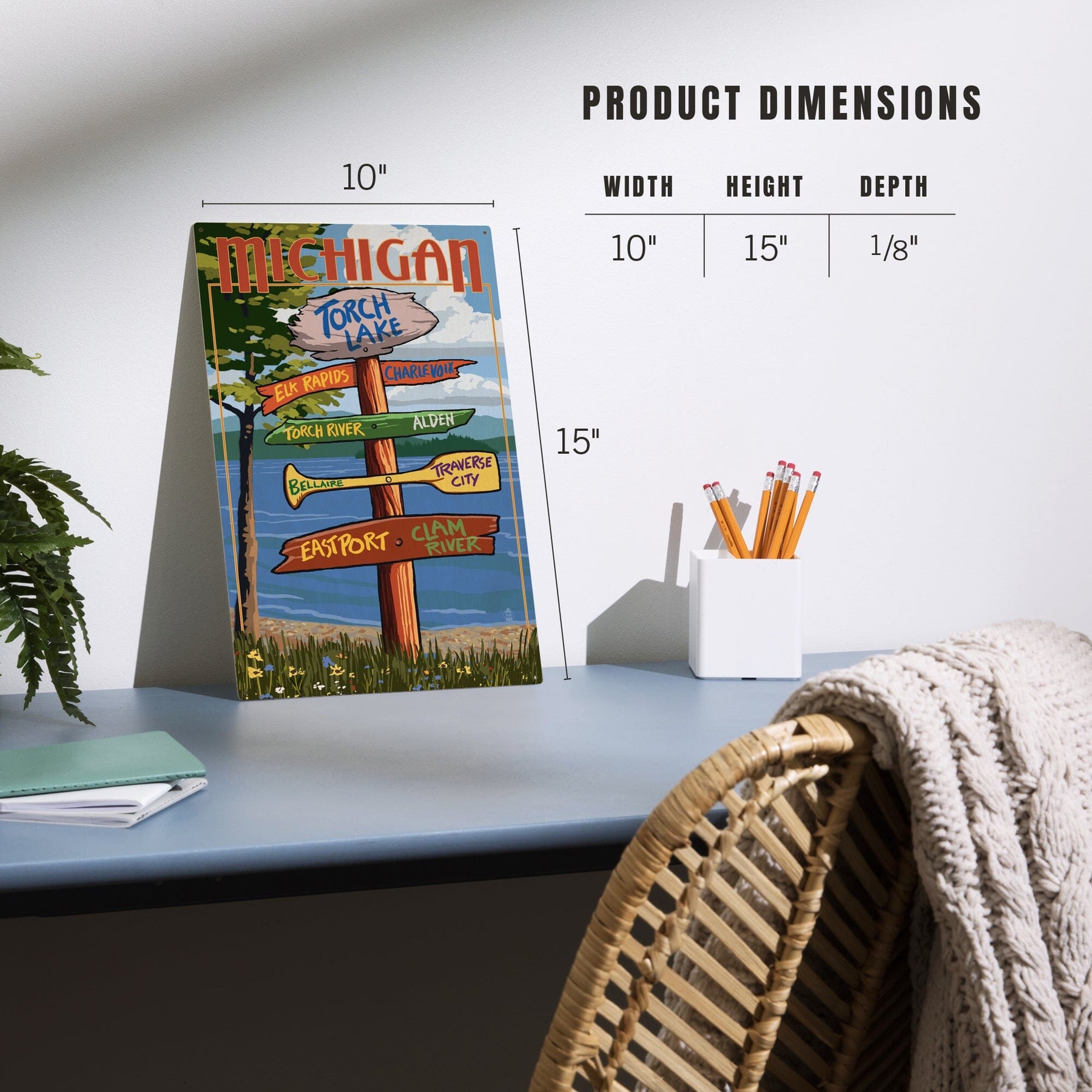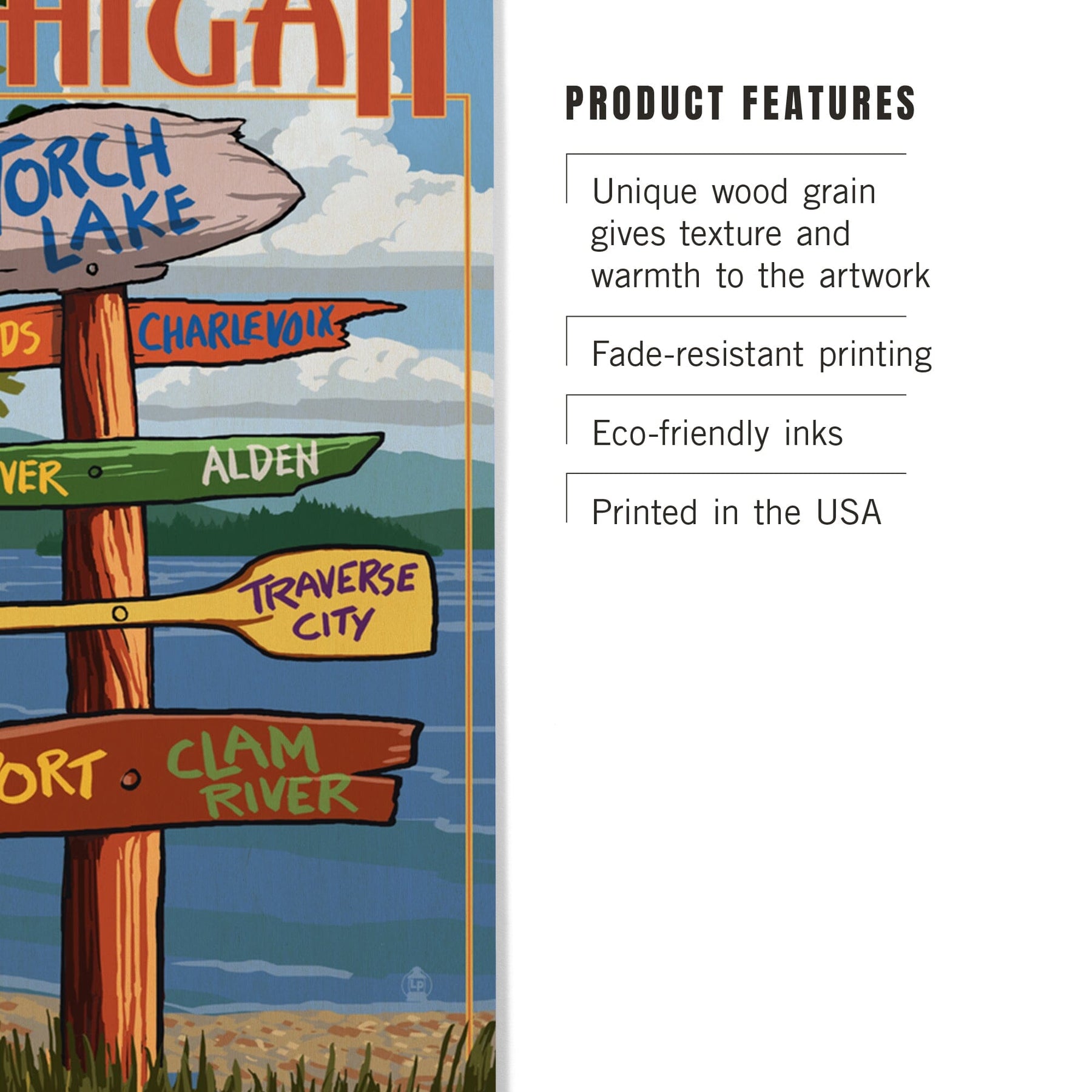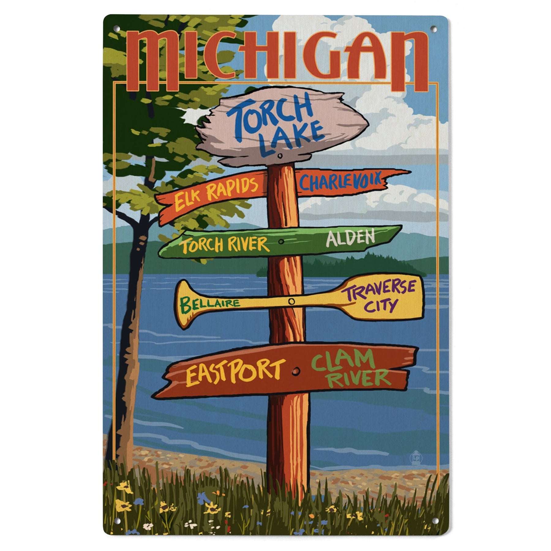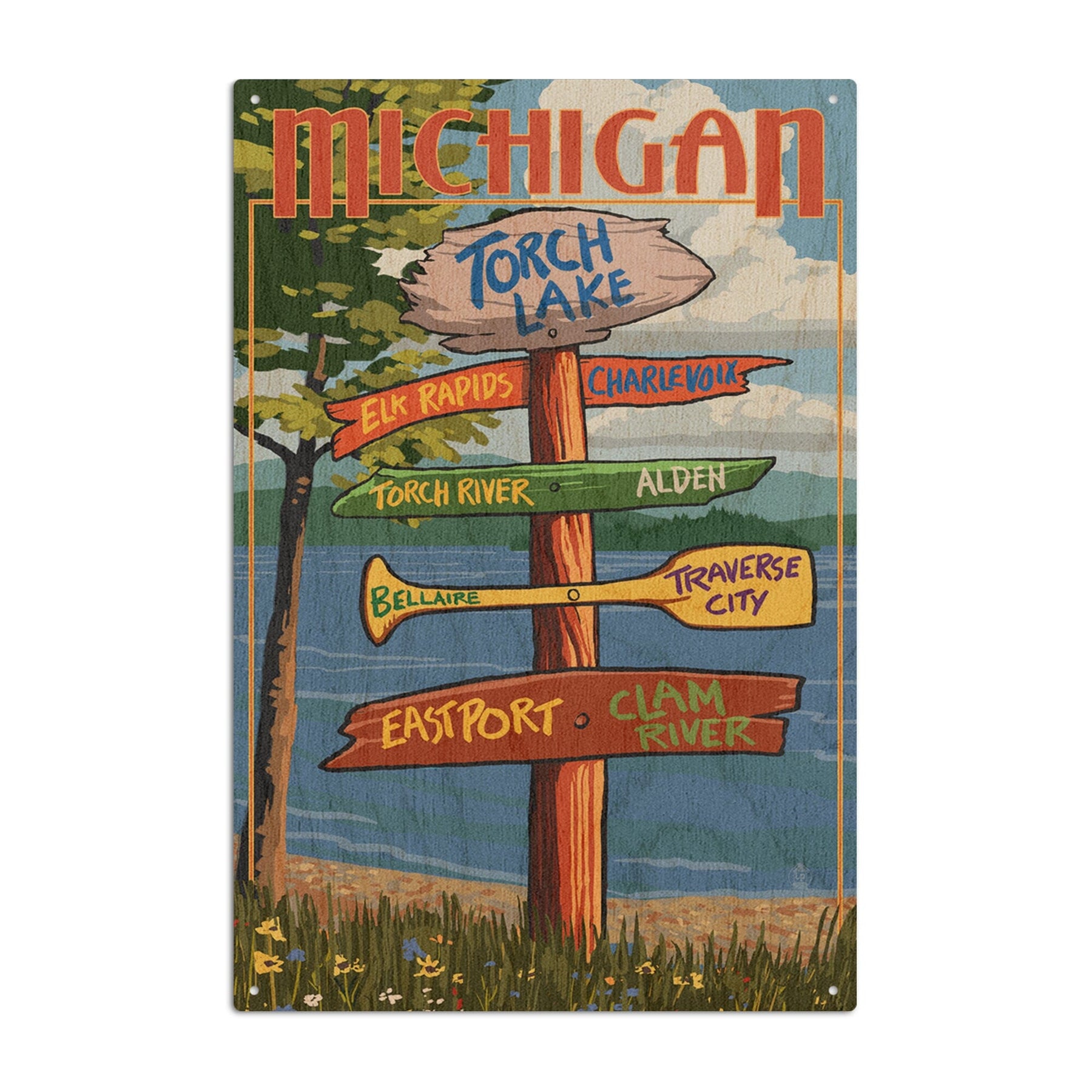 Torch Lake, Michigan, Destinations Sign, Lantern Press Artwork, Wood Signs and Postcards Wood Lantern Press