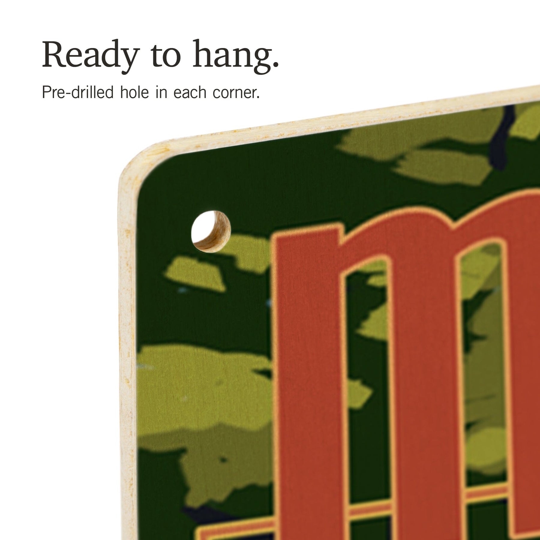 • Hole in each corner, ready to hang