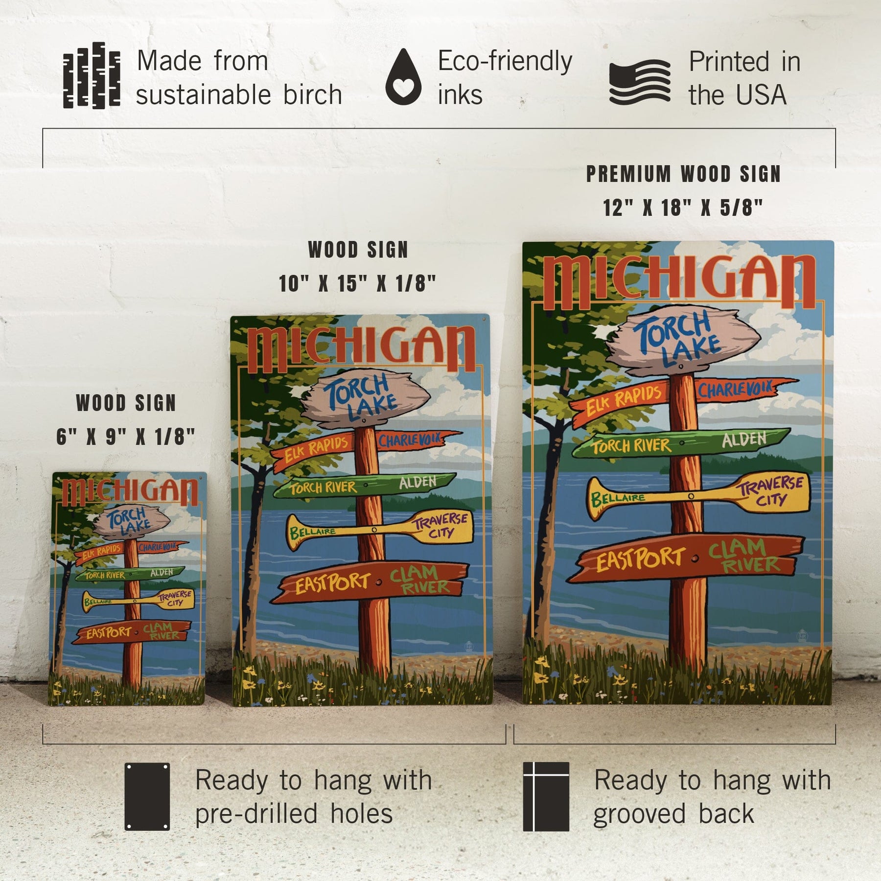 Torch Lake, Michigan, Destinations Sign, Lantern Press Artwork, Wood Signs and Postcards