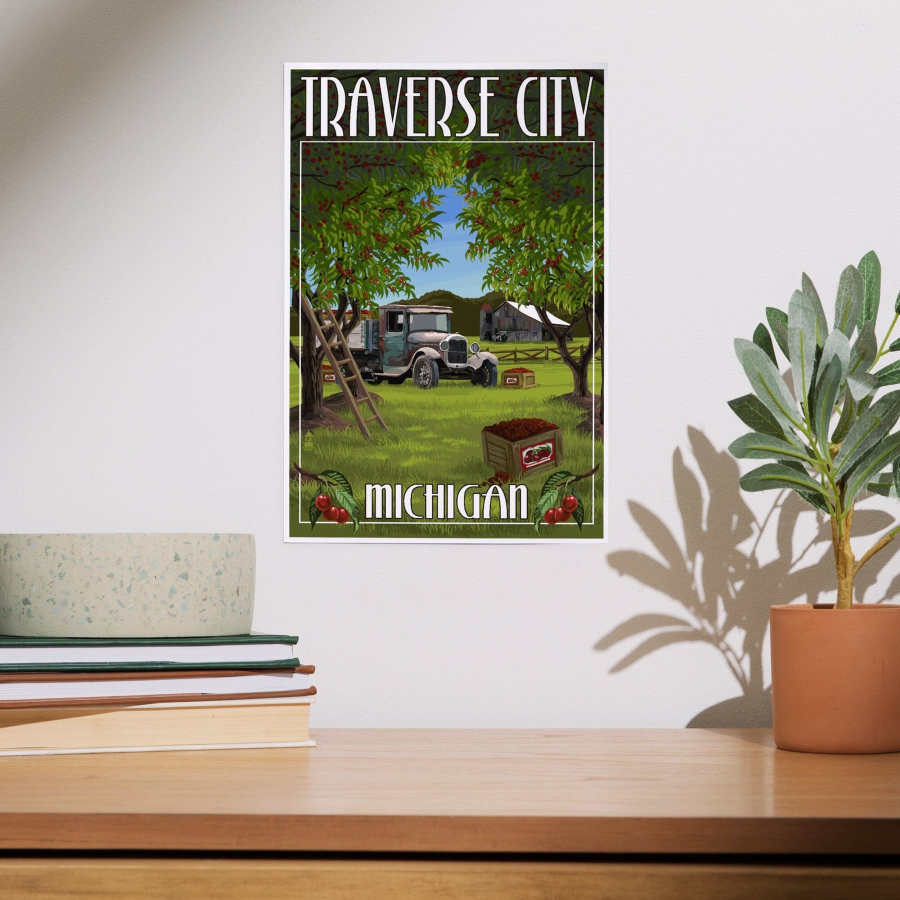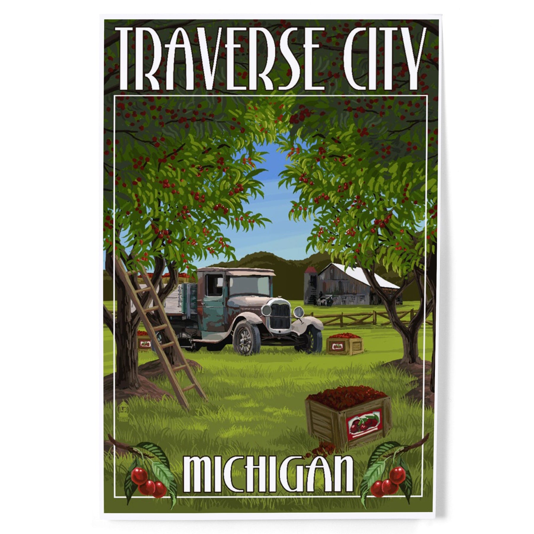 Traverse City, Michigan, Cherry Orchard Harvest, Art & Giclee Prints Art Lantern Press