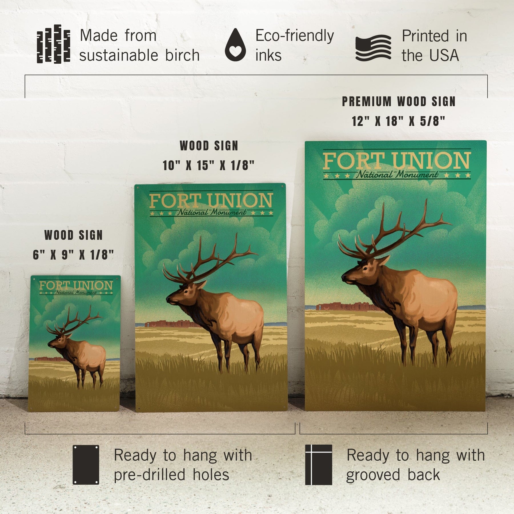 Fort Union, New Mexico, Elk, Lithograph, Lantern Press Artwork, Wood Signs and Postcards