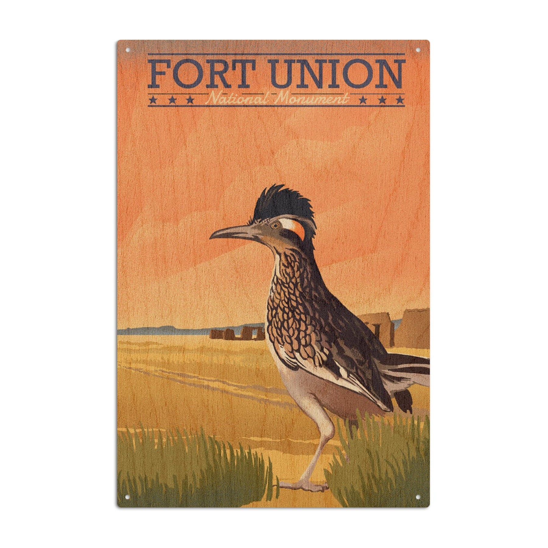 Fort Union, New Mexico, Roadrunner, Lithograph, Lantern Press Artwork, Wood Signs and Postcards