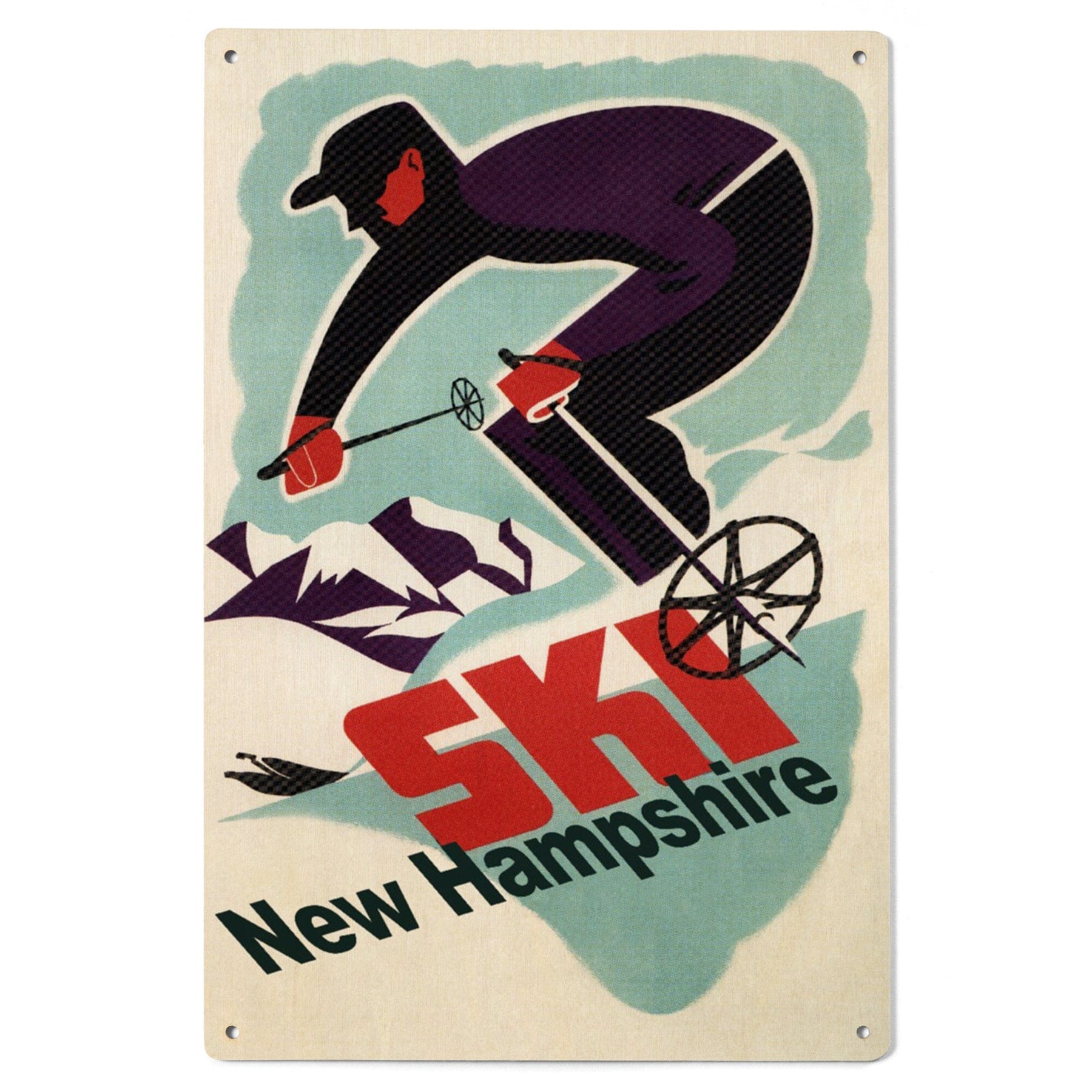Ski New Hampshire, Retro Skier, Lantern Press Artwork, Wood Signs and Postcards Wood Lantern Press