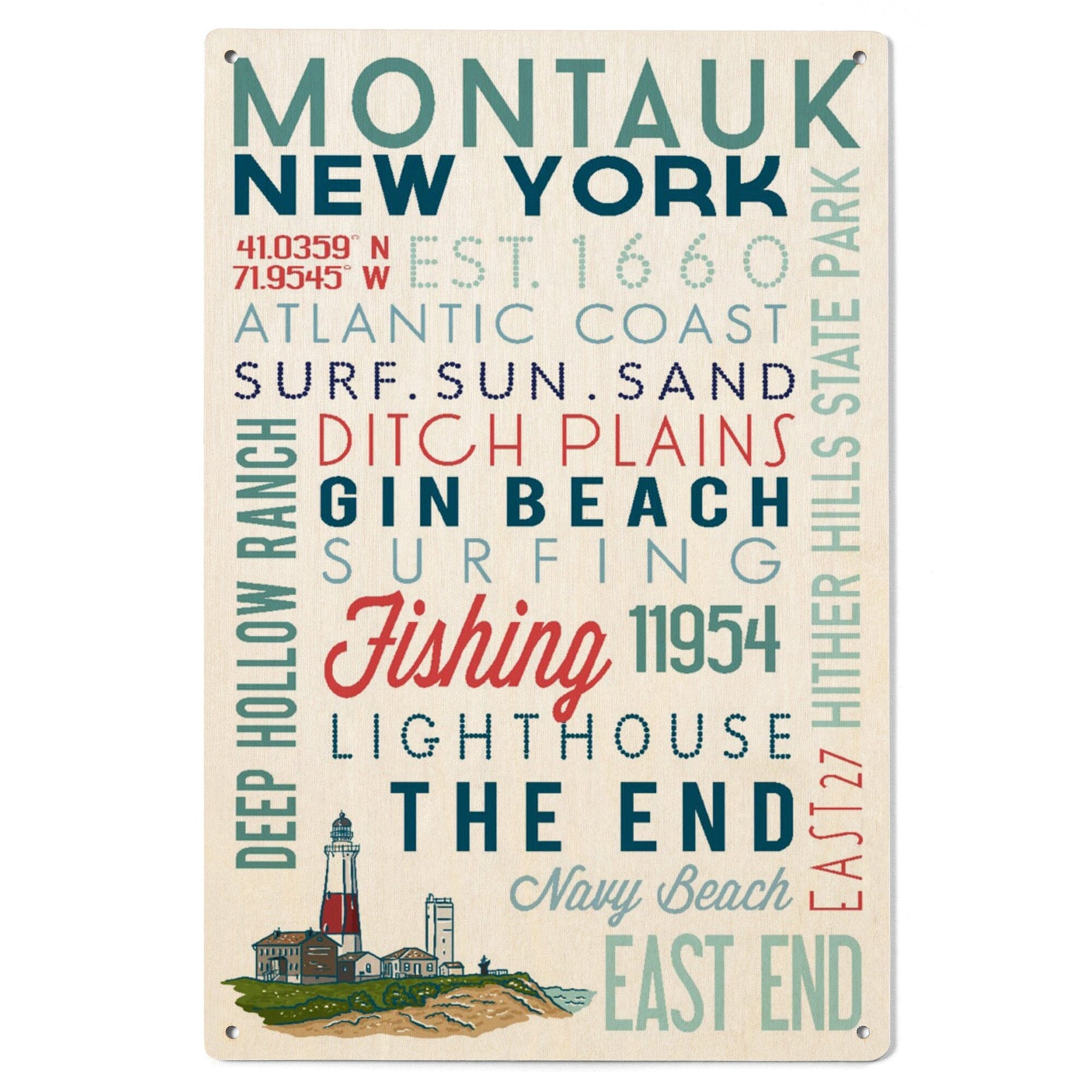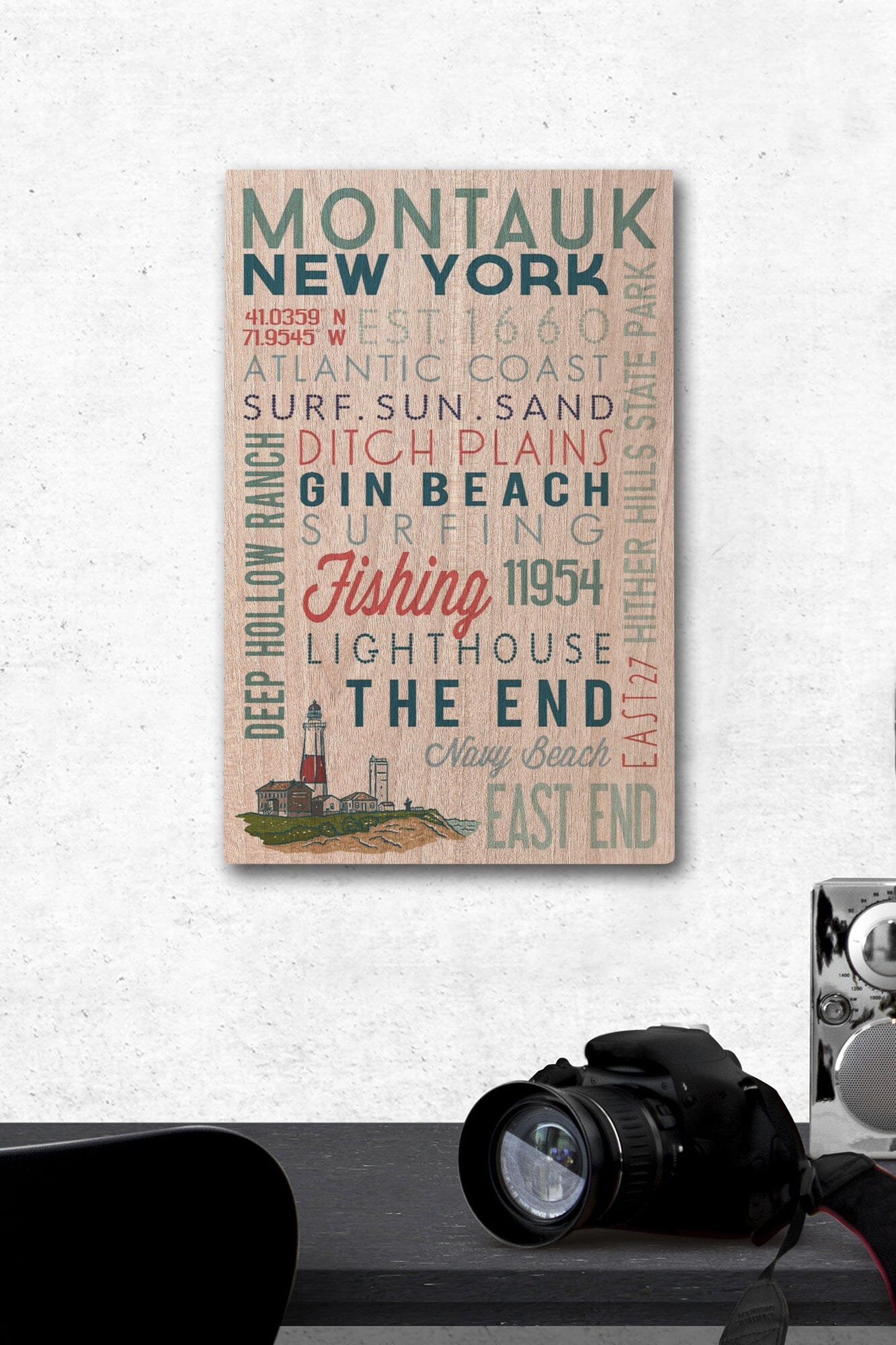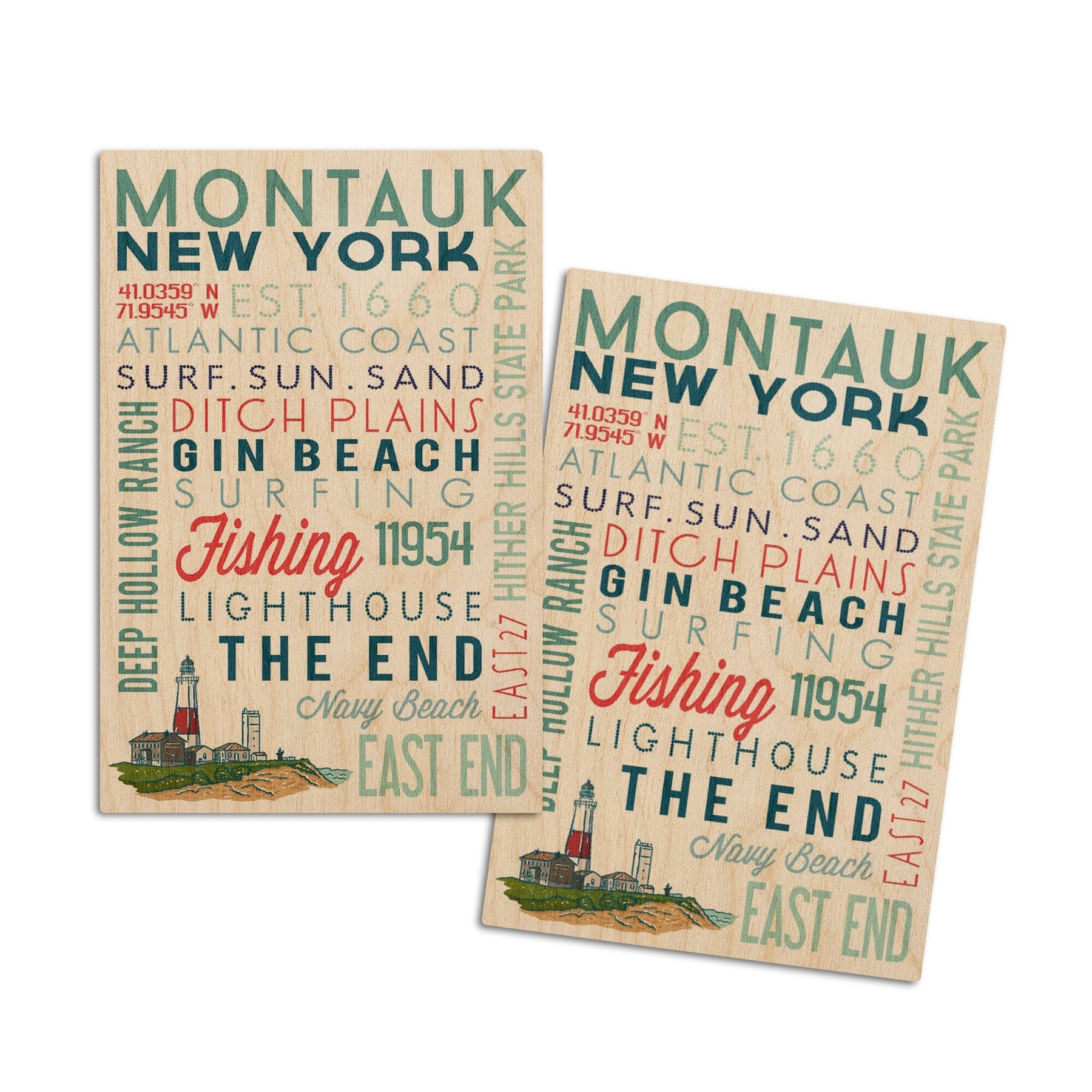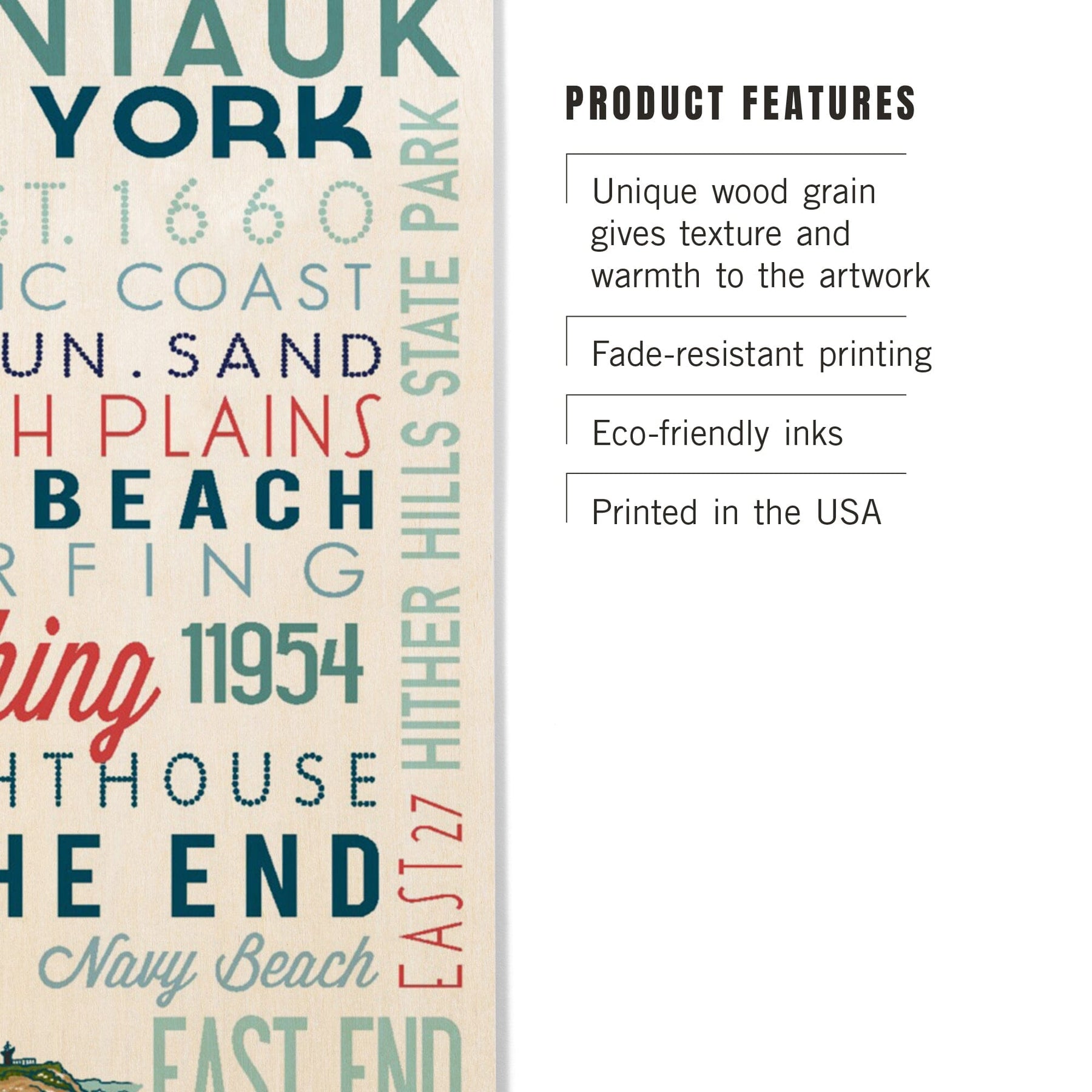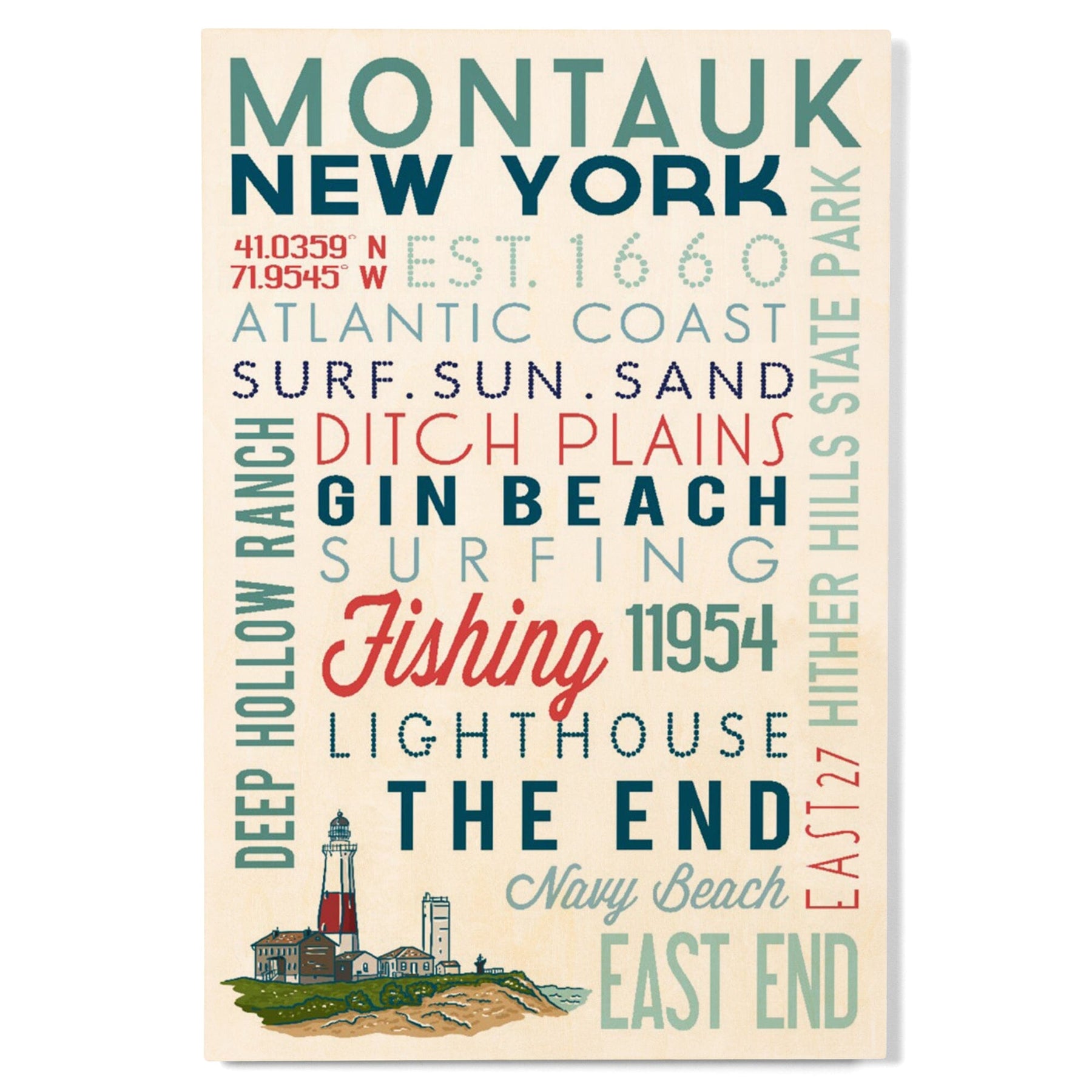 Montauk, New York, Typography, Lantern Press Artwork, Wood Signs and Postcards Wood Lantern Press