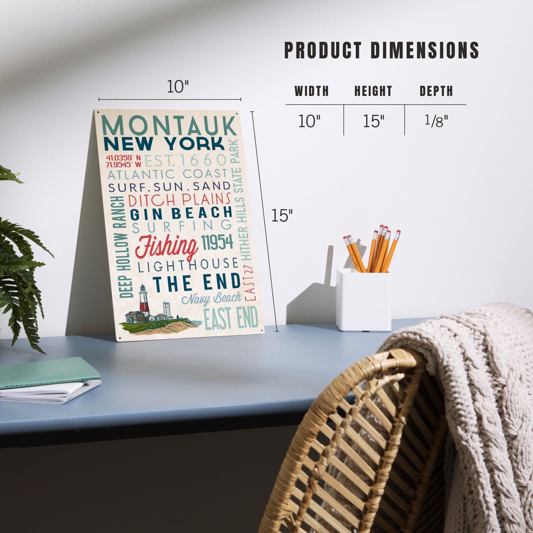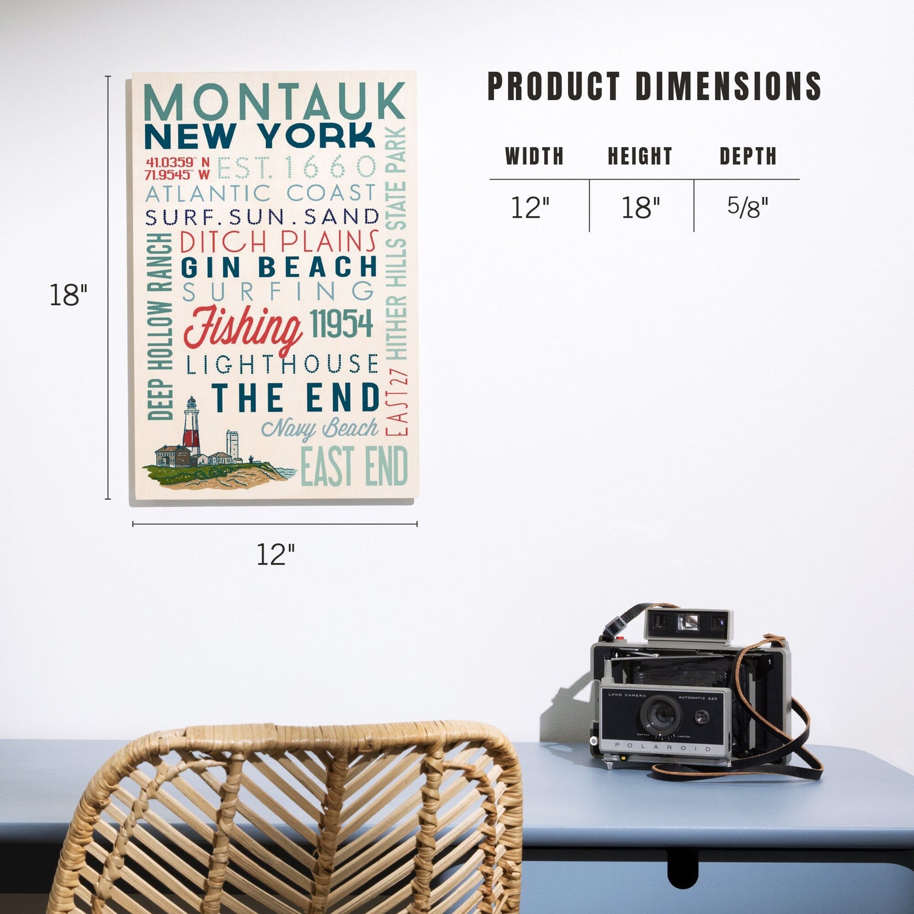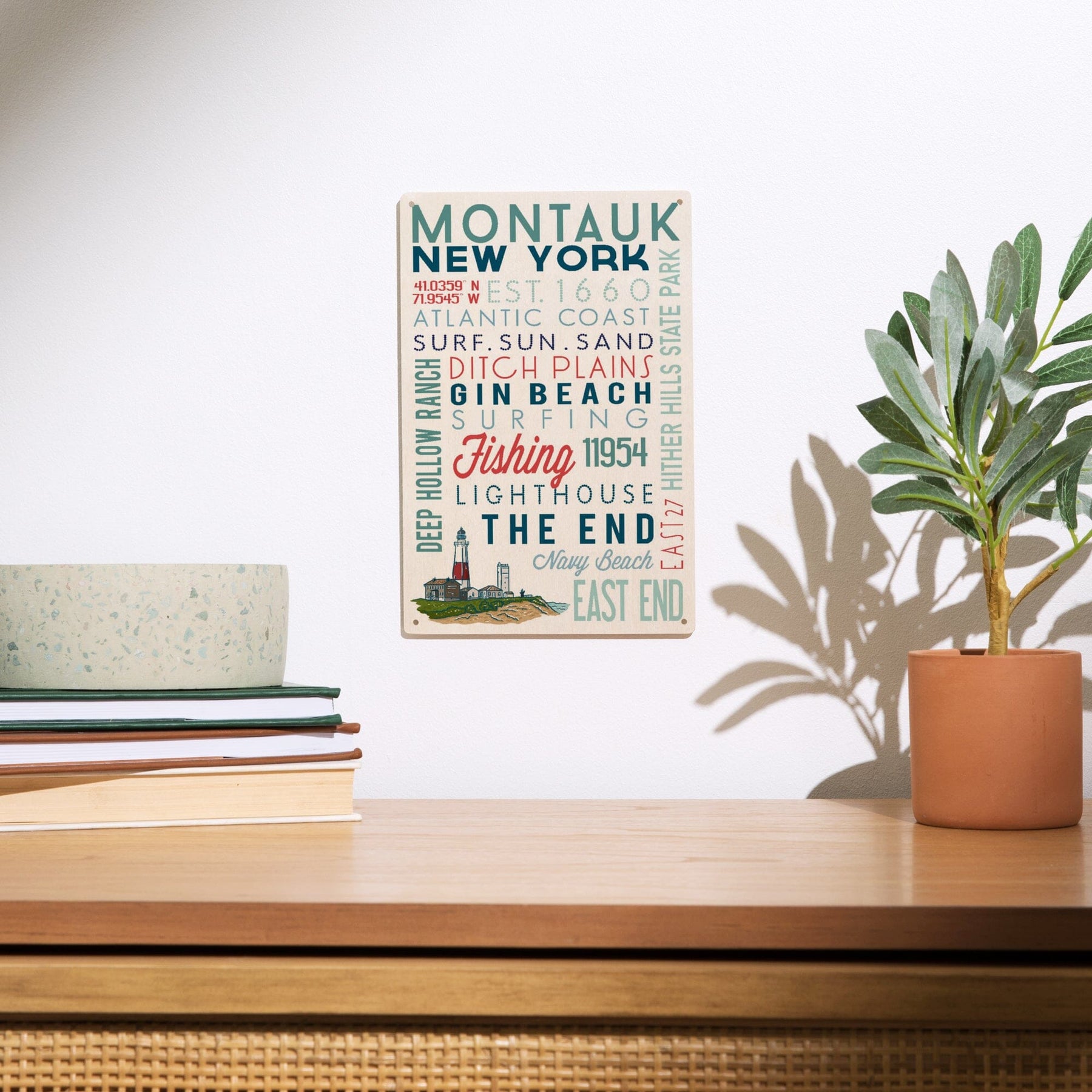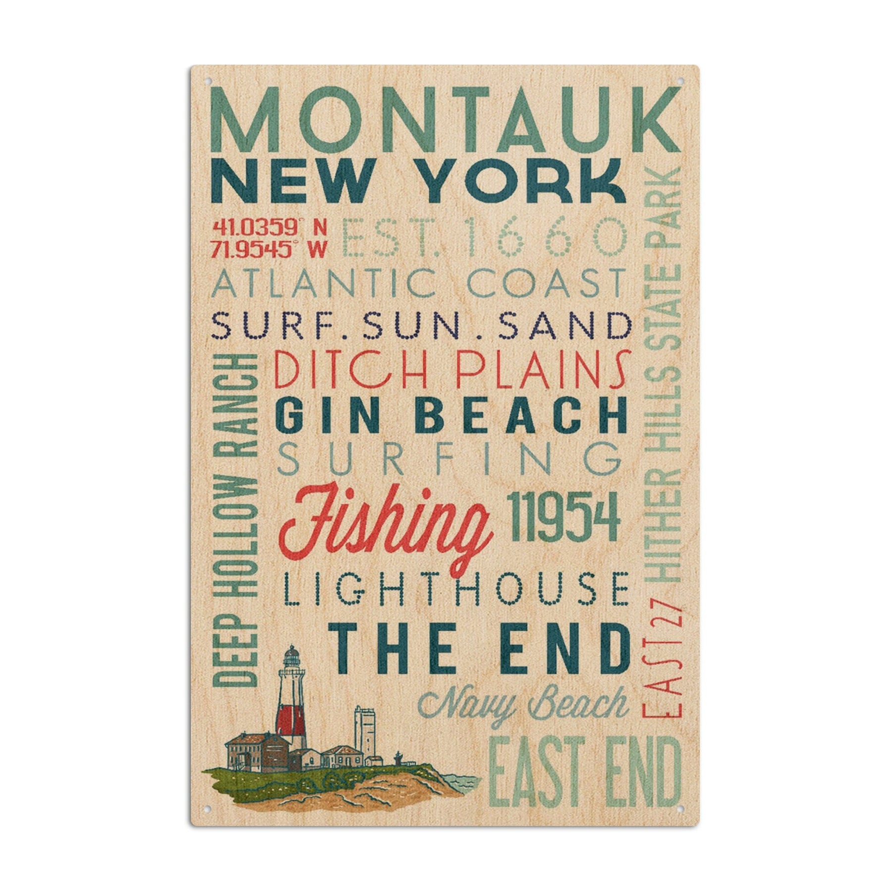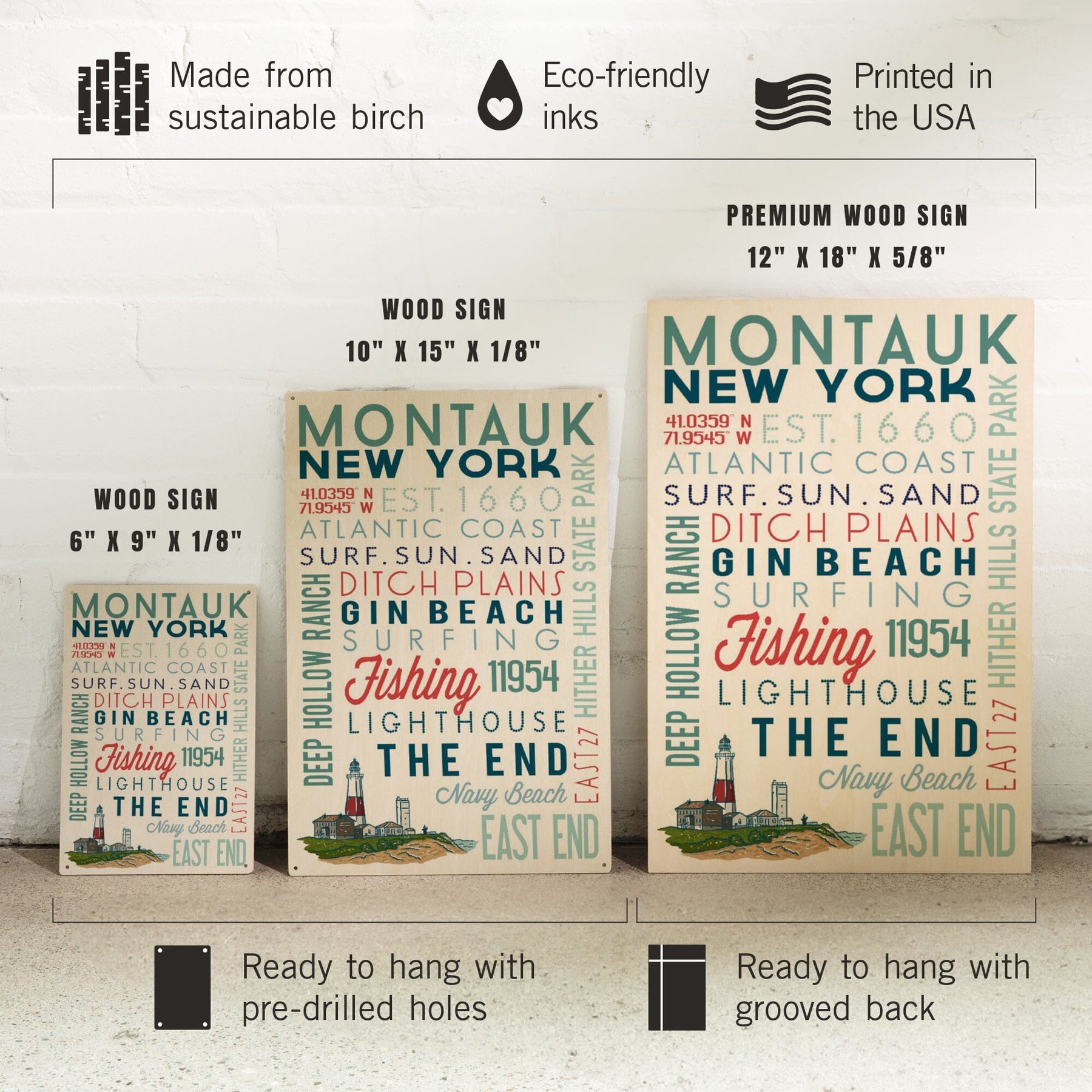 Montauk, New York, Typography, Lantern Press Artwork, Wood Signs and Postcards Wood Lantern Press