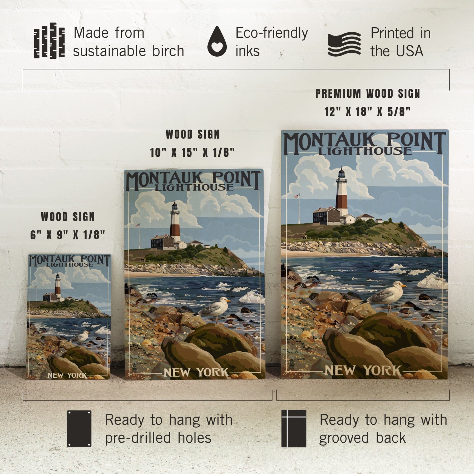 Montauk Point Lighthouse, New York, Lantern Press Artwork, Wood Signs and Postcards