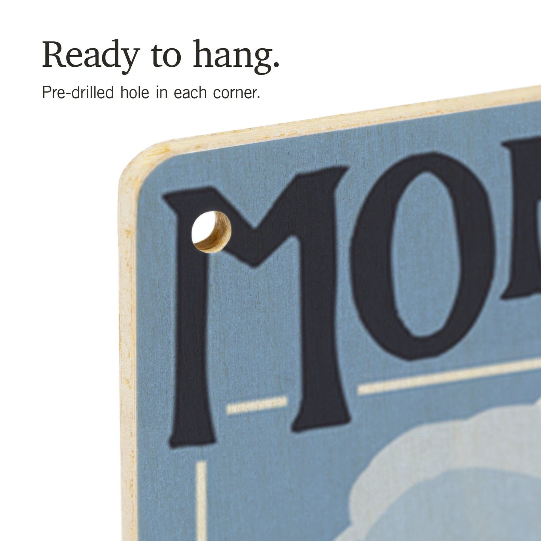 • Hole in each corner, ready to hang