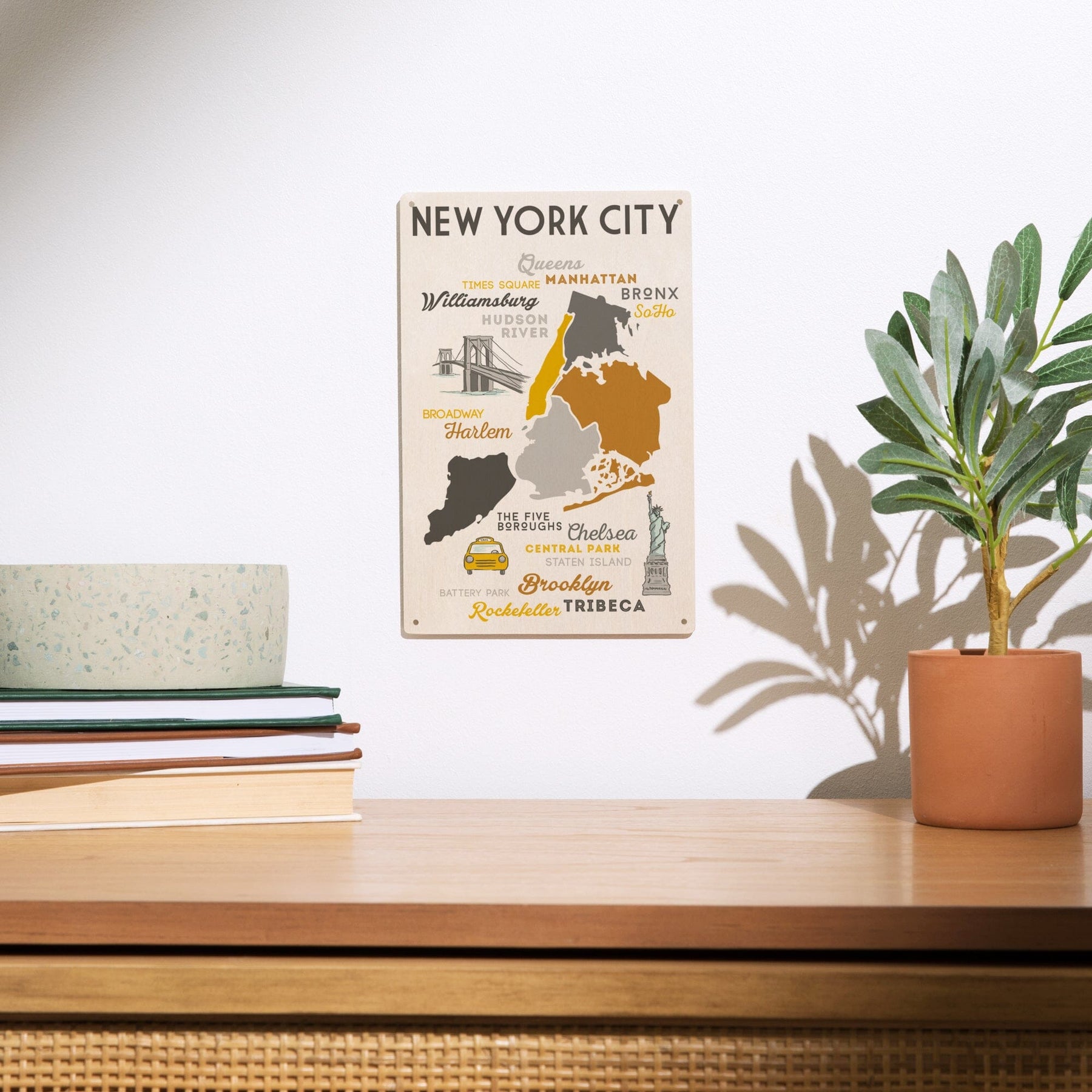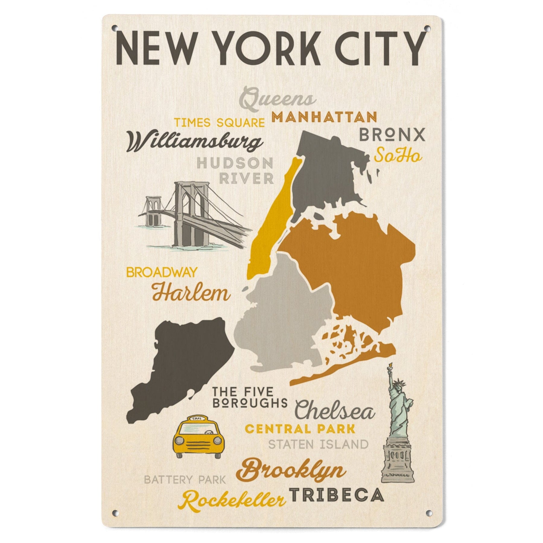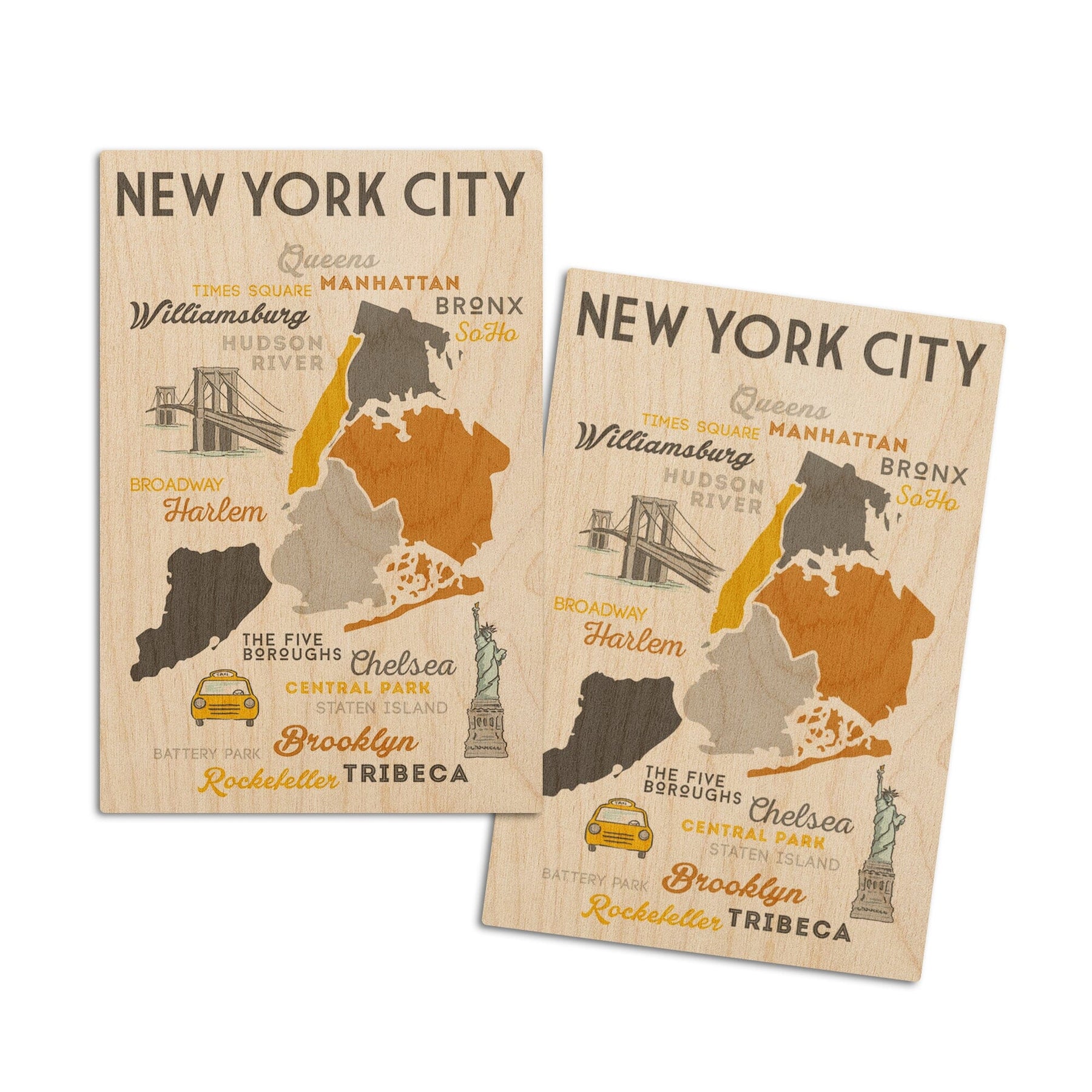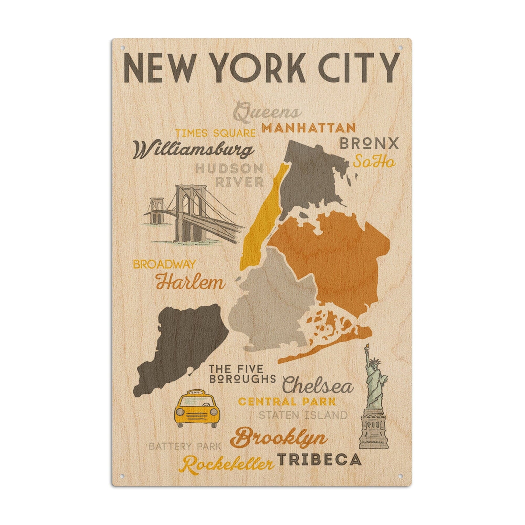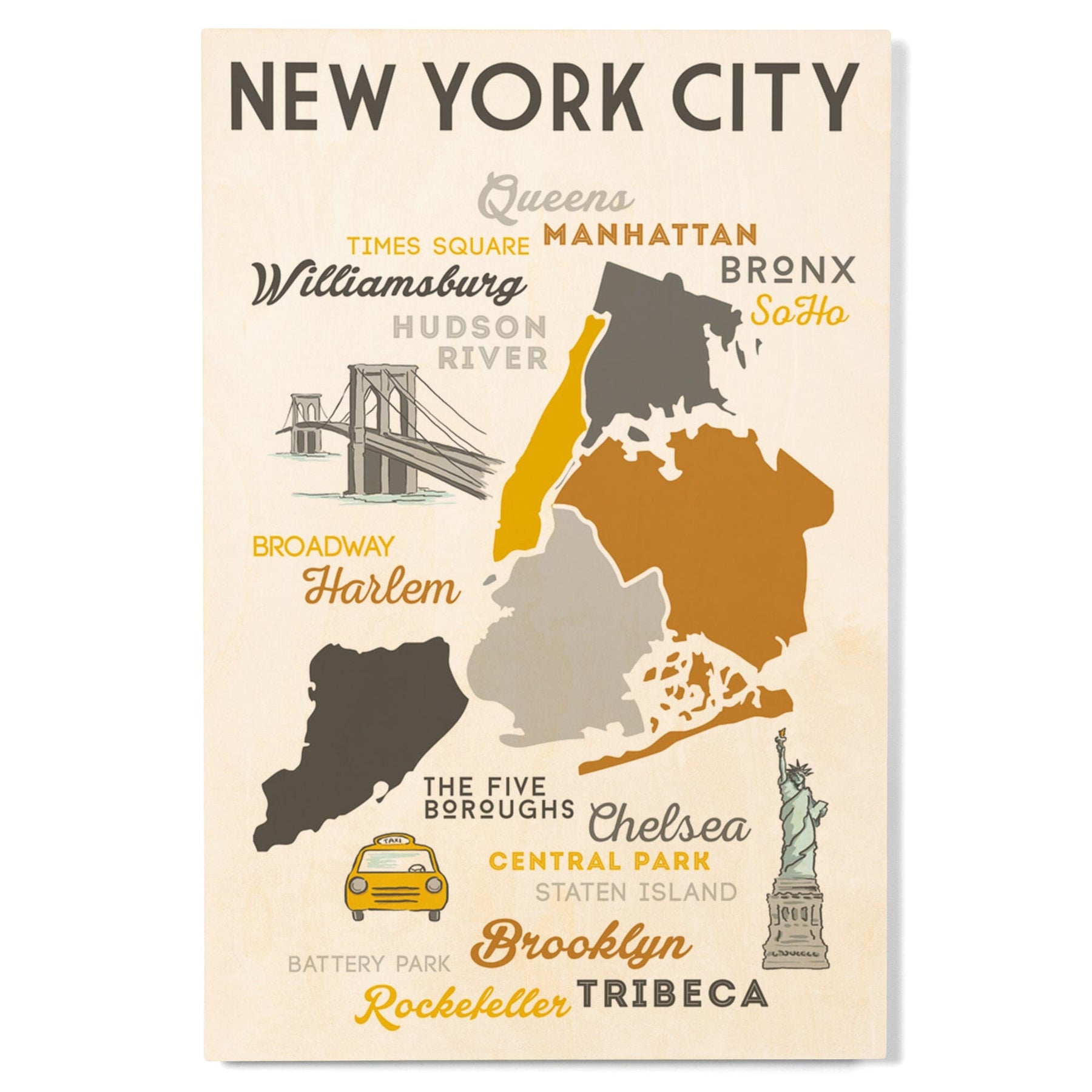 New York City, New York, Typography & Icons, Lantern Press Artwork, Wood Signs and Postcards Wood Lantern Press