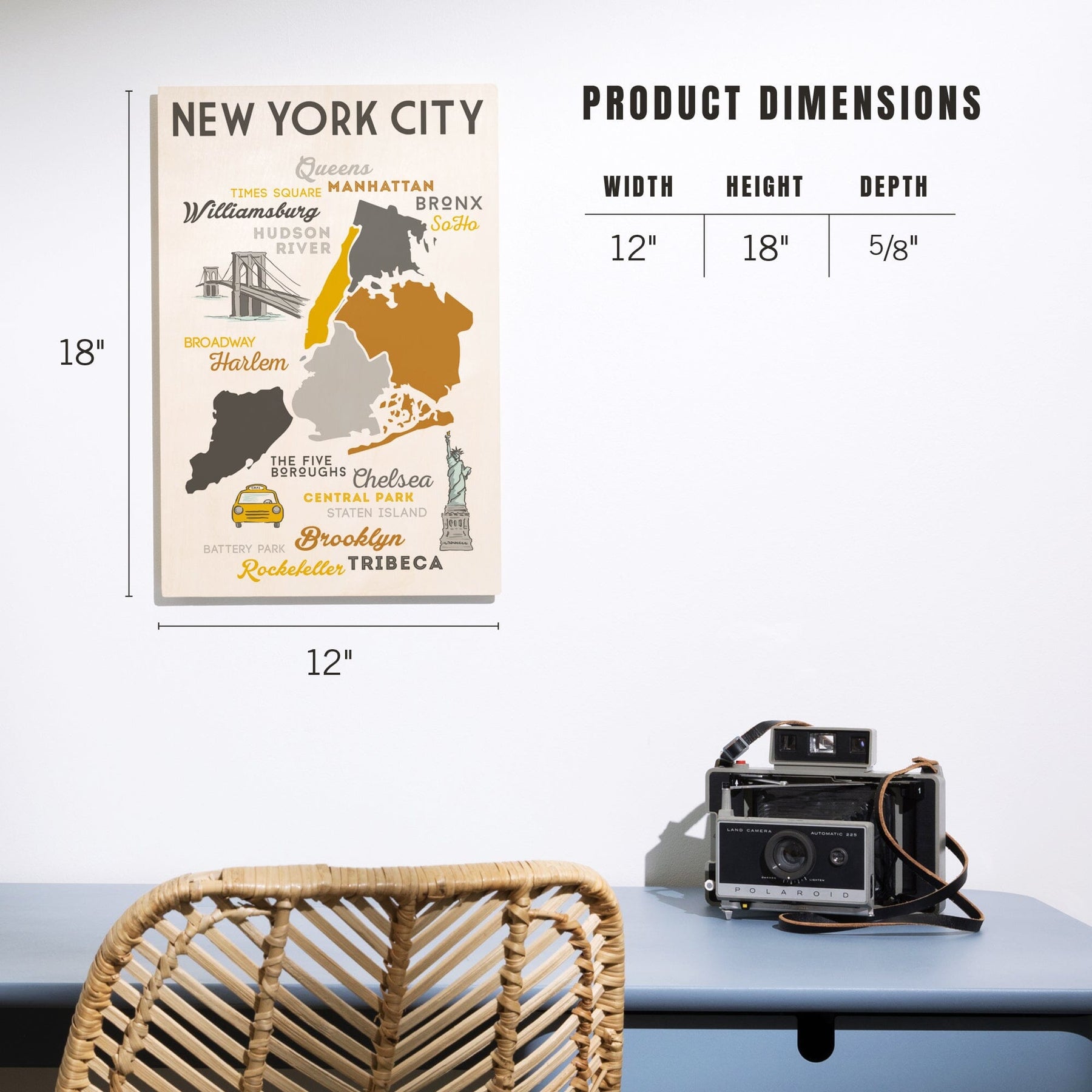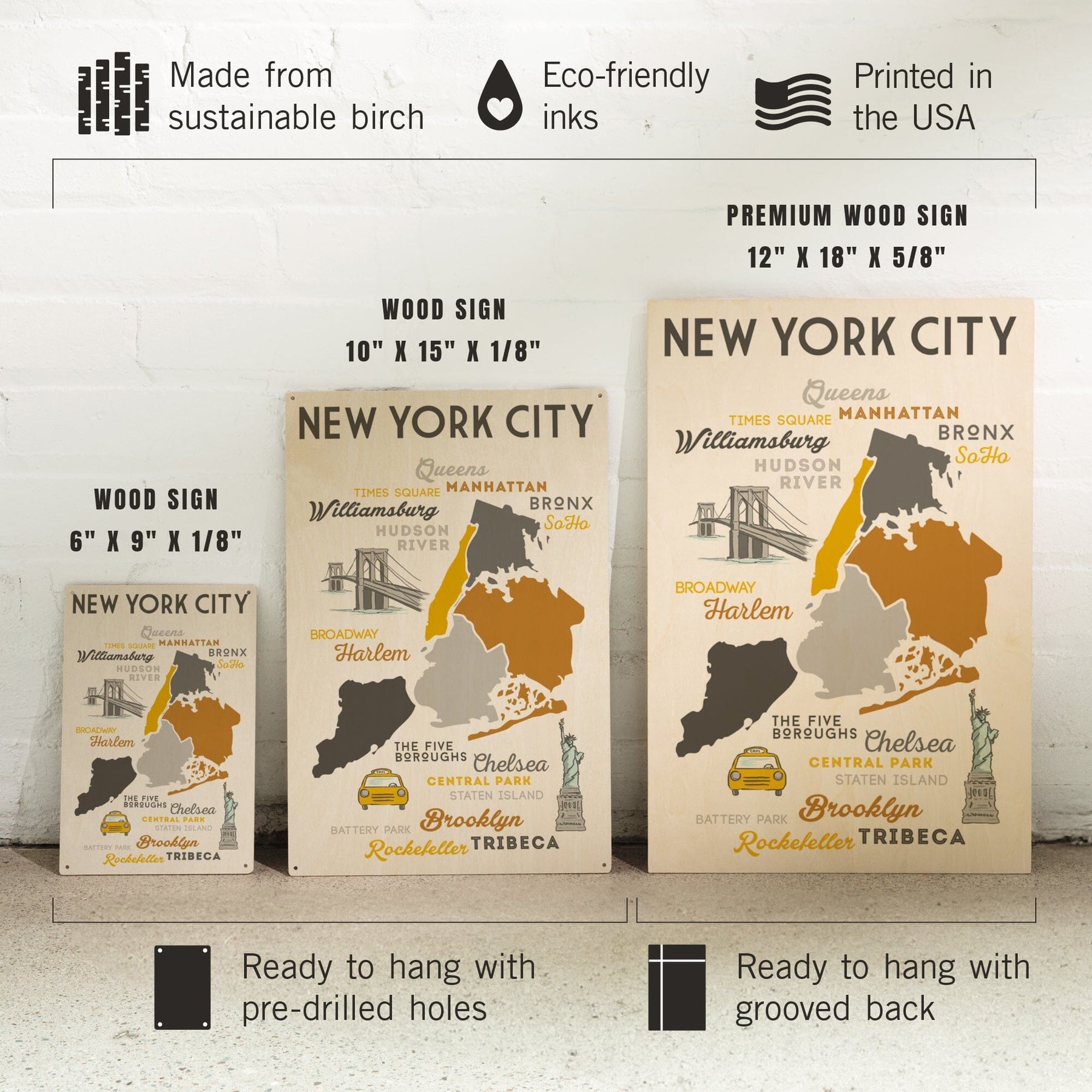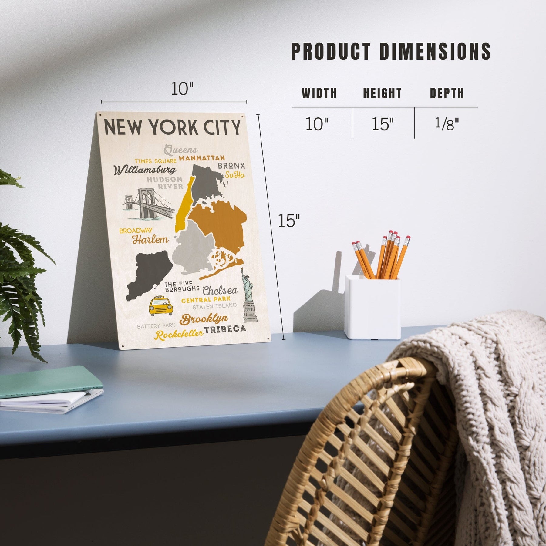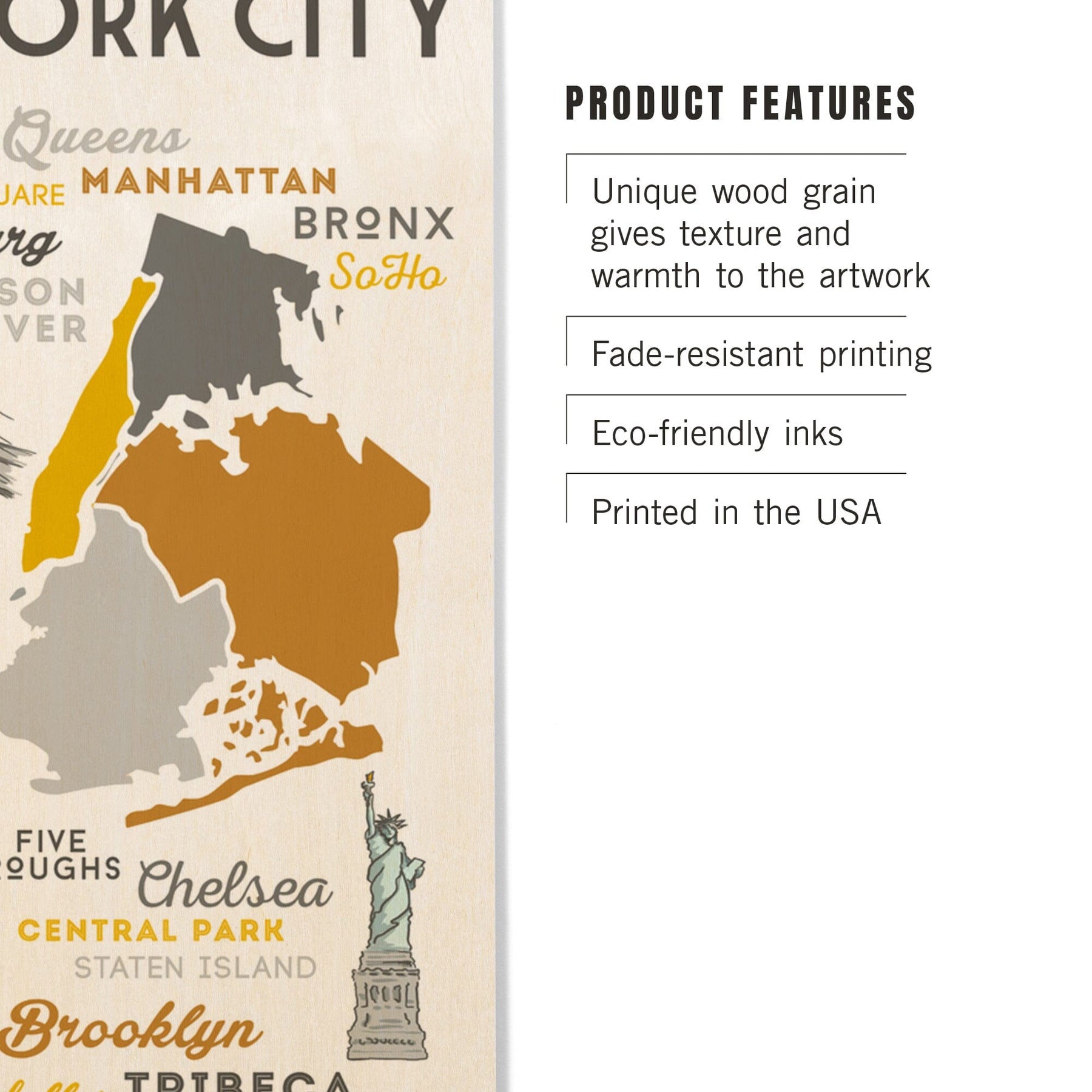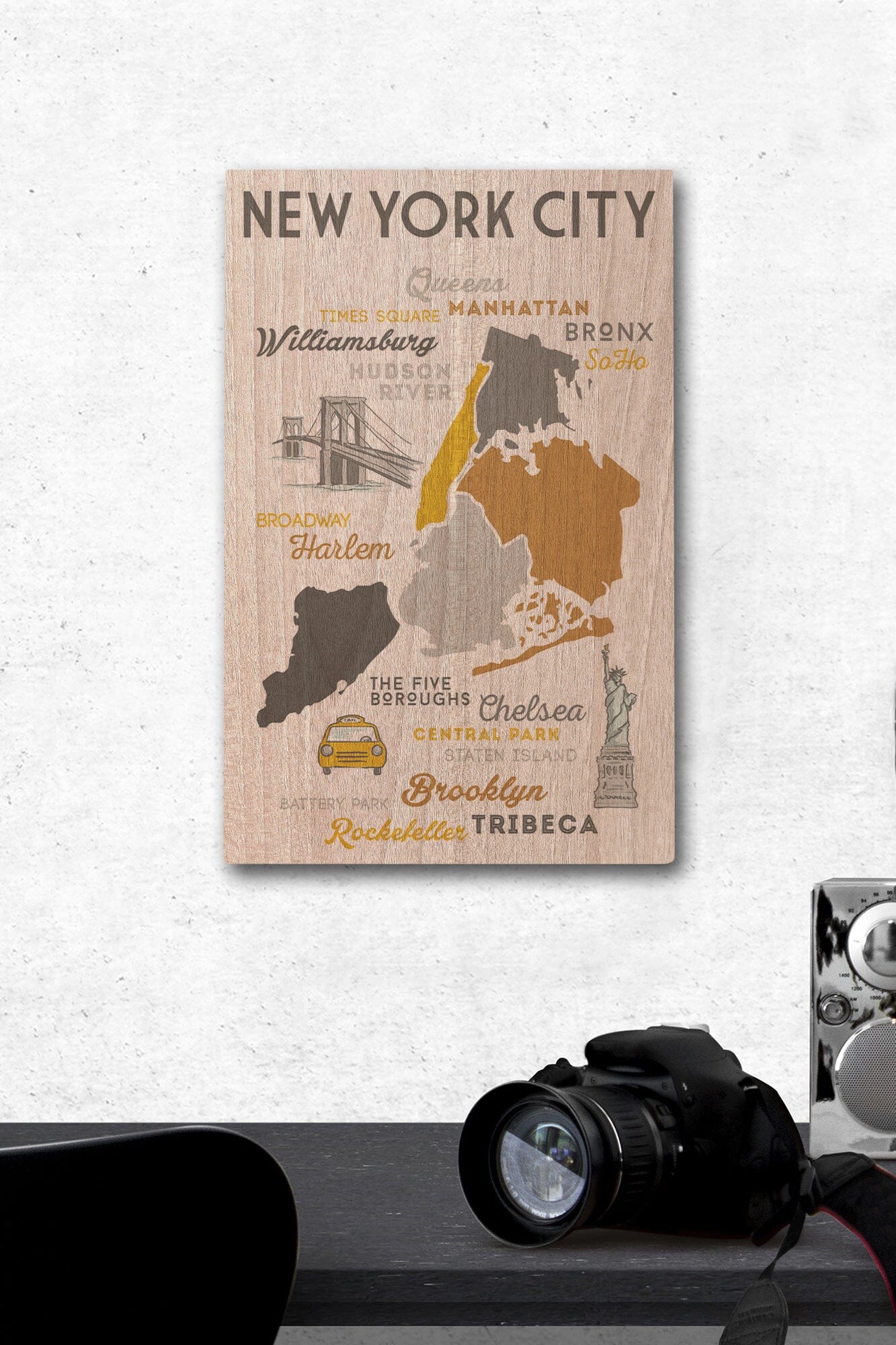 New York City, New York, Typography & Icons, Lantern Press Artwork, Wood Signs and Postcards Wood Lantern Press