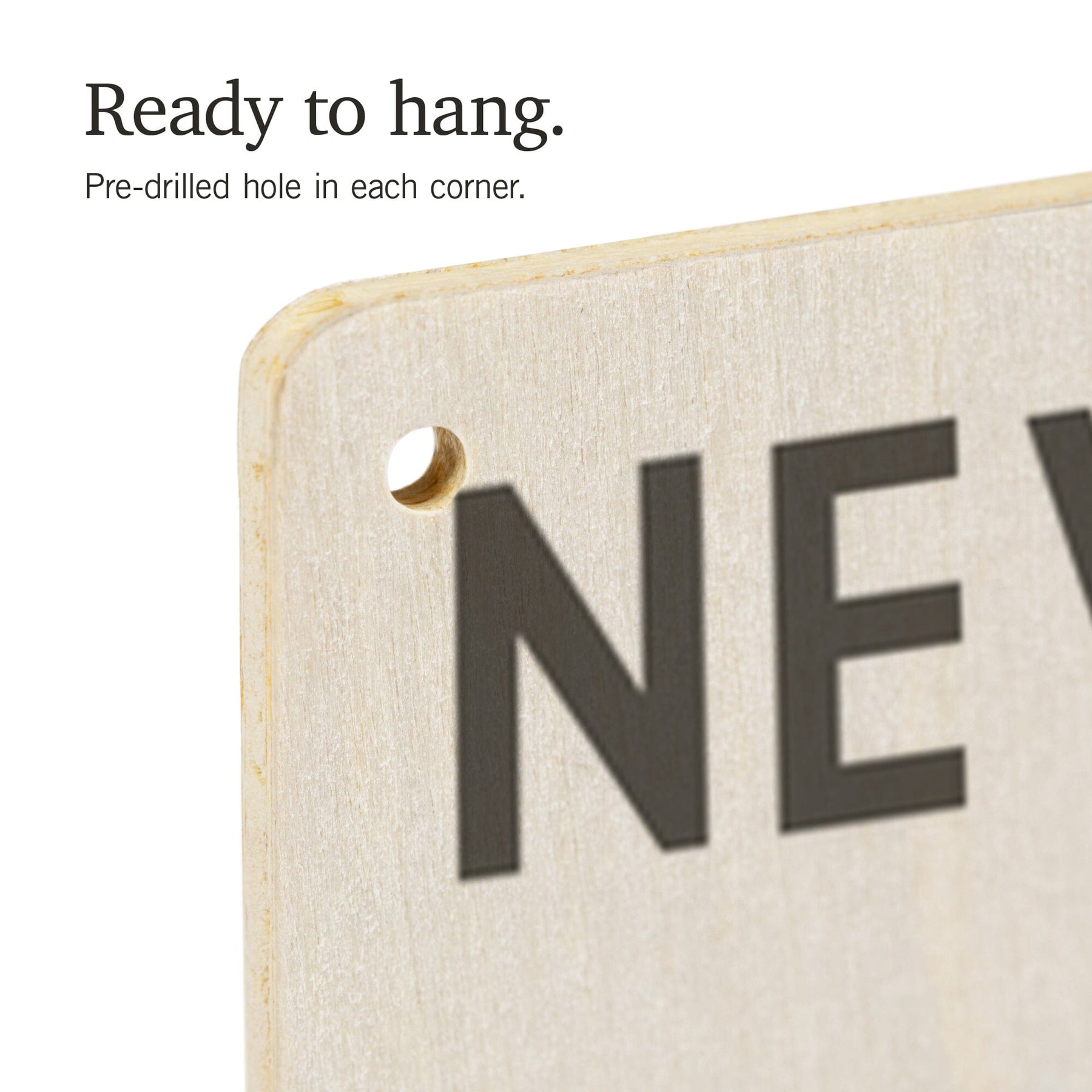 • Hole in each corner, ready to hang