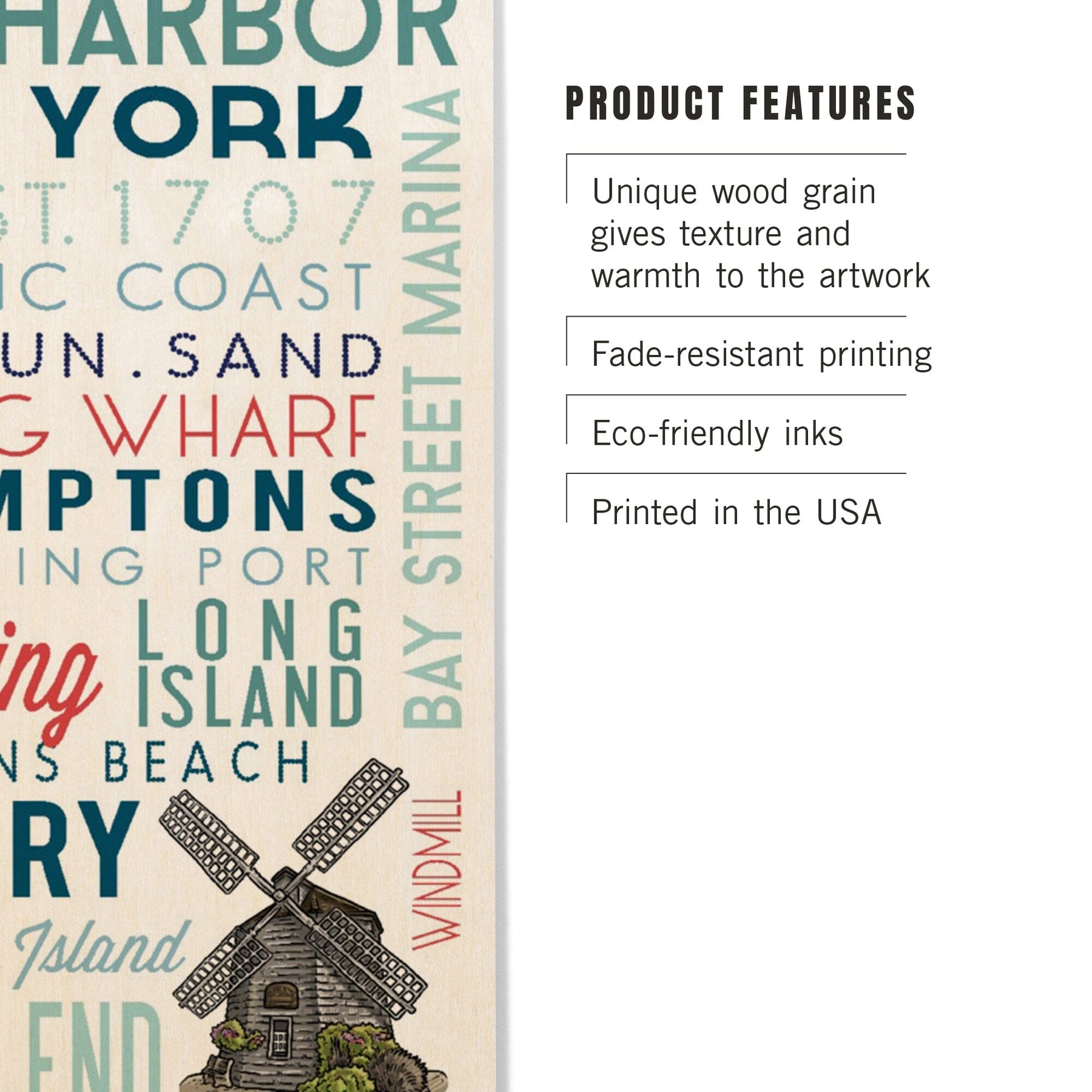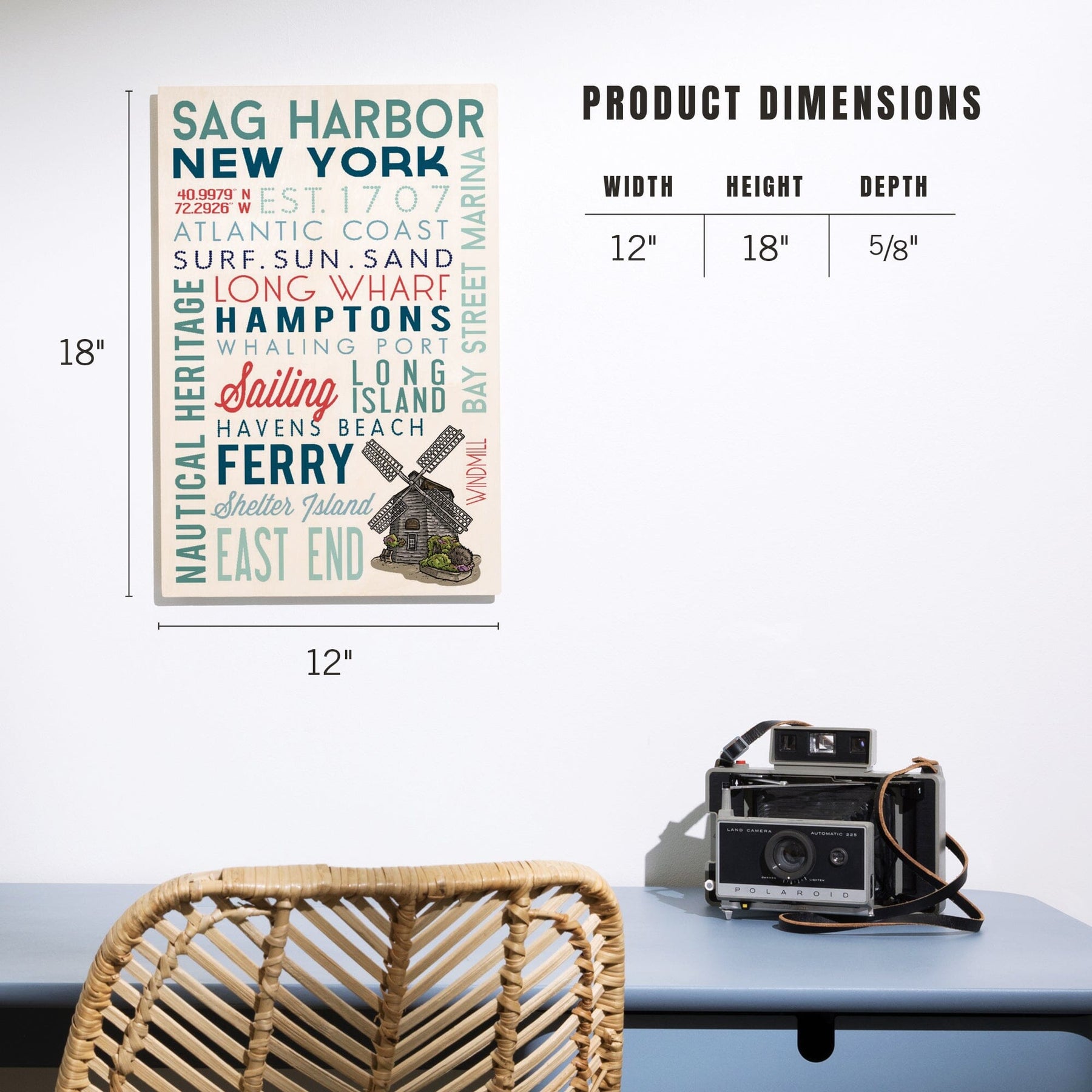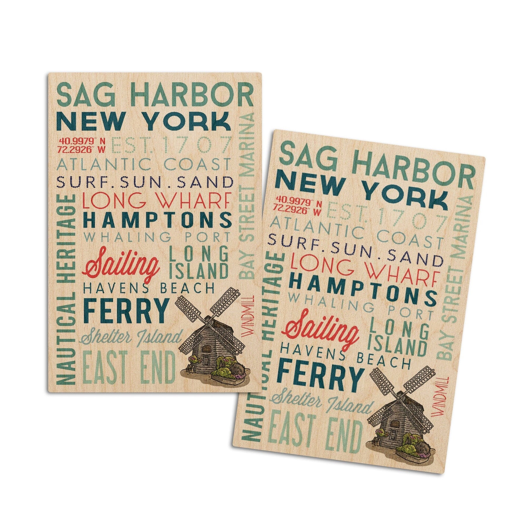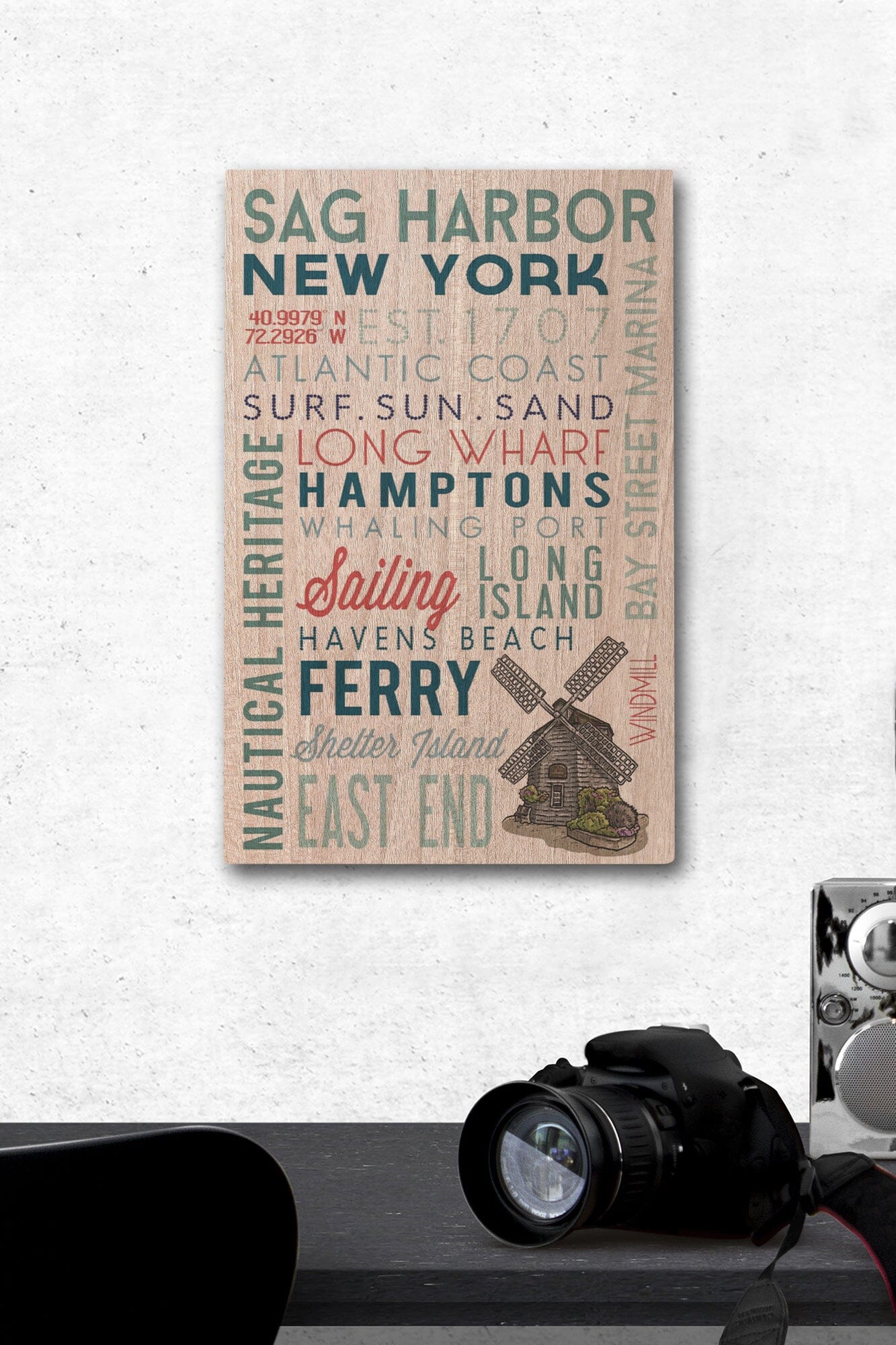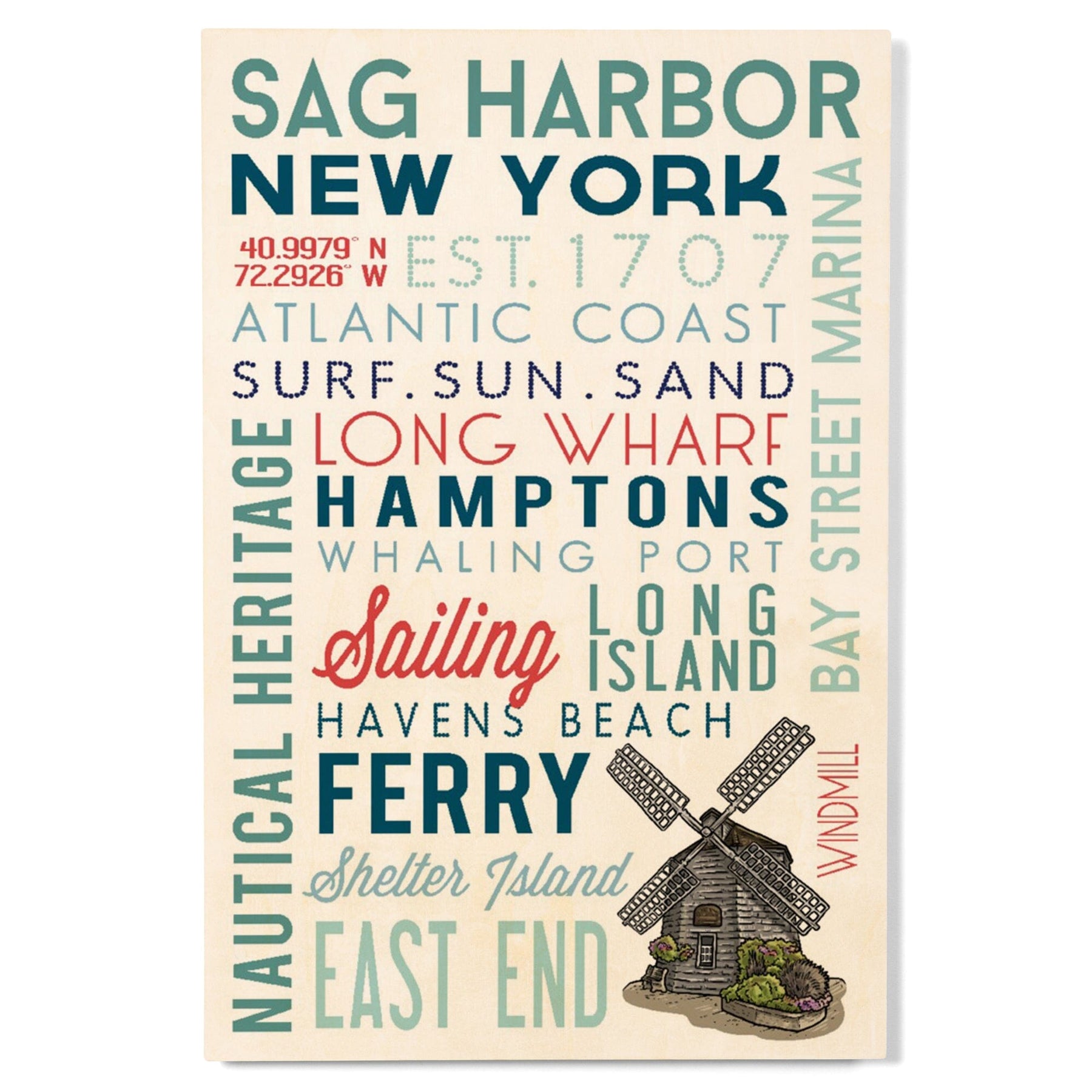 Sag Harbor, New York, Typography, Lantern Press Artwork, Wood Signs and Postcards Wood Lantern Press