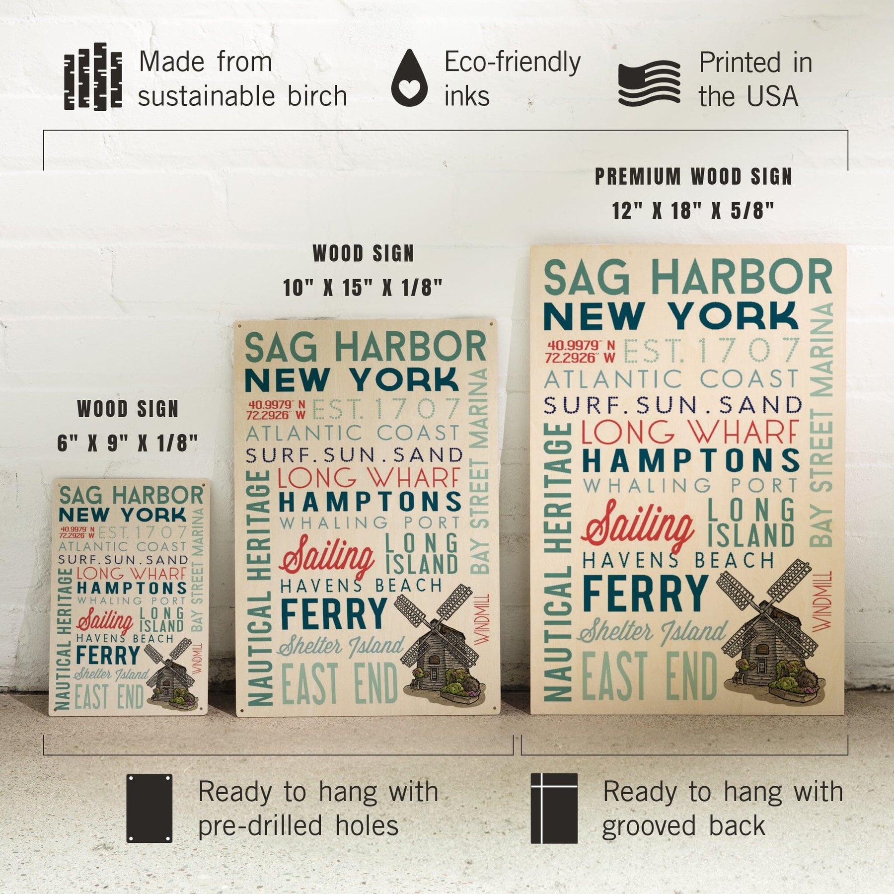 Sag Harbor, New York, Typography, Lantern Press Artwork, Wood Signs and Postcards