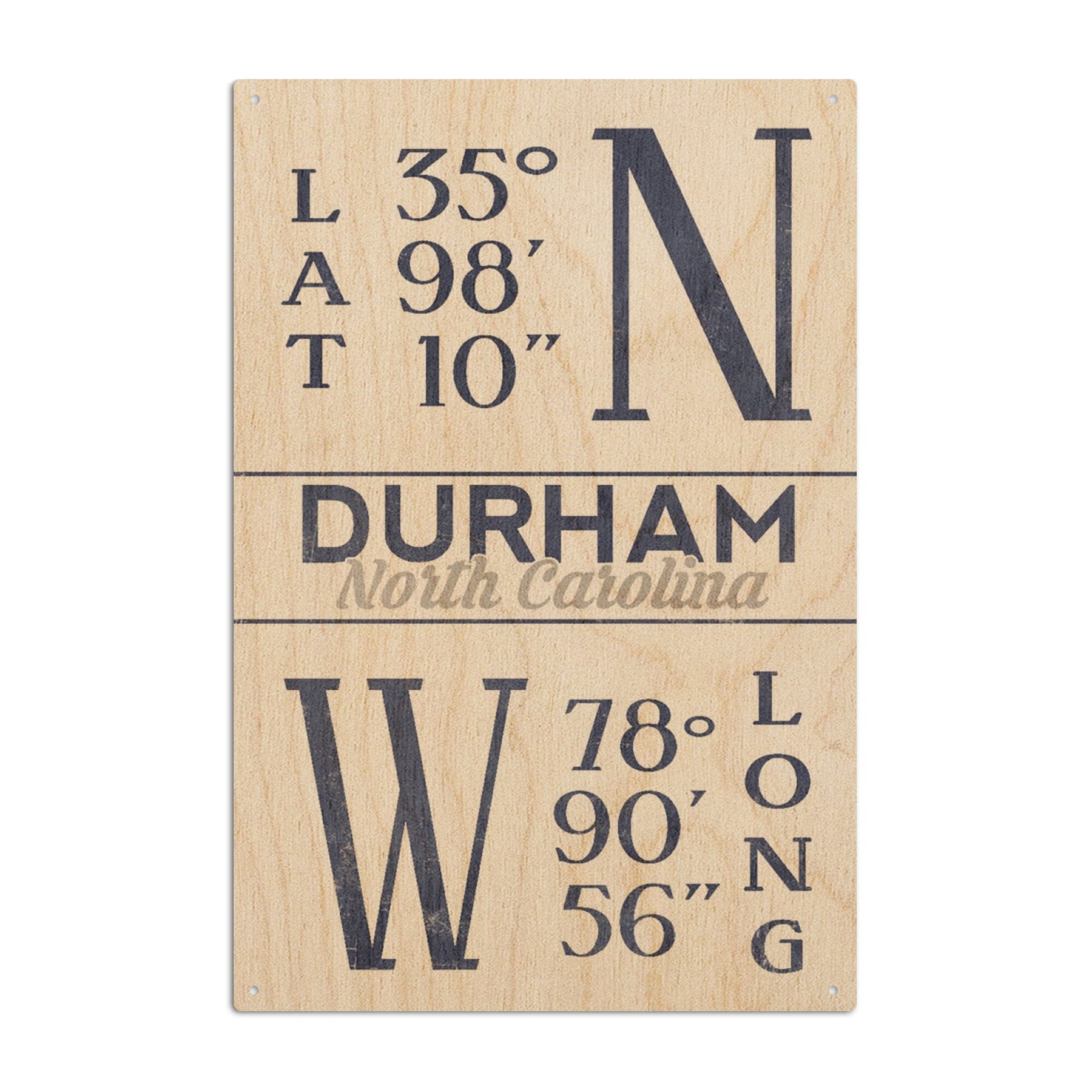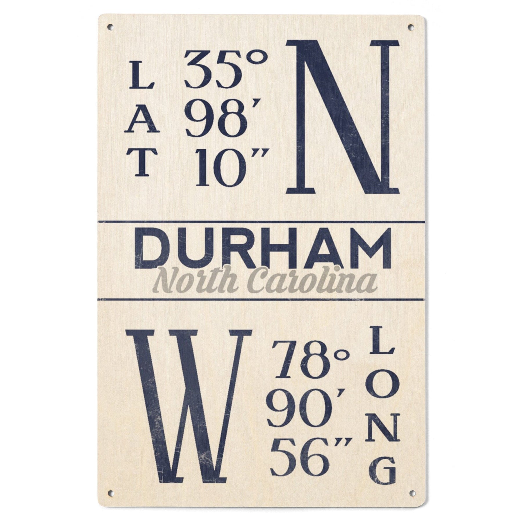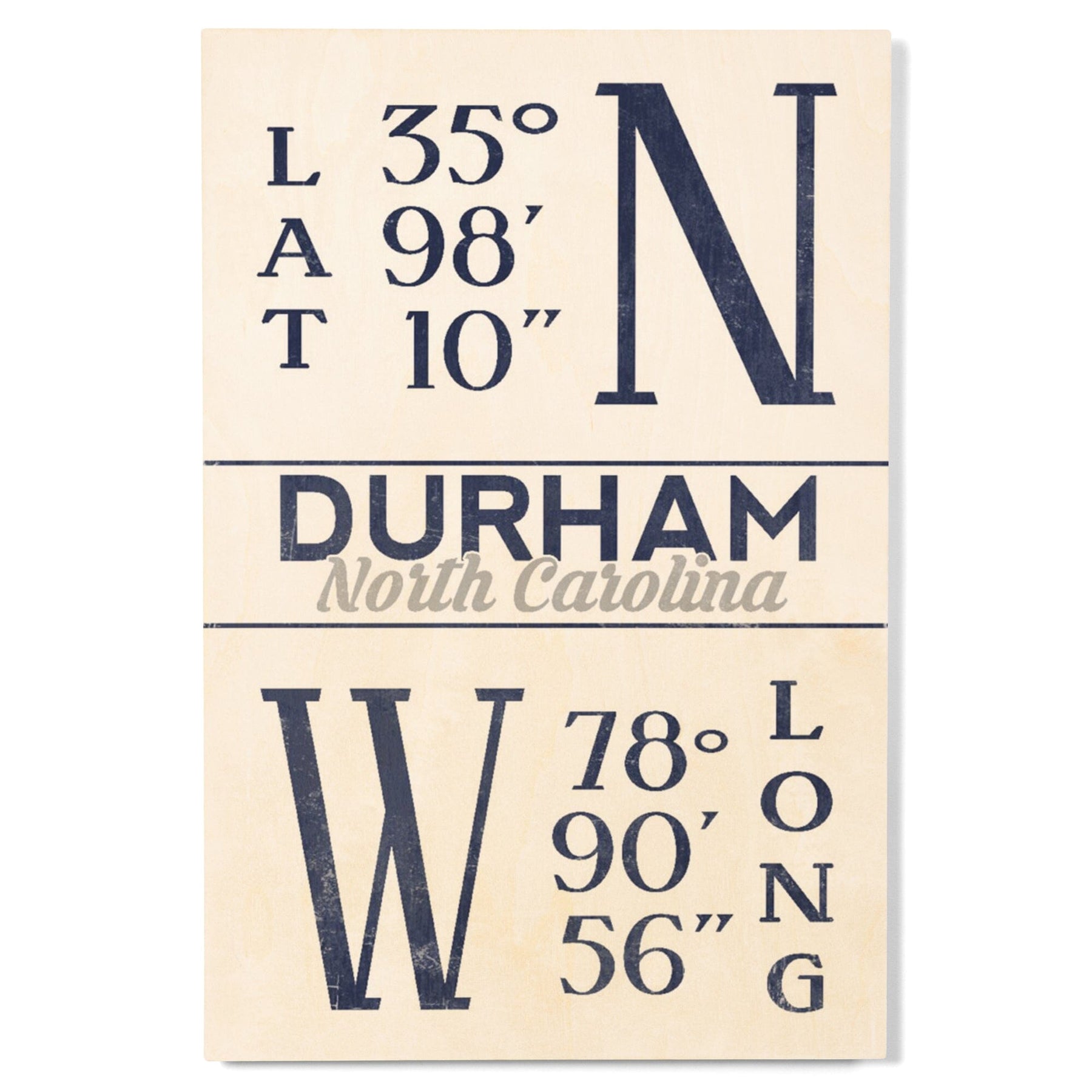 Durham, North Carolina, Latitude & Longitude (Blue), Lantern Press Artwork, Wood Signs and Postcards