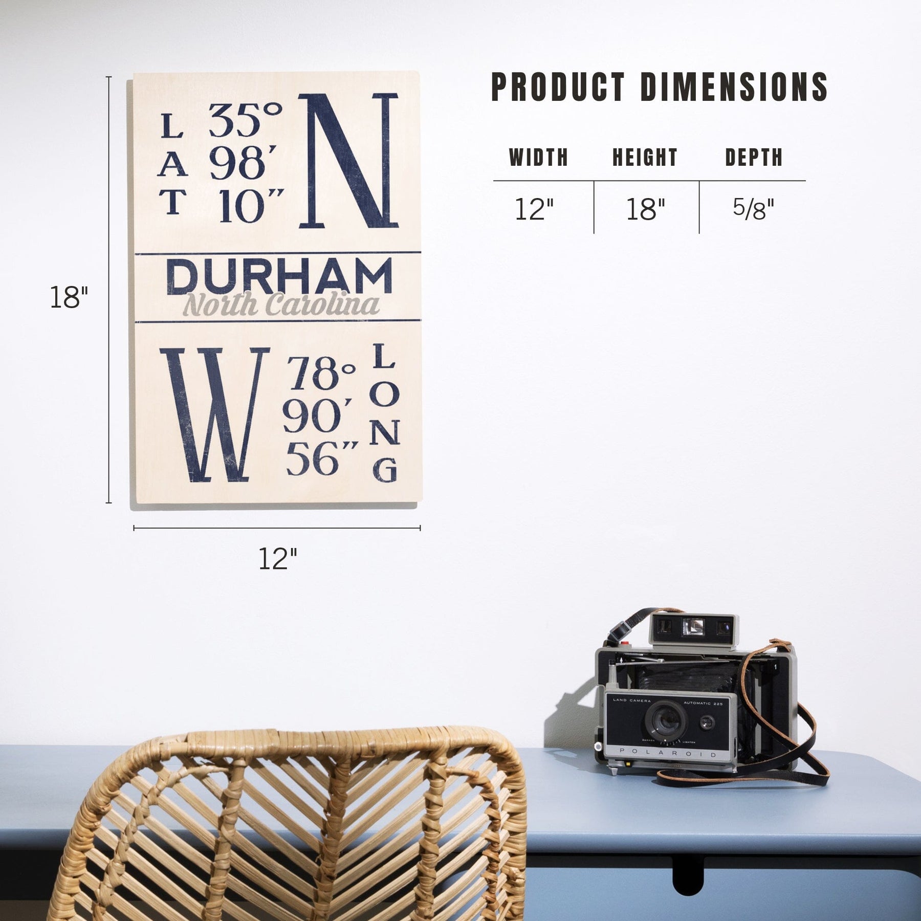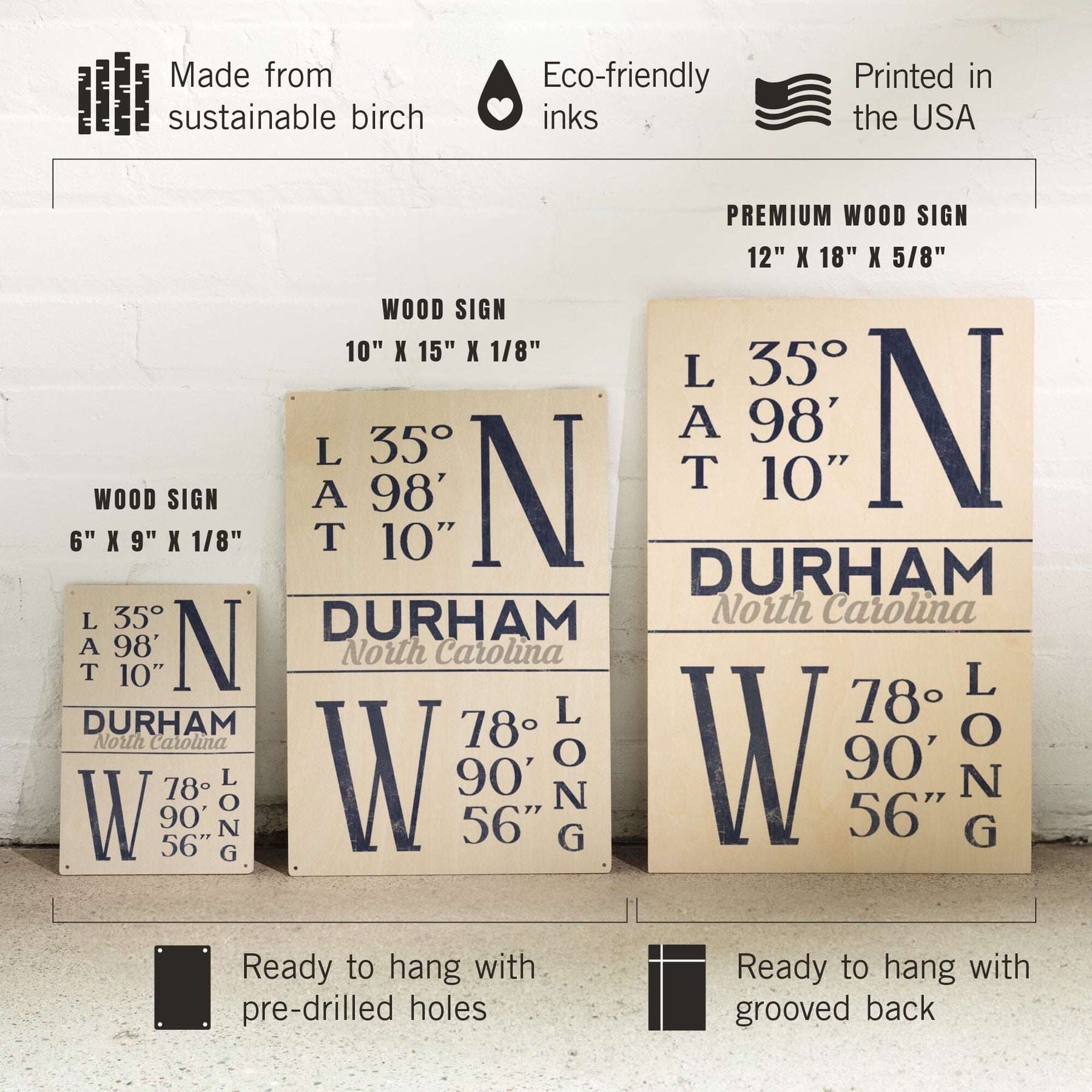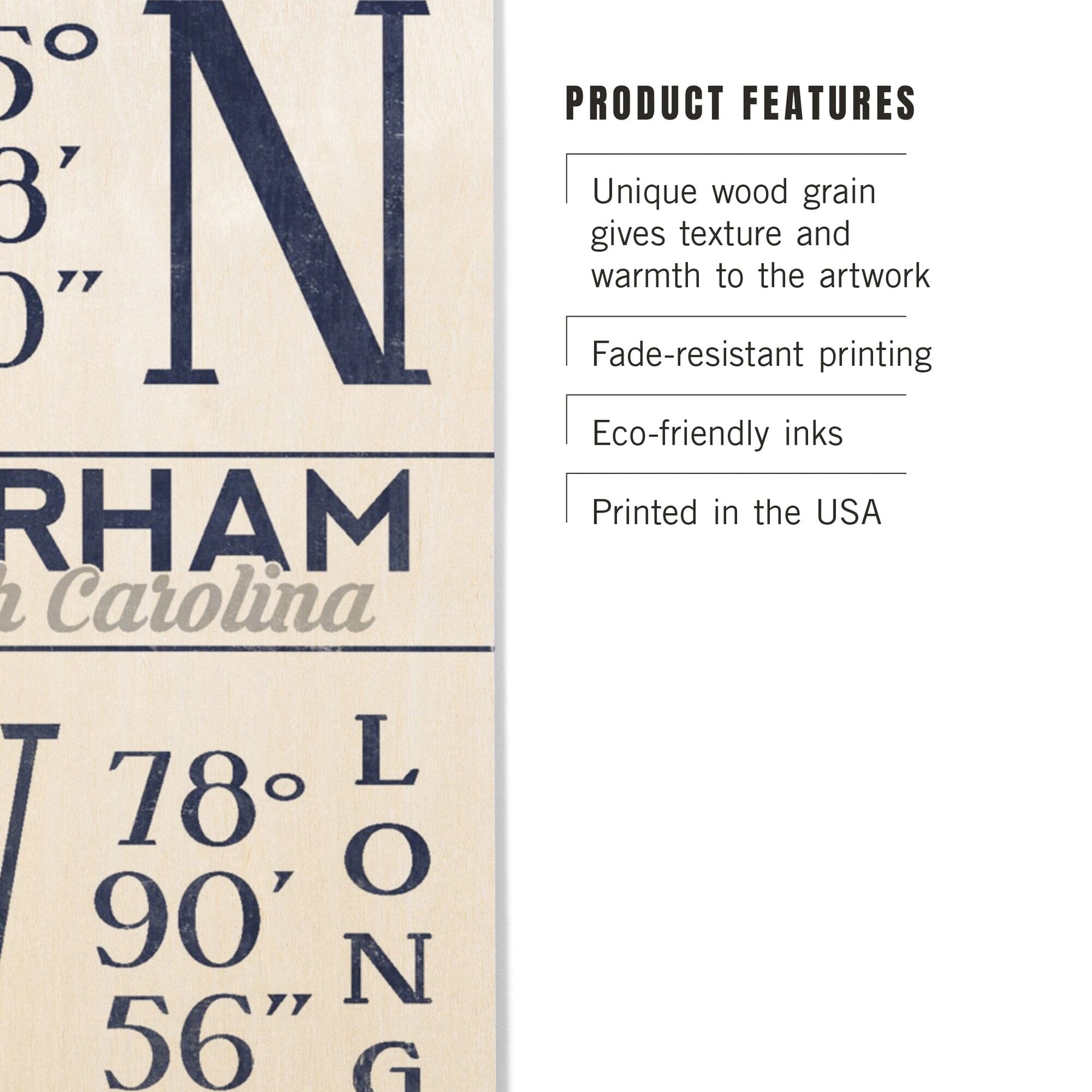 Durham, North Carolina, Latitude & Longitude (Blue), Lantern Press Artwork, Wood Signs and Postcards