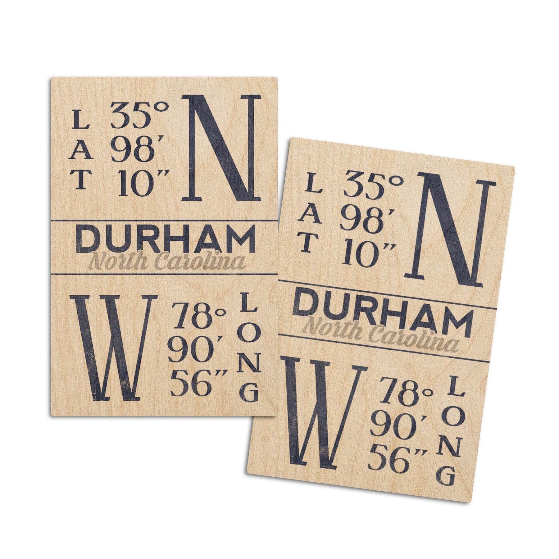 Durham, North Carolina, Latitude & Longitude (Blue), Lantern Press Artwork, Wood Signs and Postcards - Lantern Press