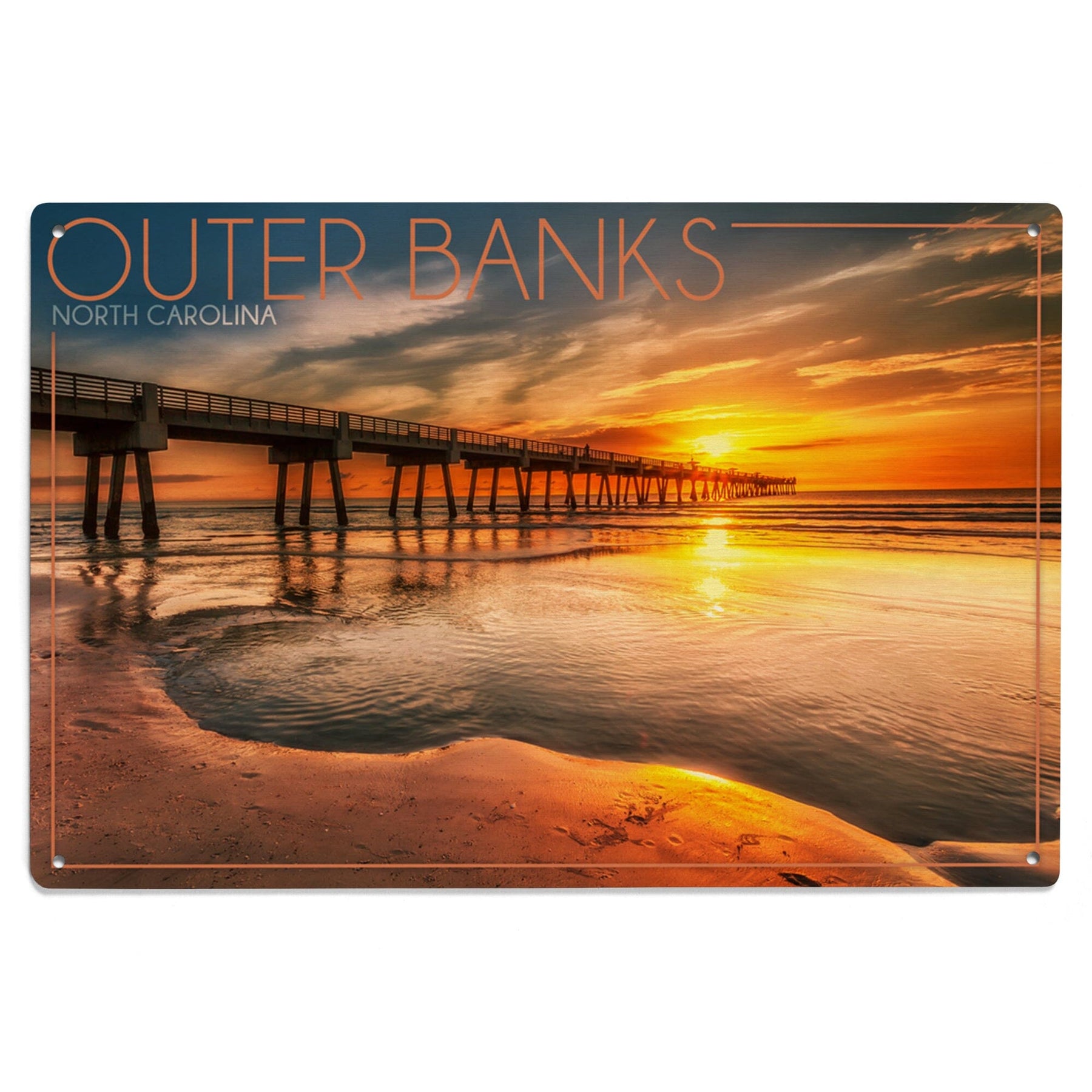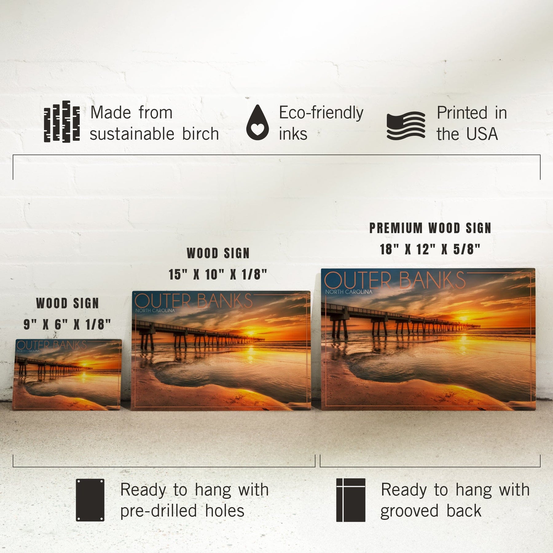 Outer Banks, North Carolina, Pier & Sunset, Lantern Press Photography, Wood Signs and Postcards Wood Lantern Press