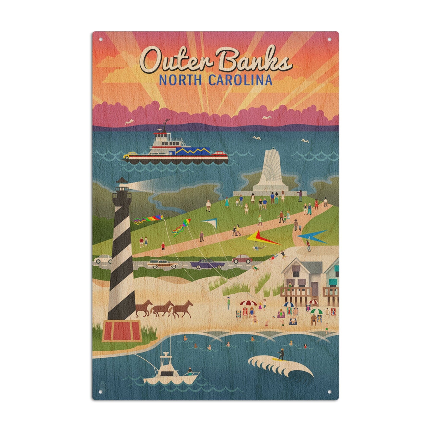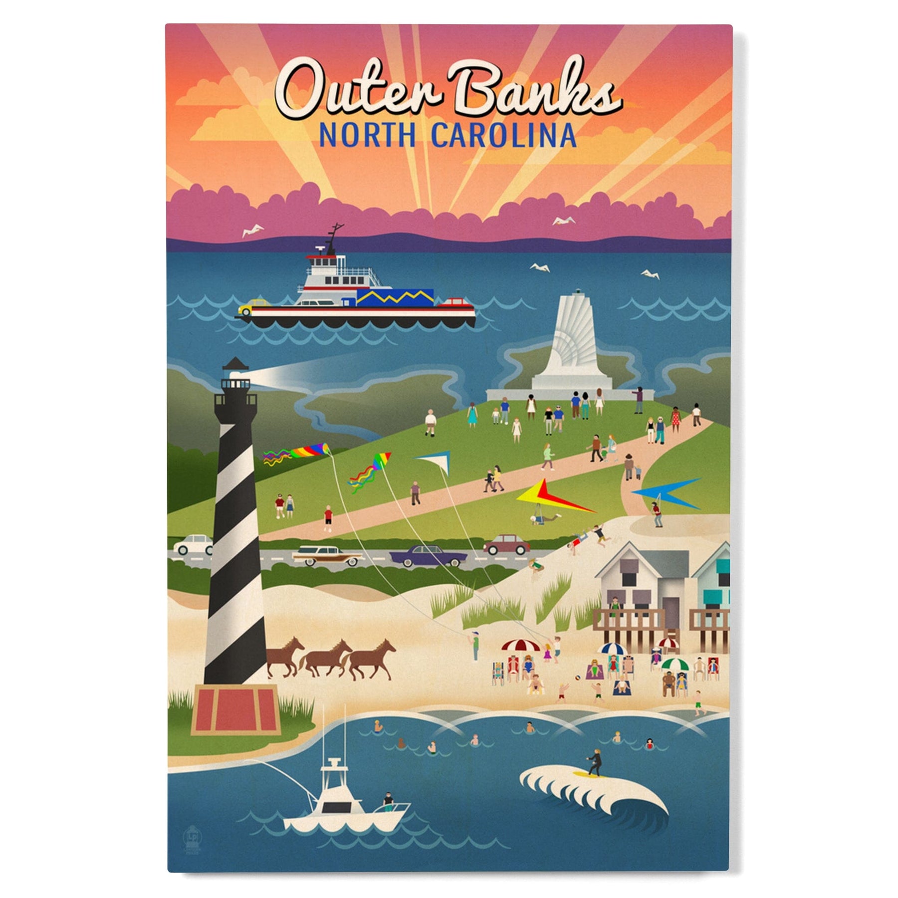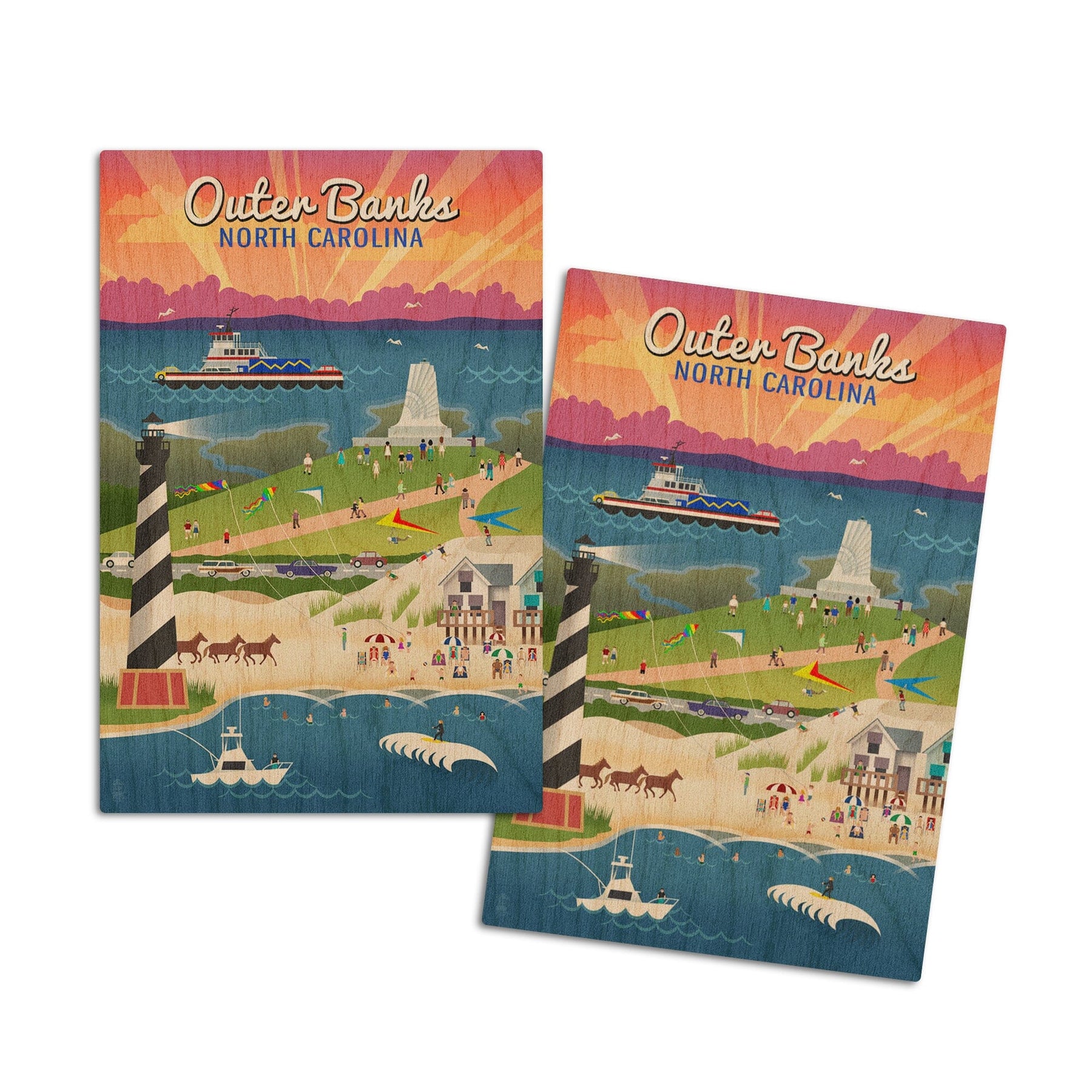 Outer Banks, North Carolina, Retro Scenes, Lantern Press Artwork, Wood Signs and Postcards Wood Lantern Press