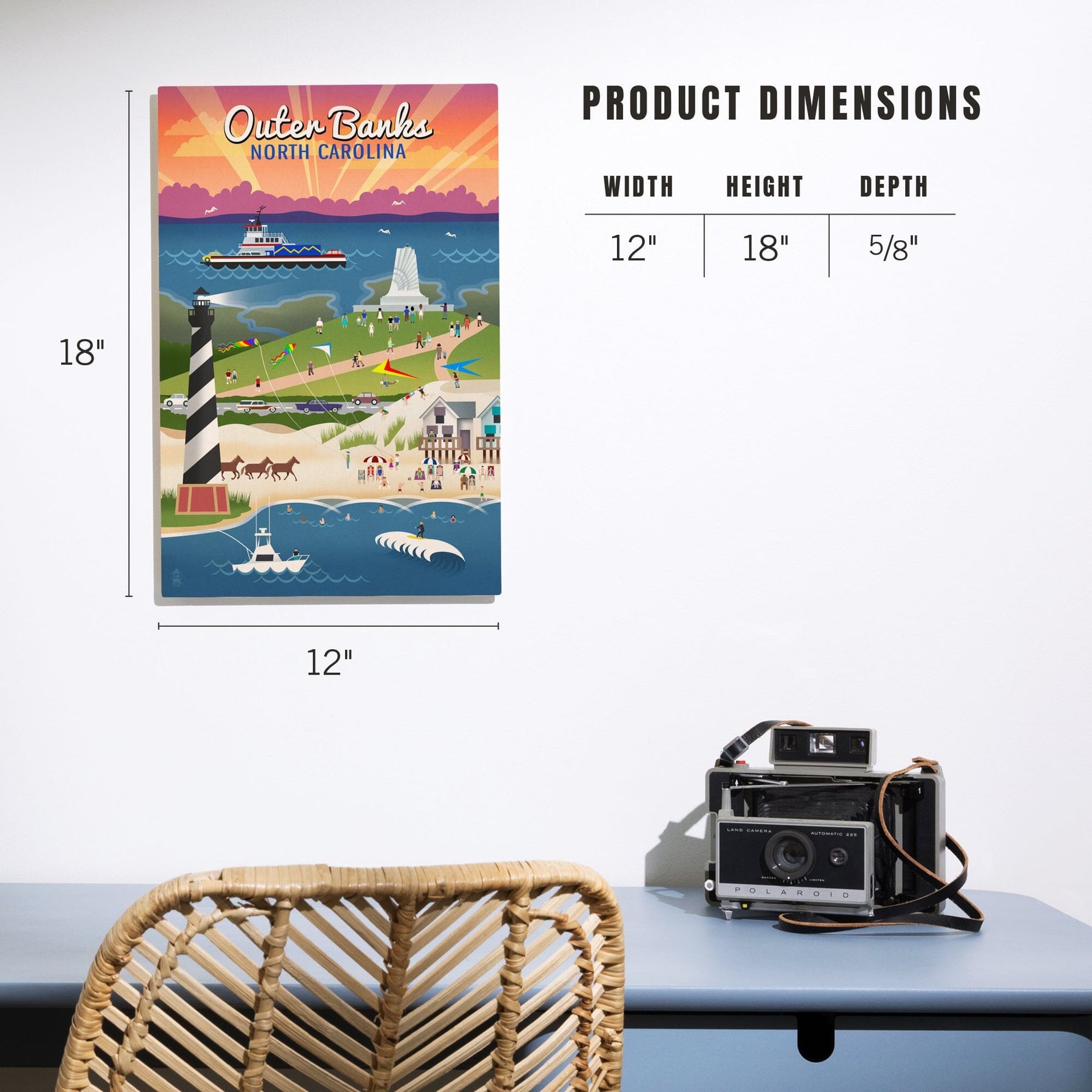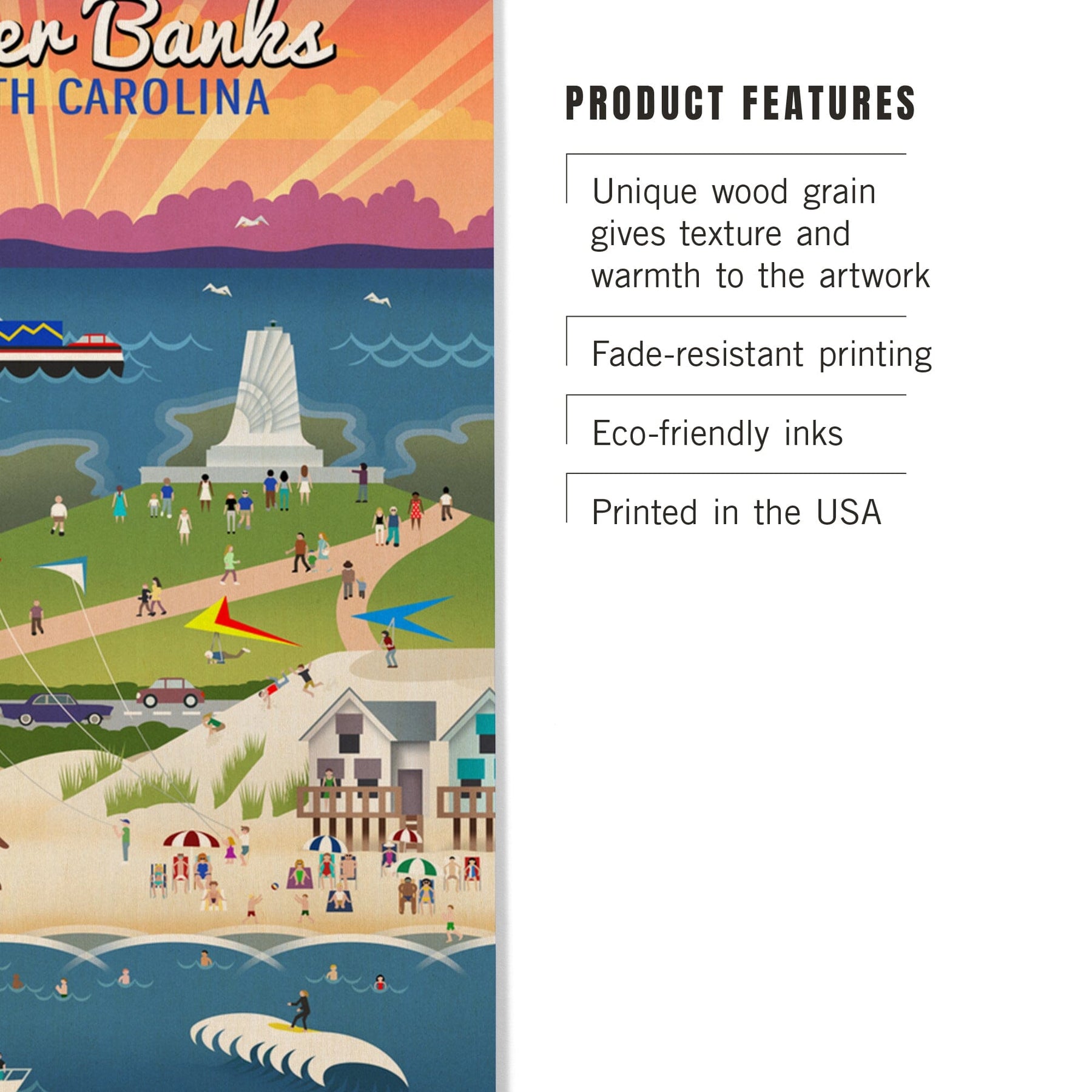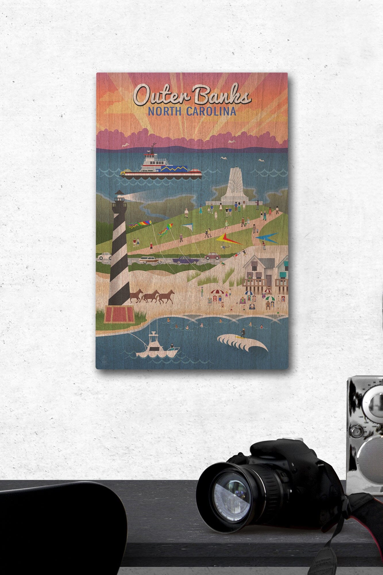 Outer Banks, North Carolina, Retro Scenes, Lantern Press Artwork, Wood Signs and Postcards Wood Lantern Press